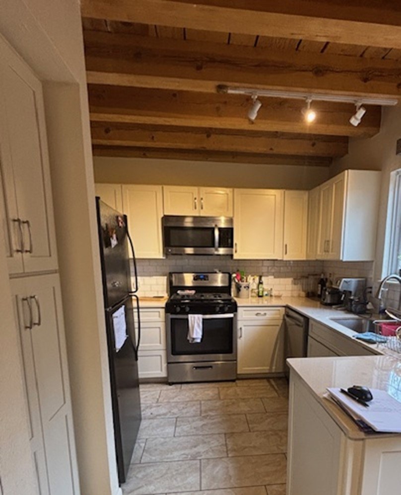 This Condo is located in the center of South Capital C1 district, across the street from Body and Clafoutis! Walk to everything, Trader Joes, Trove, Maria's, or Whole Foods! This large, open and comfortable condo features Santa Fe detailing like beams and kiva fireplace. It has 3 large bedrooms and 2 baths. This lovely property can be used as one large home, or two separate rentals for residential or professional office space. Newly upgraded kitchen with clean lines and bright, sunny interior, new carpet and boxcar tile, insulated acoustic wall for privacy, tiled baths, built in bookshelves, cozy courtyard, fenced and with plenty of parking, The perfect Pied de Tierre in a fantastic location in Santa Fe! Was a Vacation Rental, Short term rentals are permitted and one does not need a short term rental permit from the City. Just a simple registration due to zoning. Short term one side and long term the other and this property will generate great income. Or live in one side and run your business from the other. $9,000 decorators allowance being offered by Sellers.