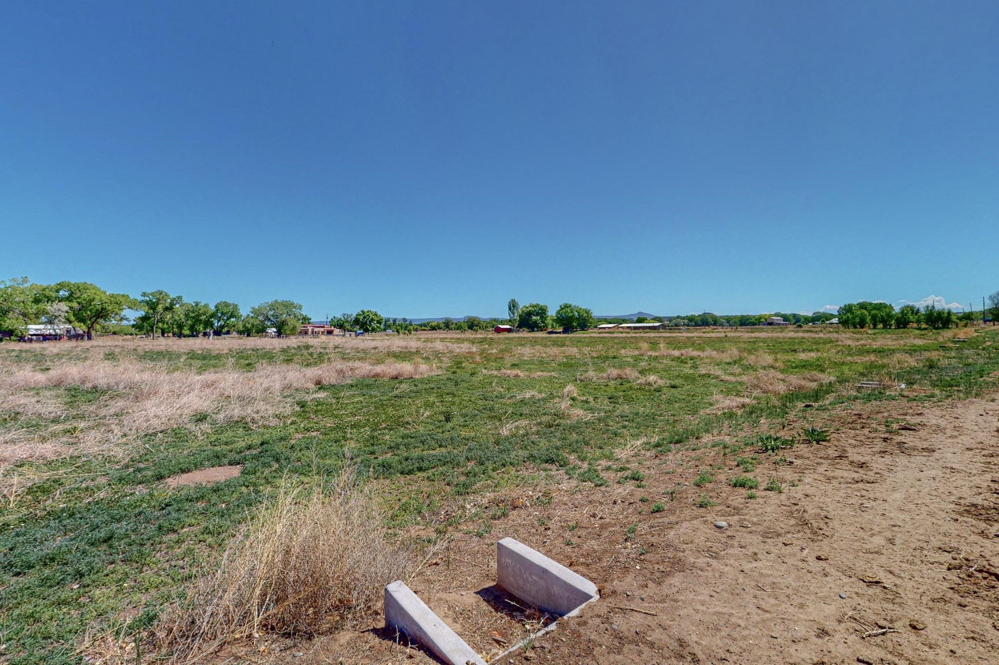 Discover the charm of rural living in the peaceful community of Pea Blanca, ideally located between Santa Fe and Albuquerque with easy access off I-25. This flat, regularly-shaped lot offers beautiful views and is well-suited for building your dream home, with ample space for a garden, orchard, or small agricultural venture.Paved roads lead nearly to the property line, and the land is fully fenced. The current owner has installed underground acequias, ready to support irrigation. For domestic water use, a private well will be required.If you plan to engage in agricultural activities, participation in the Water Bank program through the Middle Rio Grande Conservancy District is possible with a 5-year agreement. A neighboring ditch may also provide water access for livestock use.Enjoy the tranquility of rural life with the comfort of having a few neighbors nearby. This is an excellent opportunity to create a custom home in a serene setting. Seller is open to negotiations. Showings by appointment only--please allow at least 24 hours' notice if you'd like the listing broker to accompany your visit.