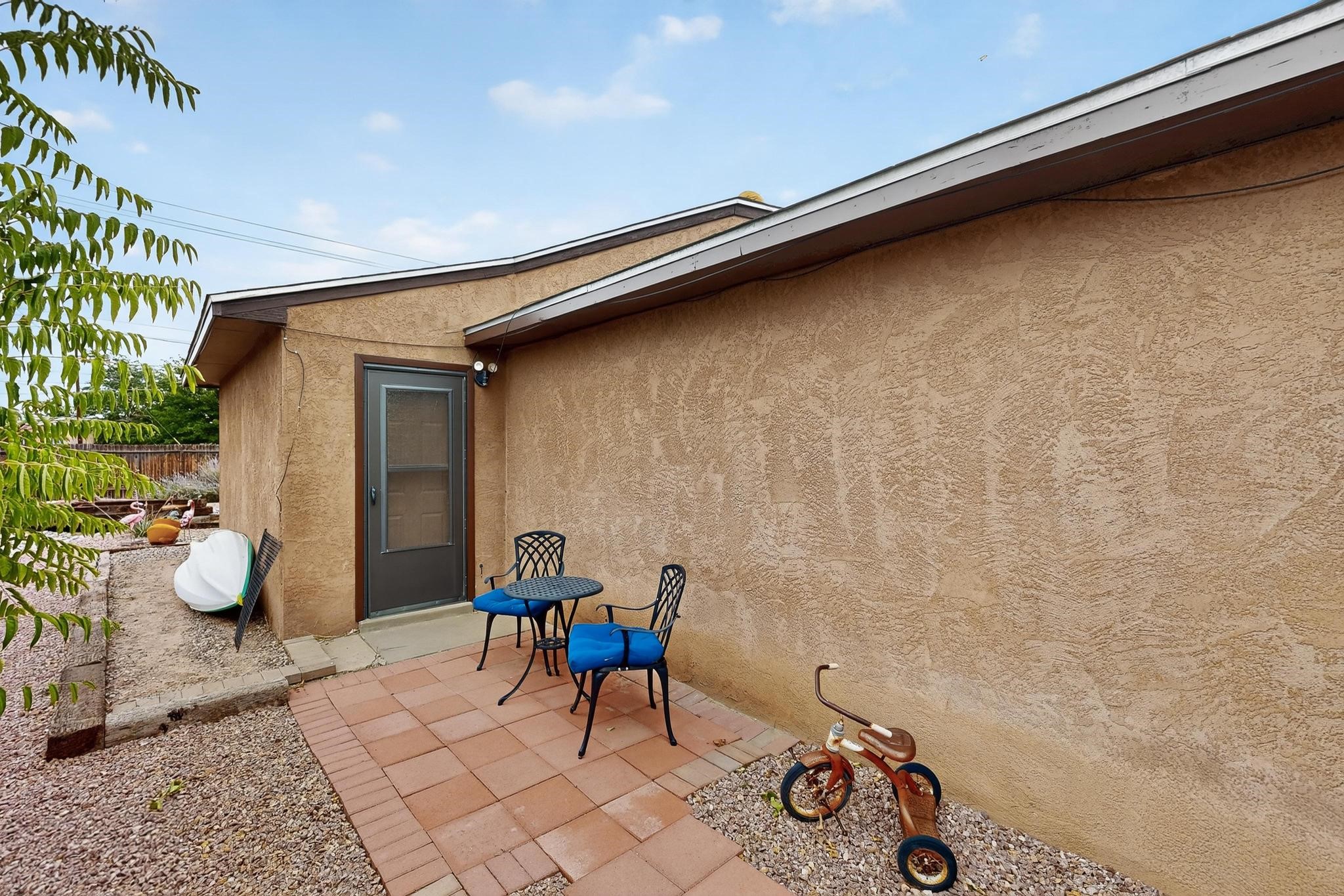 Motivated Seller is offering $5,000 in flex cash which can be used toward closing costs, rate buy-down, or price adjustments! Come see this gorgeous 4 bedroom, 2 bath house on a quiet street in the heart of northern Bernalillo. Updated kitchen and bathrooms. Bonus ''gym'' could be used as an extra family room, media room or bedroom. Enjoy your coffee in the screened porch or one of 4! separate sitting/eating/patio areas in the back yard, or under the shade of the trees in the front yard. Bonus is the views of the Sandias from your beautifully Xeriscaped back yard. Property is fully fenced for the safety of your family or furbabies. Gated access to the backyard from Camino Don Tomas. Quick access to 550 and I-25 makes for an easy commute to work.