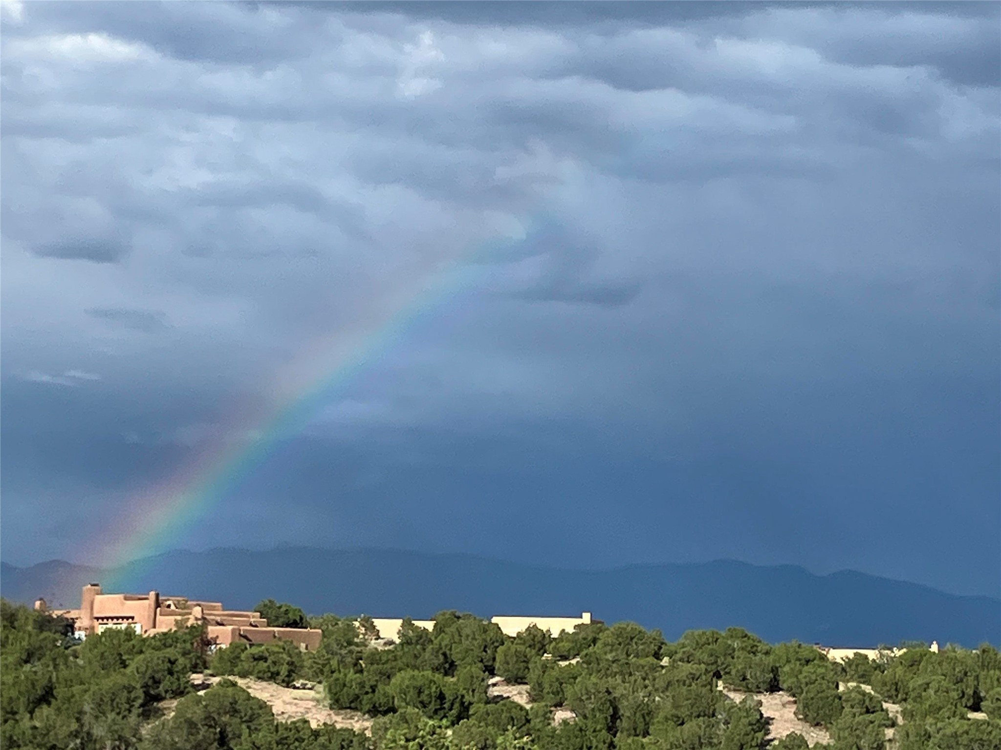 In the tree-studded rolling hills northwest of town are Las Campanas and a host of other developments and neighborhoods of larger, private lots and newer homes, most with city services and utilities. The land here sits between the city and the arroyos that carry rainwater to the Rio Grande, just a few miles west, creating a landscape almost like ocean waves rolling into shore. The community of