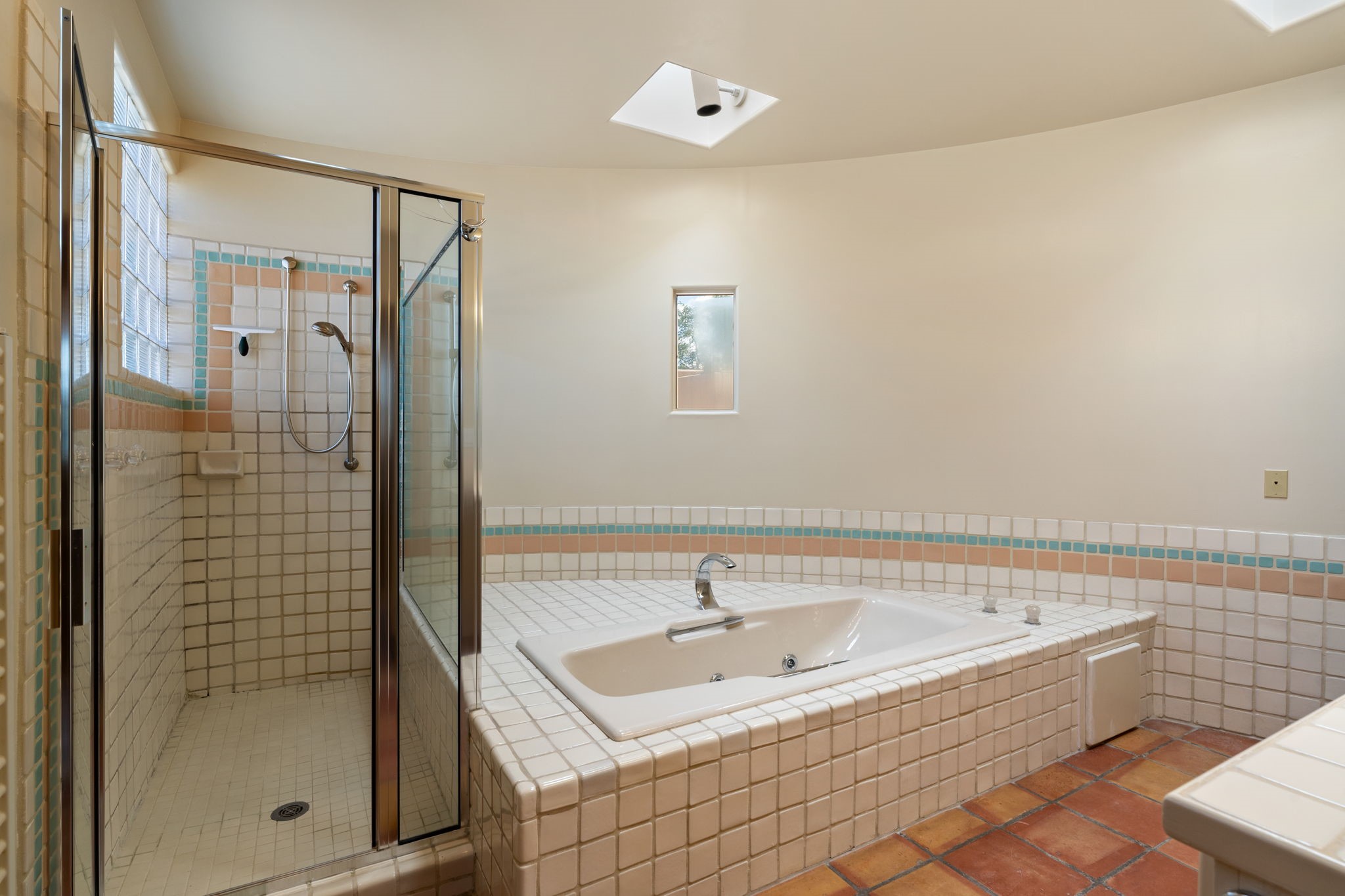 Perched high on a serene hilltop with commanding views of the Sangre de Cristo Mountains, this Santa Fe-style custom estate offers a masterful blend of artistry, comfort, and Southwestern soul. Just minutes from the historic Plaza yet nestled in a private enclave on a full acre, this 4,300-square-foot sanctuary embodies the magic of Northern New Mexico living.Step inside to sun-drenched interiors where massive windows frame mountain vistas. The dining room, with stenciled beams and a corner Kiva fireplace, is perfect for cozy evenings or elegant entertaining. The living room impresses with fan-shaped vigas, a dramatic fireplace, and custom mantle, flowing into a spacious kitchen with granite counters, island, gas stove, copper hood, skylights, and walk-in pantry.Two luxurious Primary Suites ensure privacy. The main-level suite includes a coved ceiling, updated bath, private den, and French doors to a tranquil patio. Upstairs, a curved staircase leads to the second suite with Kiva fireplace, private deck, and bridge walkway to a spectacular 75-foot lap pool.Perfect for gatherings, the entertainment room -- once home to two grand pianos -- opens to the front portal. A charming casita above the two-car garage adds versatility with sleeping space for five, full bath, closet, kitchenette, private patio, and separate entrance.Blending Santa Fe craftsmanship, modern updates, and breathtaking surroundings, this home is more than a residence -- it is a living work of art and a rare opportunity to own a piece of Santa Fe's soul.
