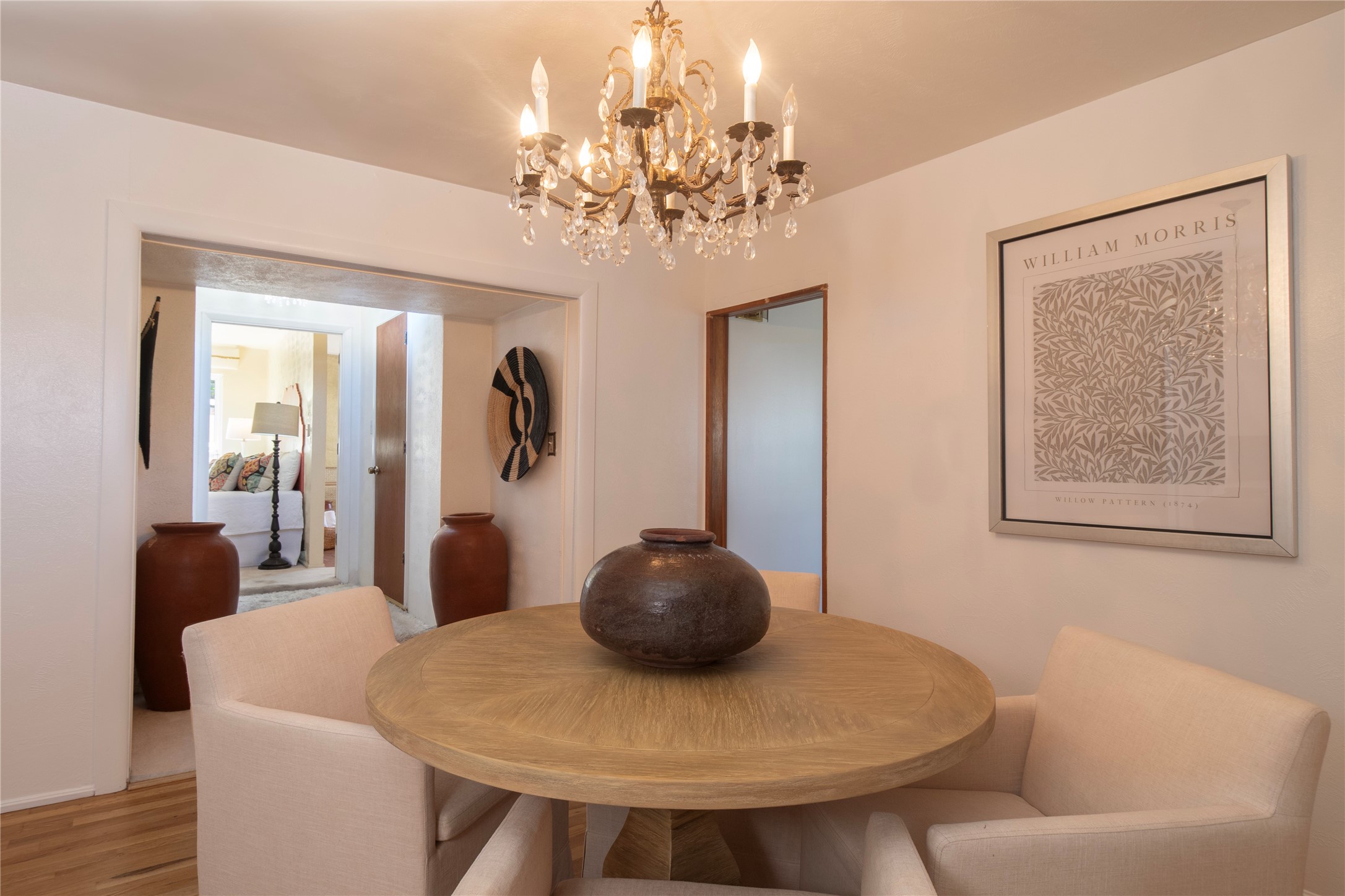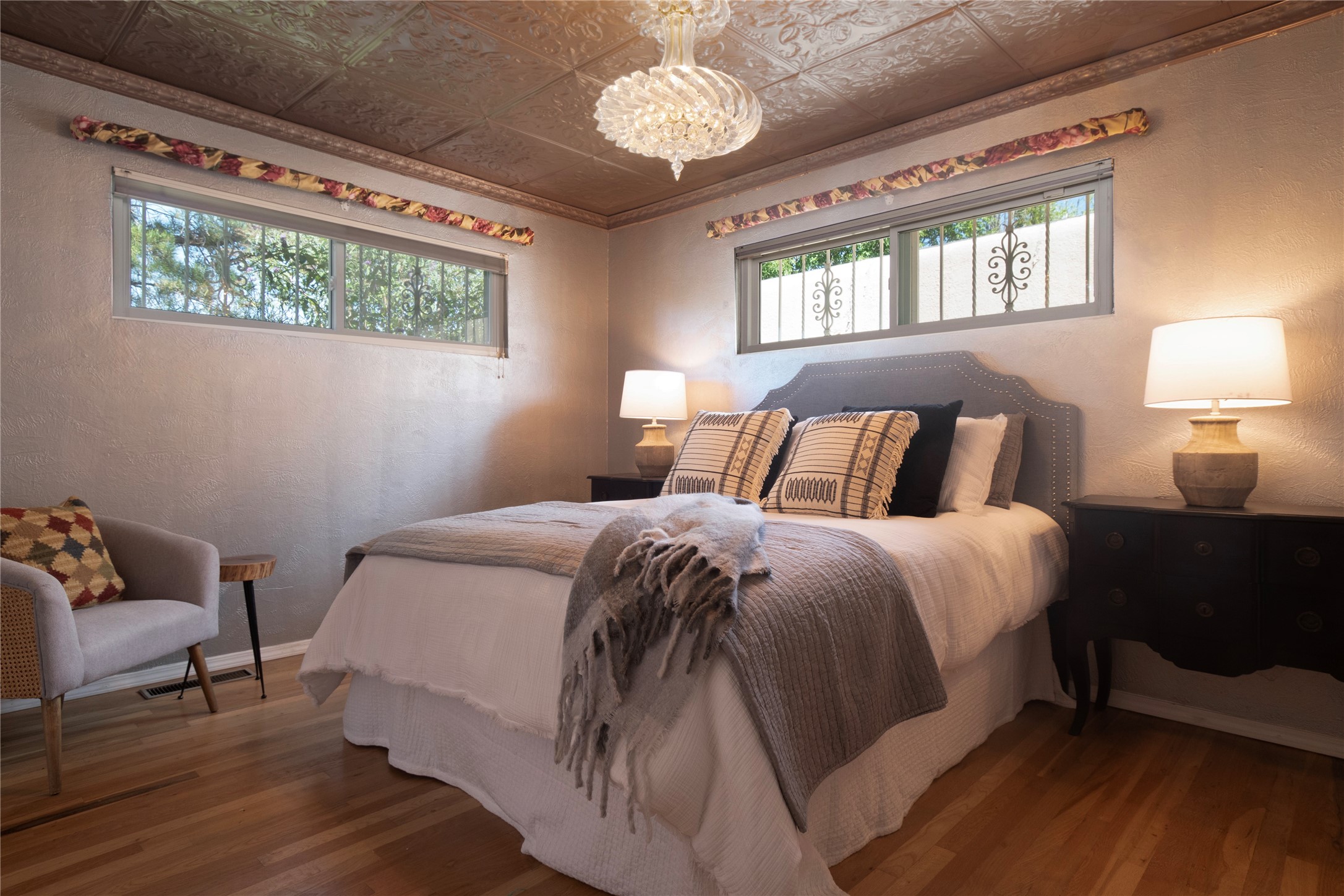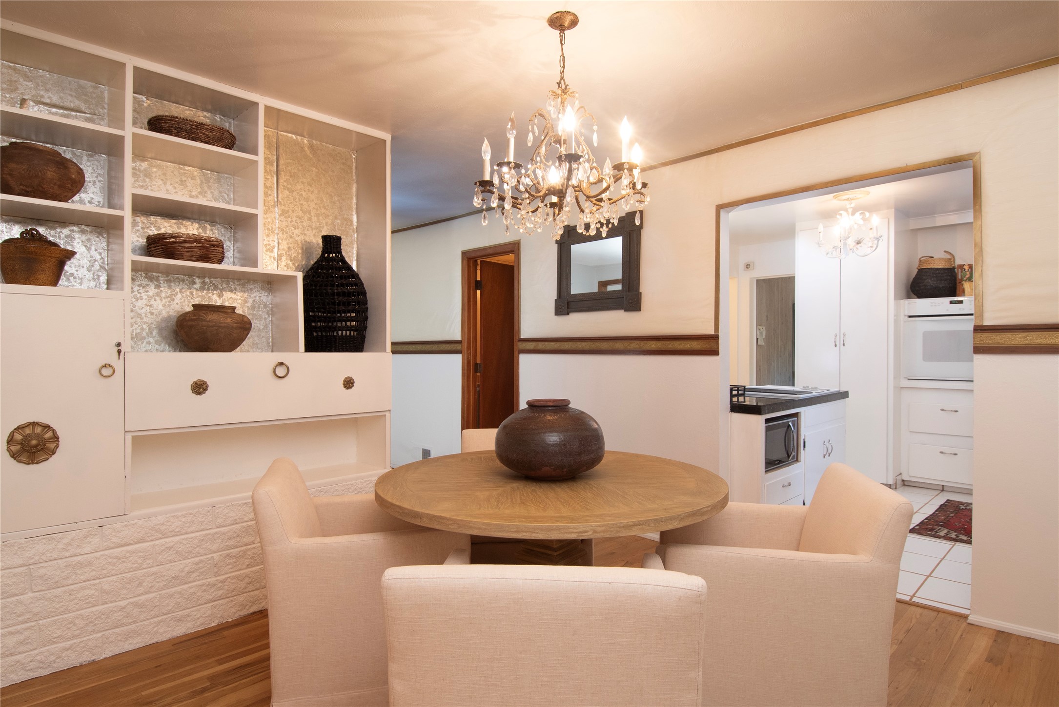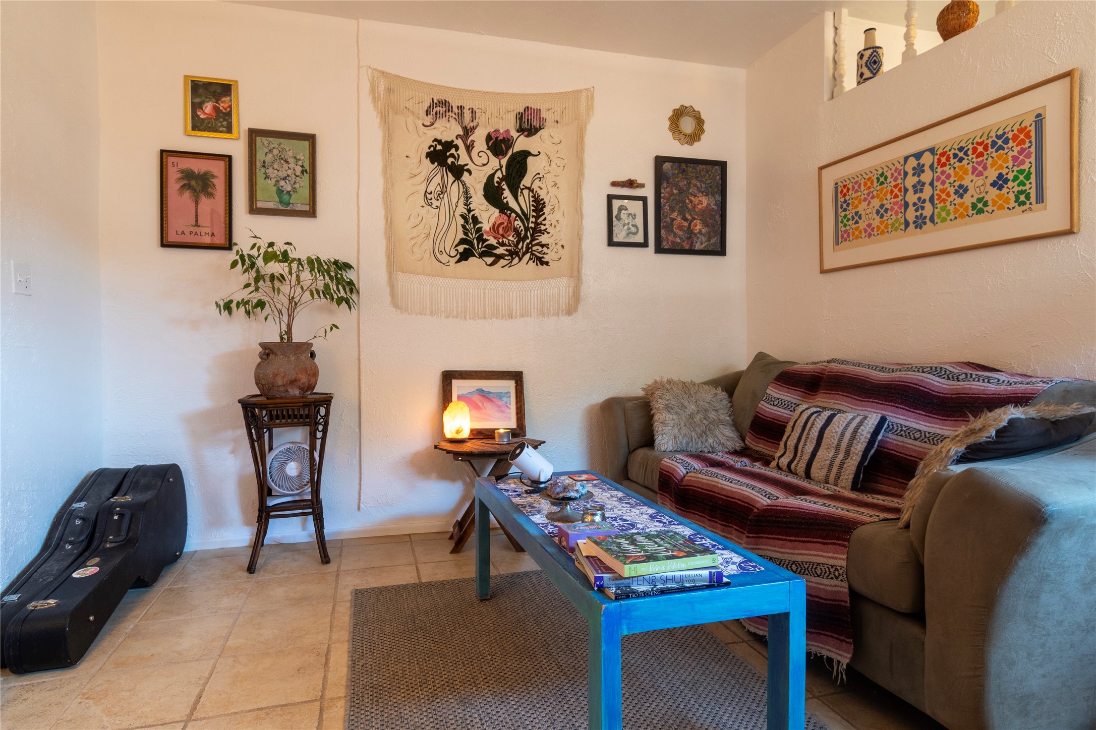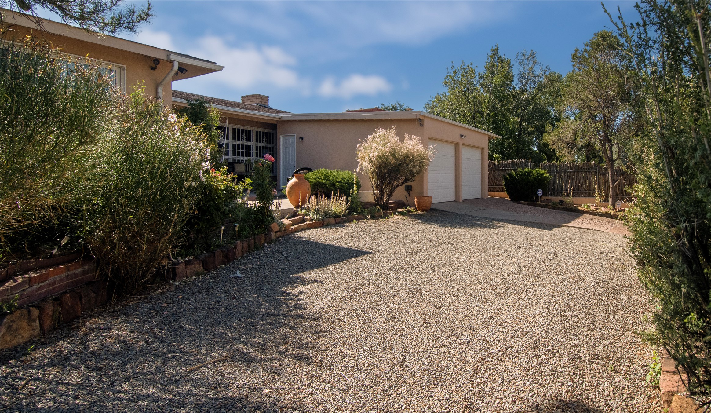 This charming residence located at 1011 Don Gaspar Ave offers a warm and inviting atmosphere with its thoughtfully designed layout and appealing features. The main house boasts three spacious bedrooms and three bathrooms, providing ample space for family and guests. The large, cozy living room is a highlight that creates a welcoming ambiance, perfect for relaxing evenings. Adjacent to the living area is a quaint dining room, ideal for intimate dinners or entertaining friends. The eat-in kitchen is both functional and charming, equipped with enough space for casual family meals and meal preparation. The upstairs of the main house is a versatile space, perfect for use as a meditation or yoga room, offering tranquil views to the west and northeast that enhance relaxation and mindfulness. The property's outdoor areas are equally impressive, with a large inviting patio and grilling area, perfect for outdoor gatherings and enjoying the pleasant New Mexico climate. Two storage buildings are situated at the back of the house, providing convenient space for storage or hobbies. Privacy is a key feature of this property, as it is securely walled off, ensuring a secluded environment. The backyard is designed for outdoor enjoyment and entertaining. Additionally, there is a separate guest house that includes a bedroom, bathroom, and a delightful kitchen, along with an outdoor area that invites relaxation and socializing. The property's location offers easy access to downtown Santa Fe and Canyon Road, making it convenient for exploring local art, culture, and dining options. This property combines comfort, privacy, and functionality, making it an ideal retreat in the Capitol District.