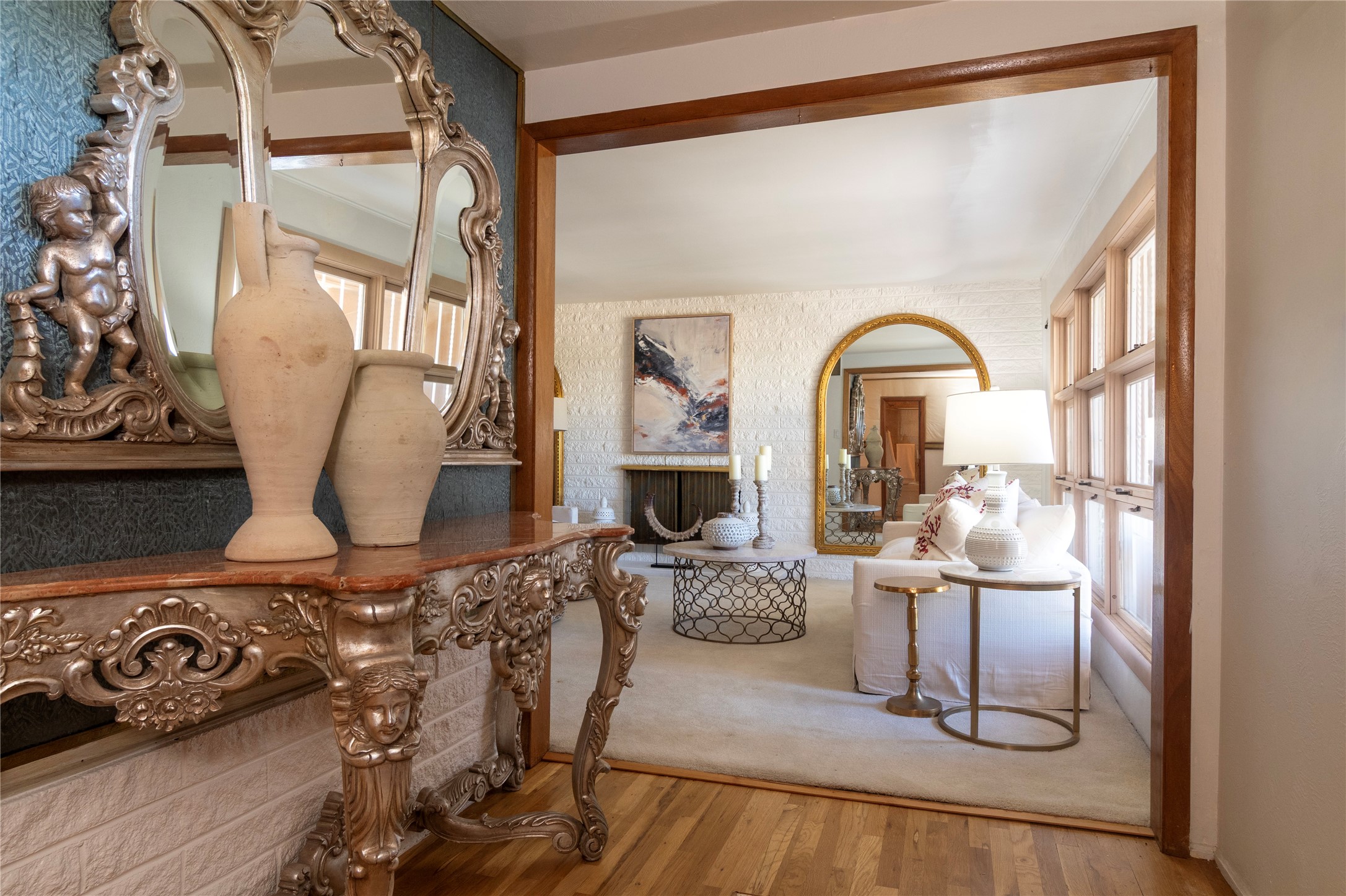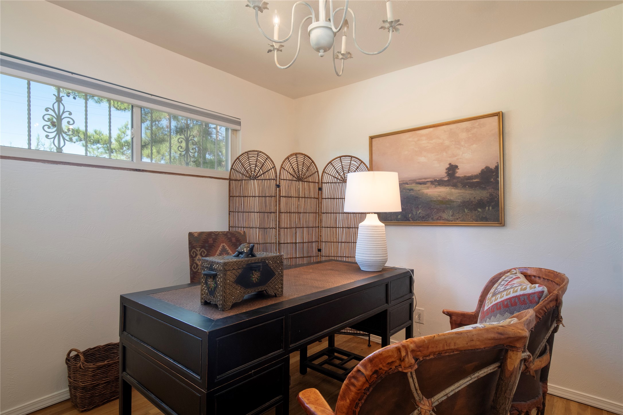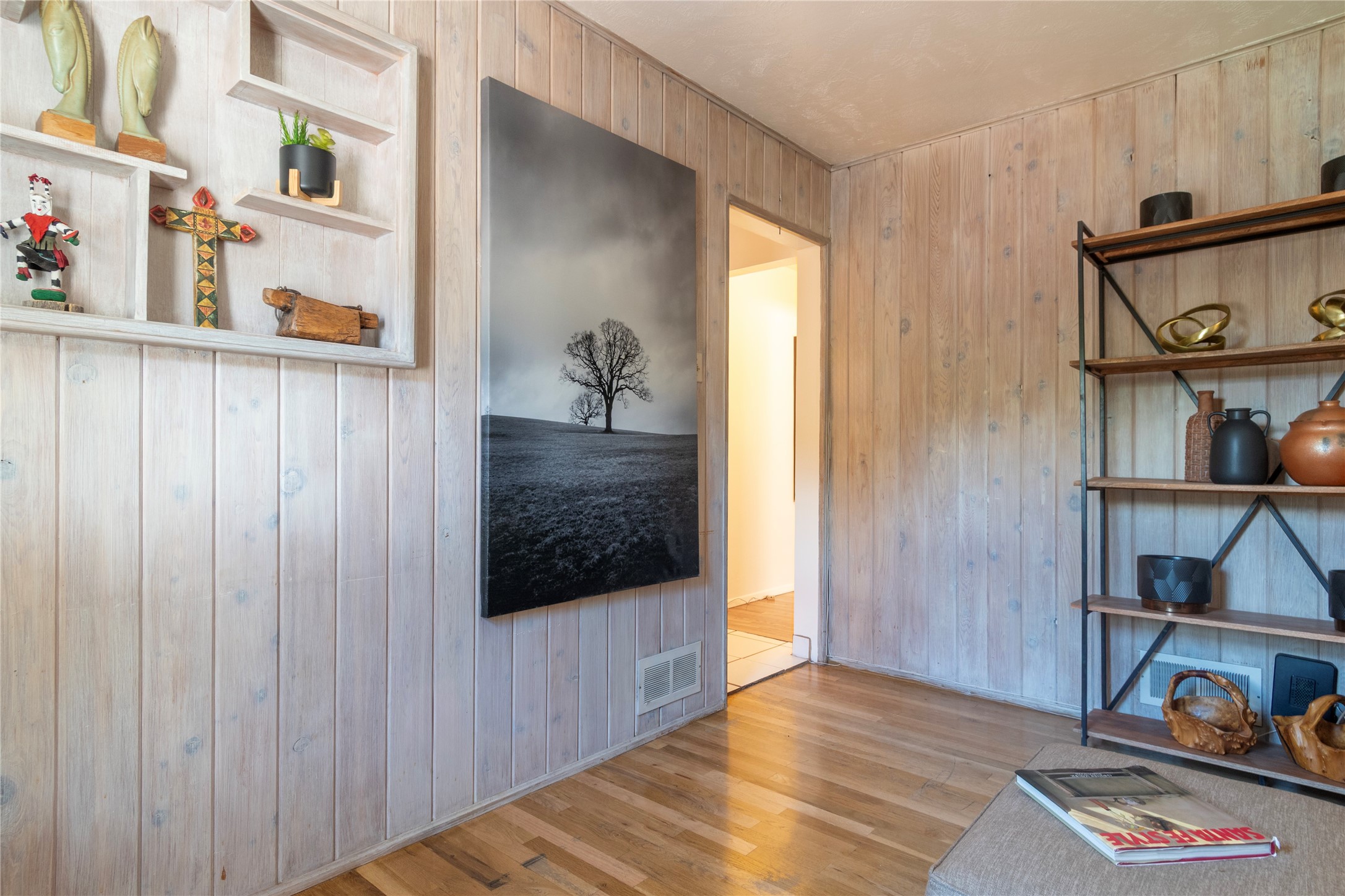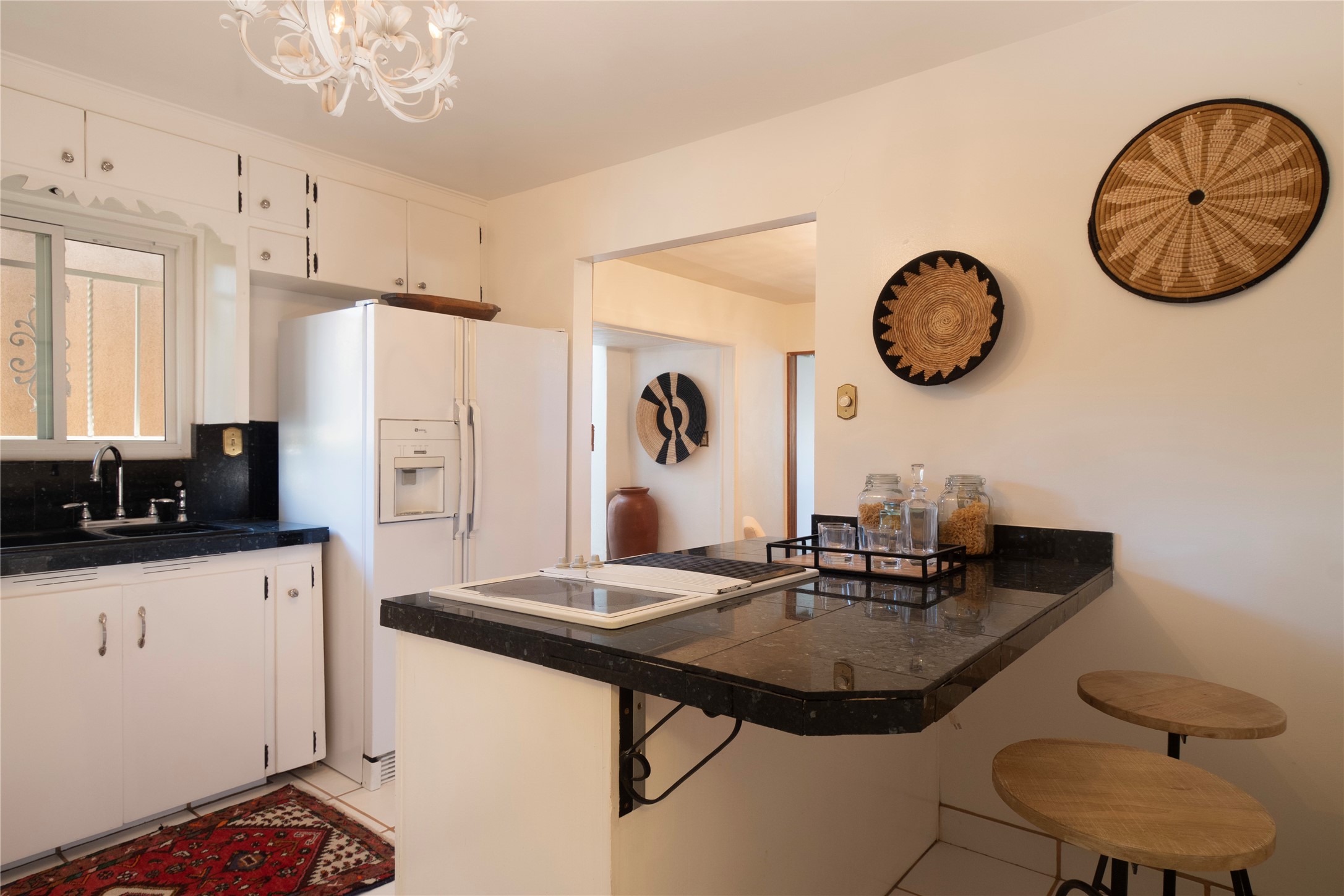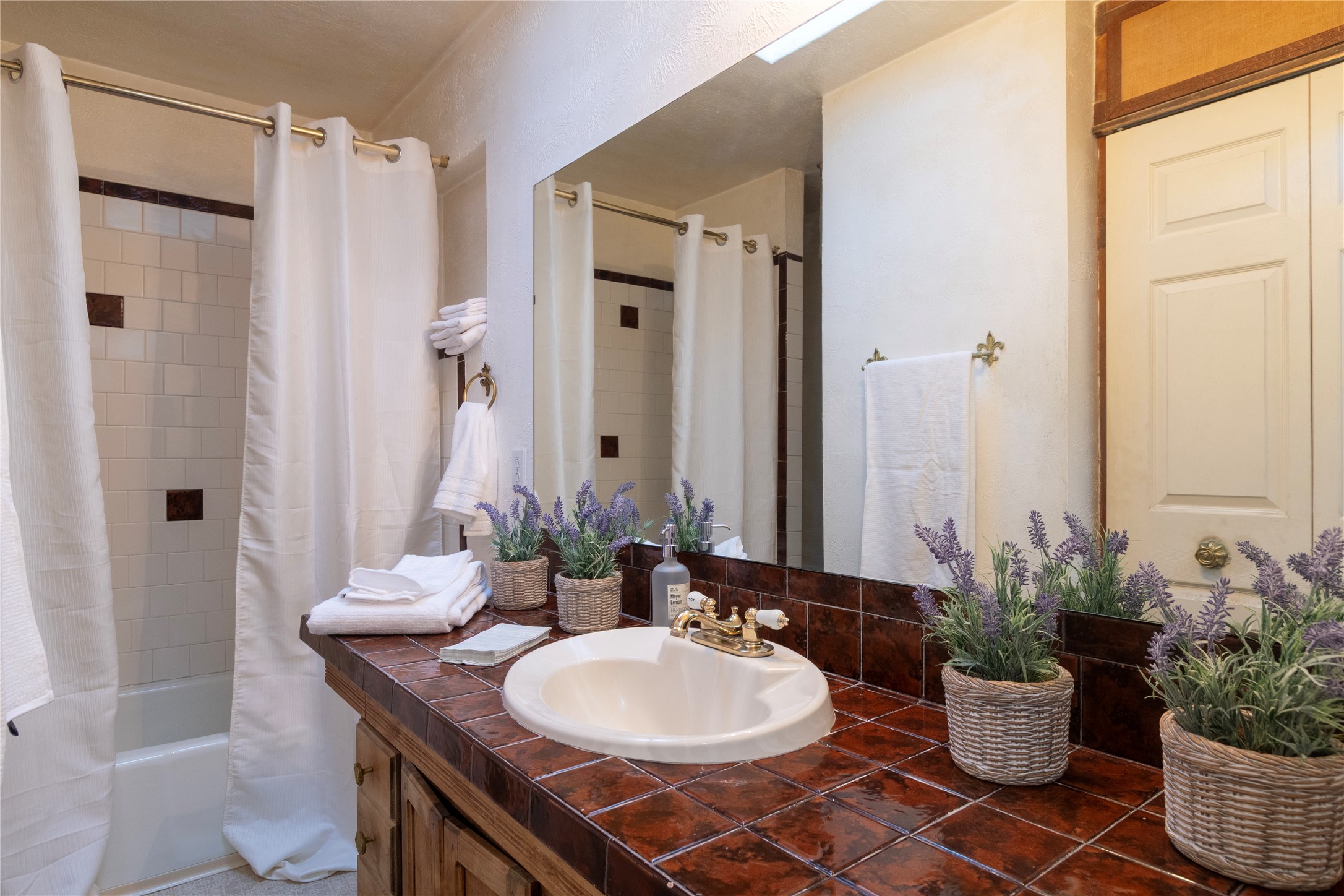 This charming residence located at 1011 Don Gaspar Ave offers a warm and inviting atmosphere with its thoughtfully designed layout and appealing features. The main house boasts three spacious bedrooms and three bathrooms, providing ample space for family and guests. The large, cozy living room is a highlight that creates a welcoming ambiance, perfect for relaxing evenings. Adjacent to the living area is a quaint dining room, ideal for intimate dinners or entertaining friends. The eat-in kitchen is both functional and charming, equipped with enough space for casual family meals and meal preparation. The upstairs of the main house is a versatile space, perfect for use as a meditation or yoga room, offering tranquil views to the west and northeast that enhance relaxation and mindfulness. The property's outdoor areas are equally impressive, with a large inviting patio and grilling area, perfect for outdoor gatherings and enjoying the pleasant New Mexico climate. Two storage buildings are situated at the back of the house, providing convenient space for storage or hobbies. Privacy is a key feature of this property, as it is securely walled off, ensuring a secluded environment. The backyard is designed for outdoor enjoyment and entertaining. Additionally, there is a separate guest house that includes a bedroom, bathroom, and a delightful kitchen, along with an outdoor area that invites relaxation and socializing. The property's location offers easy access to downtown Santa Fe and Canyon Road, making it convenient for exploring local art, culture, and dining options. This property combines comfort, privacy, and functionality, making it an ideal retreat in the Capitol District.