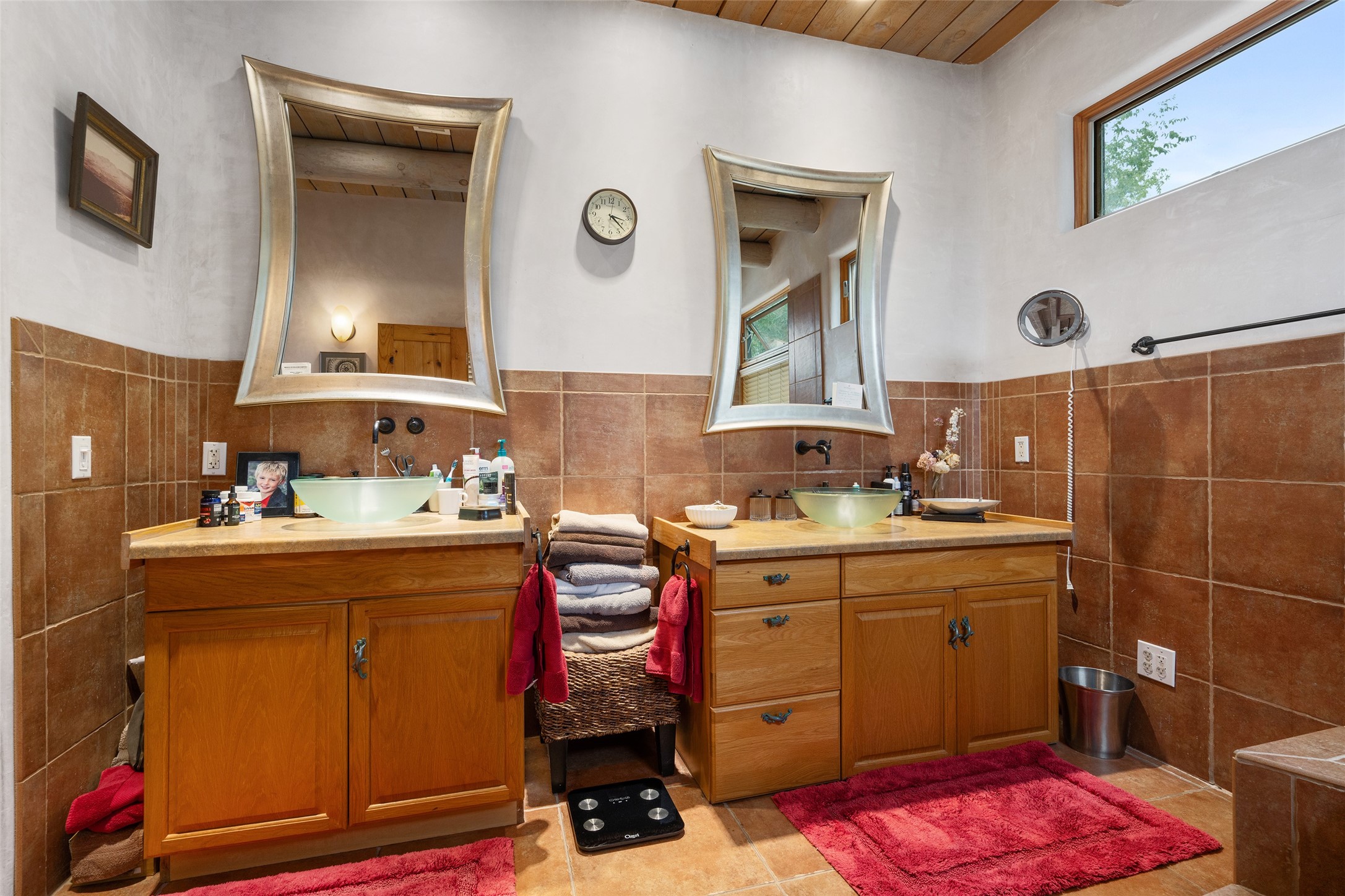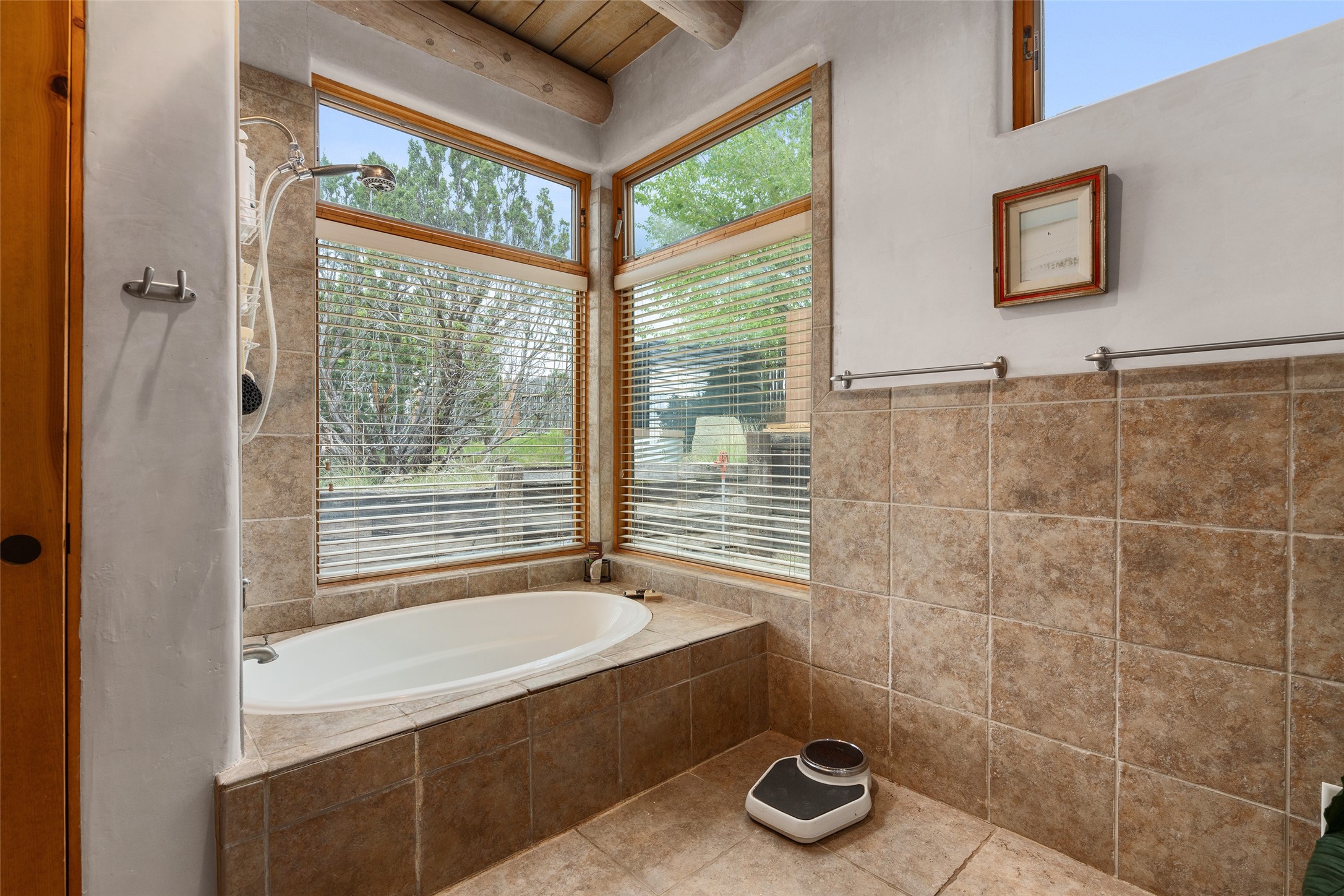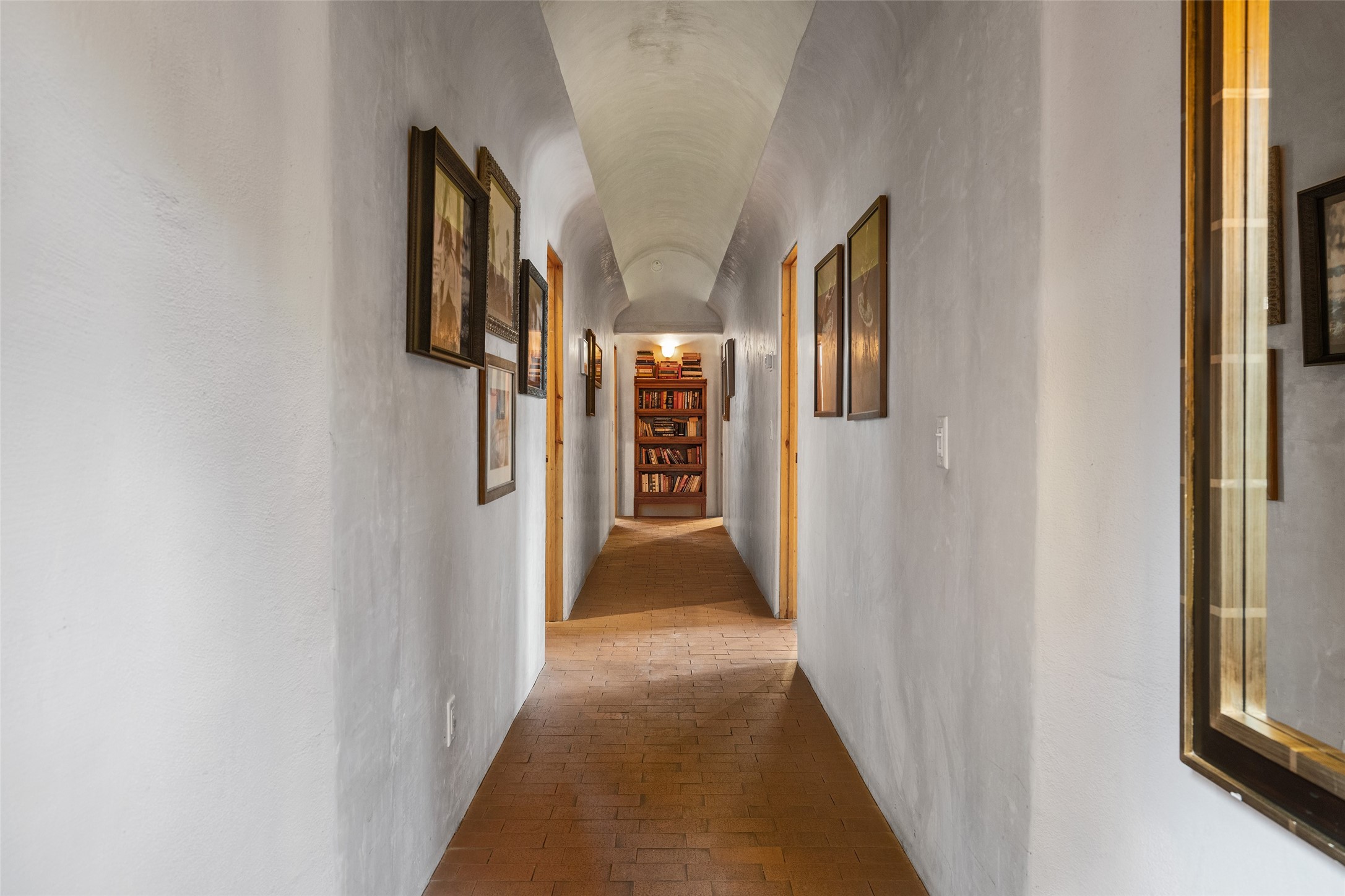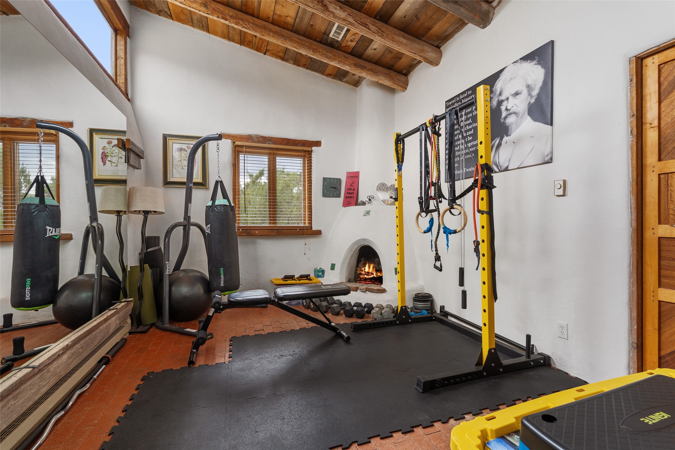 Price Improved below appraisal!!! This home has gorgeous land and NO HOA fees for restrictions!! Lovely Santa Fe estate blends traditional adobe charm with modern comfort. A coyote fence outlines the entry and welcomes you to a light-filled sunroom that seamlessly connects indoor and outdoor spaces. The original adobe home features classic Santa Fe details--exposed vigas, rough-sawn ceilings, a kiva fireplace, banco seating, and brick floors. A 2004 addition introduced a barrel-ceiling hallway linking a 5-bedroom, 4-bath layout. The flexible office/5th bedroom with its own bath and fireplace opens to a private courtyard. The primary suite offers a spa-like retreat with dual vanities, a corner tub, and a walk-in closet. Bright, tastefully tiled bathrooms add charm throughout. Outside, mature trees, xeriscaping, and irrigated courtyards provide serene spaces for gathering, gardening, or sunset views. With easy access to town, this home is both a tranquil retreat and a convenient base for enjoying Santa Fe. Your animals are welcome!!!!
