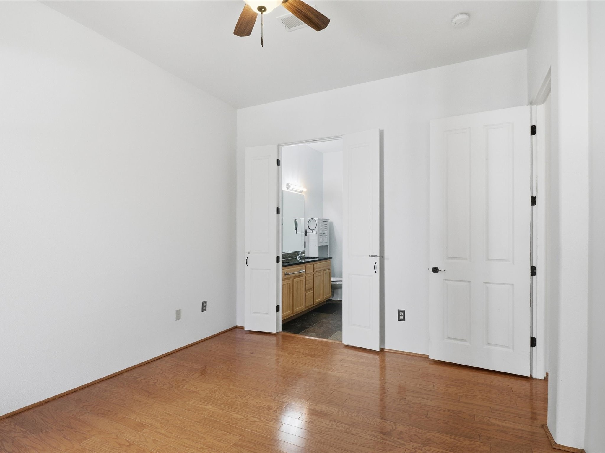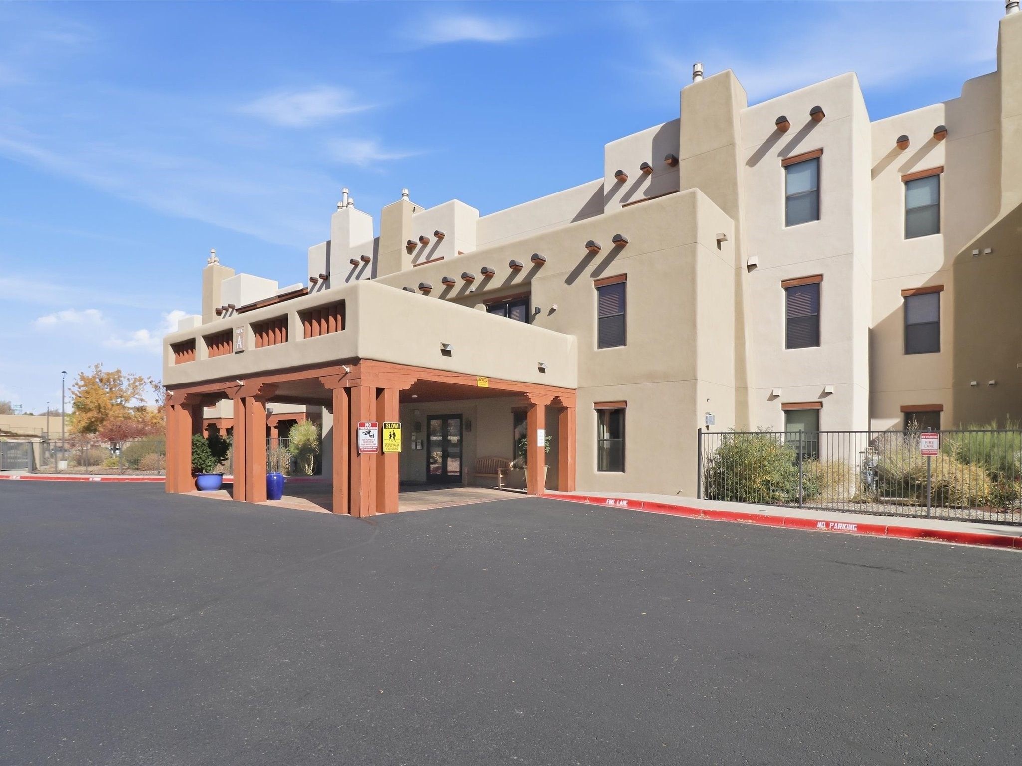Welcome to this beautiful corner unit in the desirable Alameda Condos! Having abundant natural light, this ground-floor gem has two bedrooms, each with its own full bathroom and walk-in closet. The primary bedroom offers a private patio entrance and an enclosed shower area, perfect for relaxing mornings.Enjoy an open-concept living and dining space centered around a cozy gas corner Kiva fireplace, while the kitchen is equipped with appliances for new homeowners daily use. Step outside to your fenced patio and take in serene pool views.With central refrigerated air conditioning, a host of community amenities--including a pool, gym, reading rooms, gated parking, on-site office, and building-wide WiFi--this condo is perfect for full-time living or a convenient lock-and-leave lifestyle. Comfort, style, and security all in one!