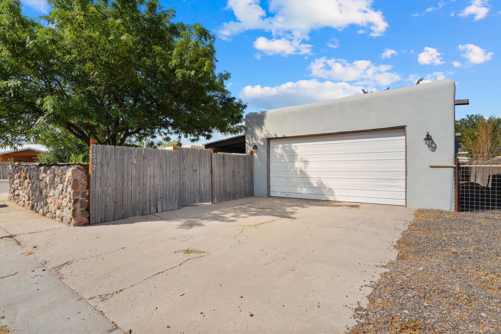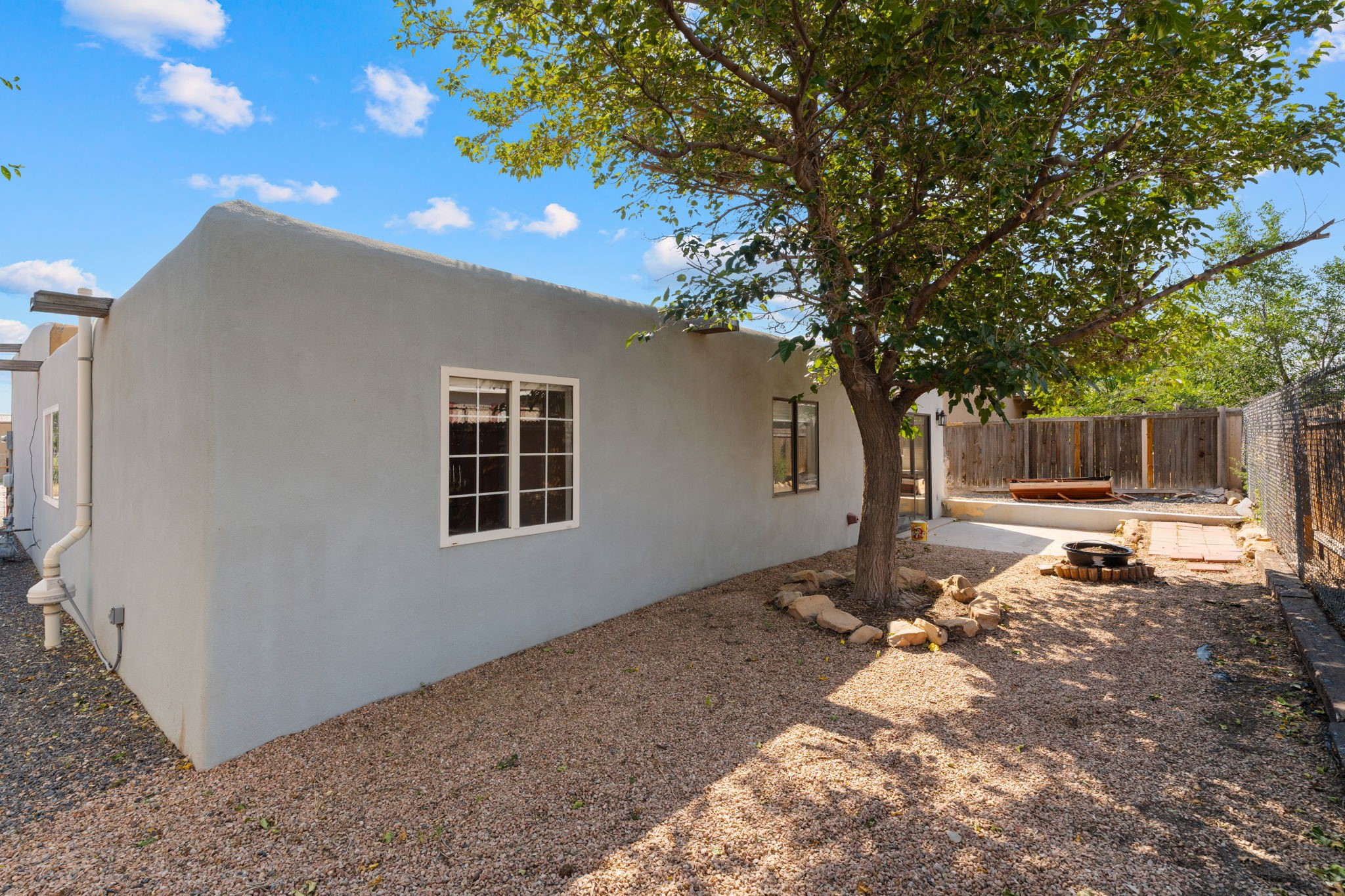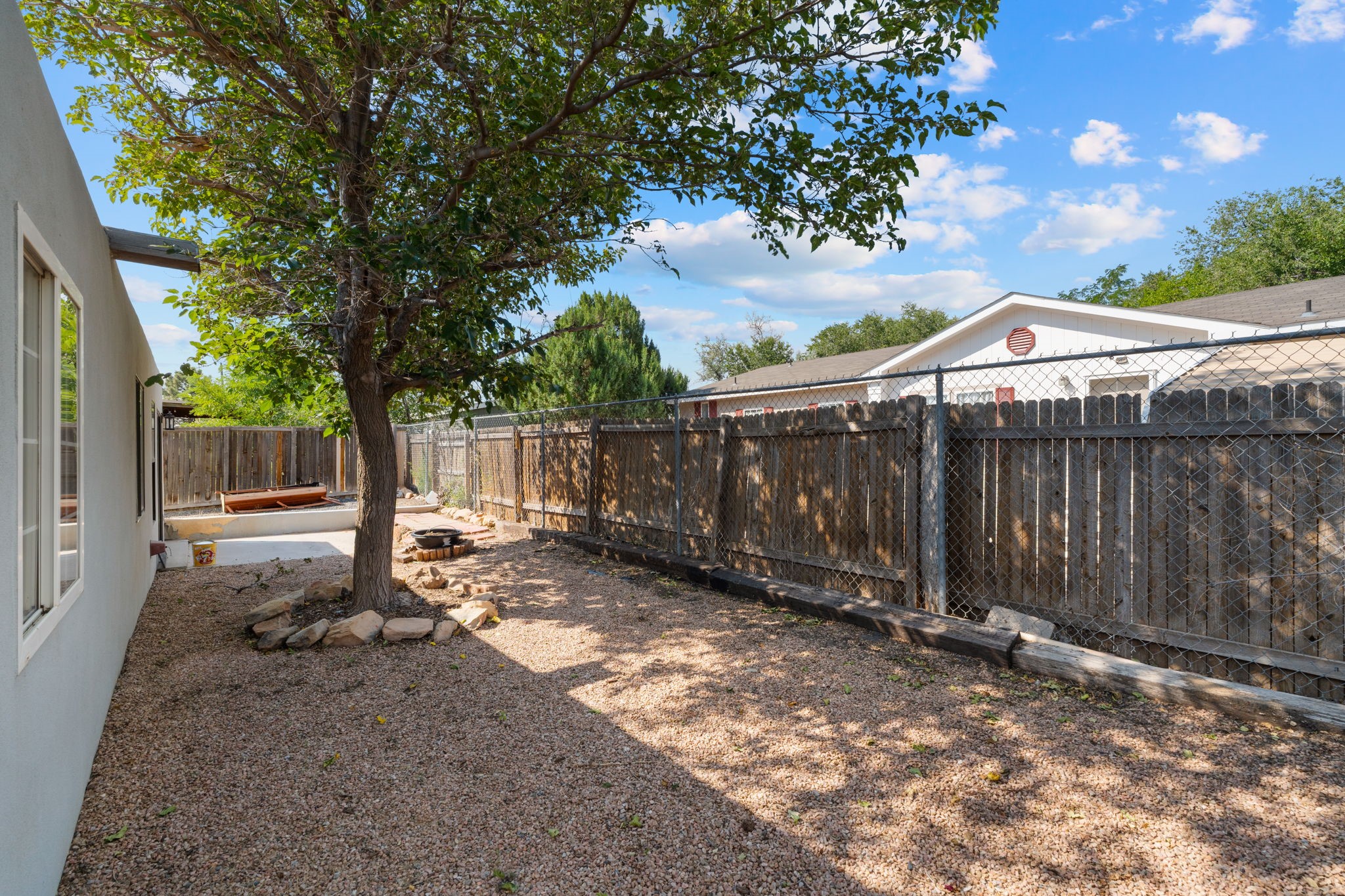 Welcome to this beautifully maintained charming home. There is new carpet and paint. This is a classic pueblo style home, single level with a 2-car garage. The main living area has a beautiful wood burning fireplace, the kitchen is spacious with a kitchen island and access to the backyard. This home is perfect for the person who wants the Santa Fe experience and easy living. This property has quick access to 599 bypass and I-25. The yards are landscaped and will be a delight year-round. The yard is walled and there is plenty of room for the family pet.