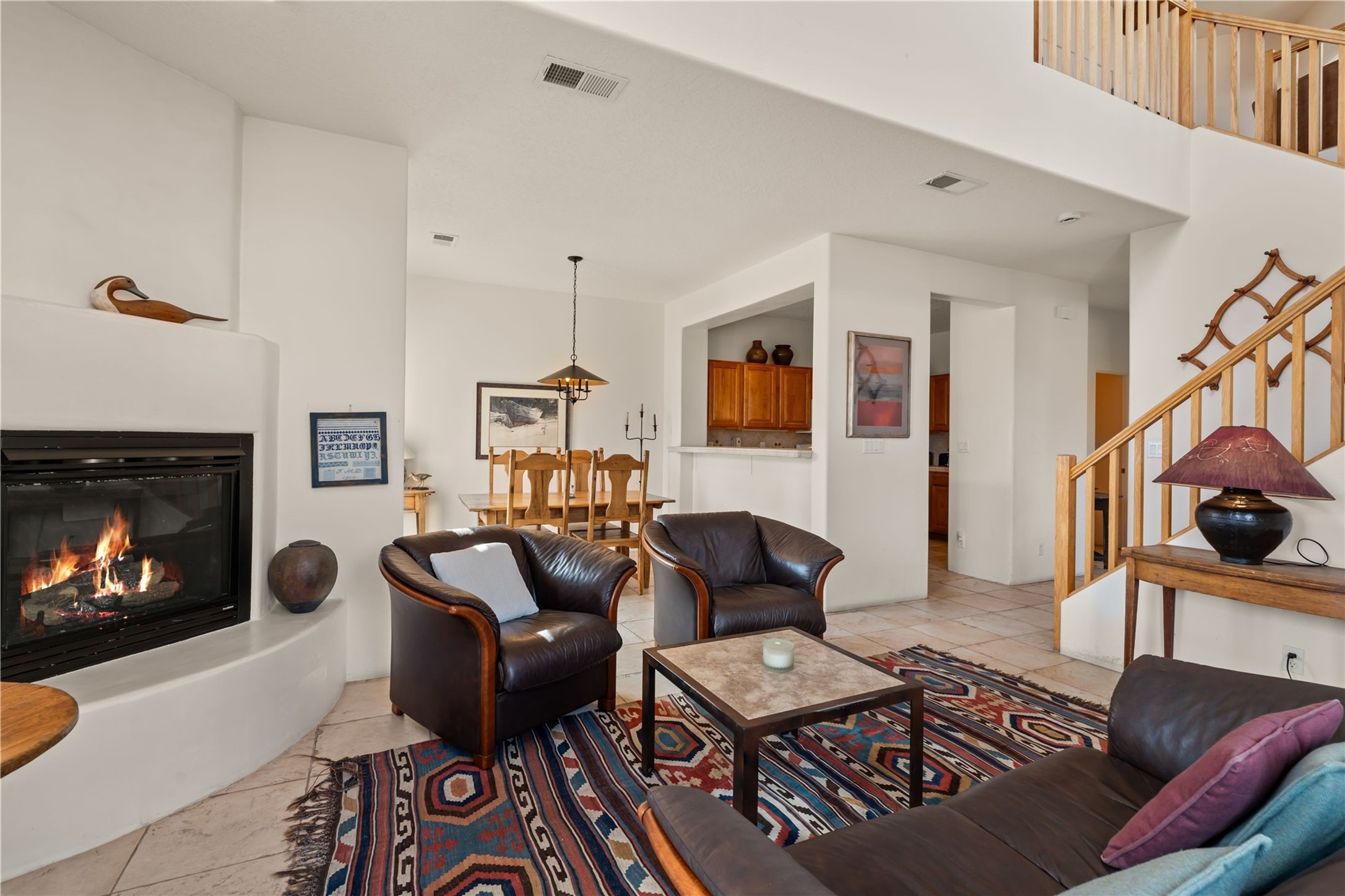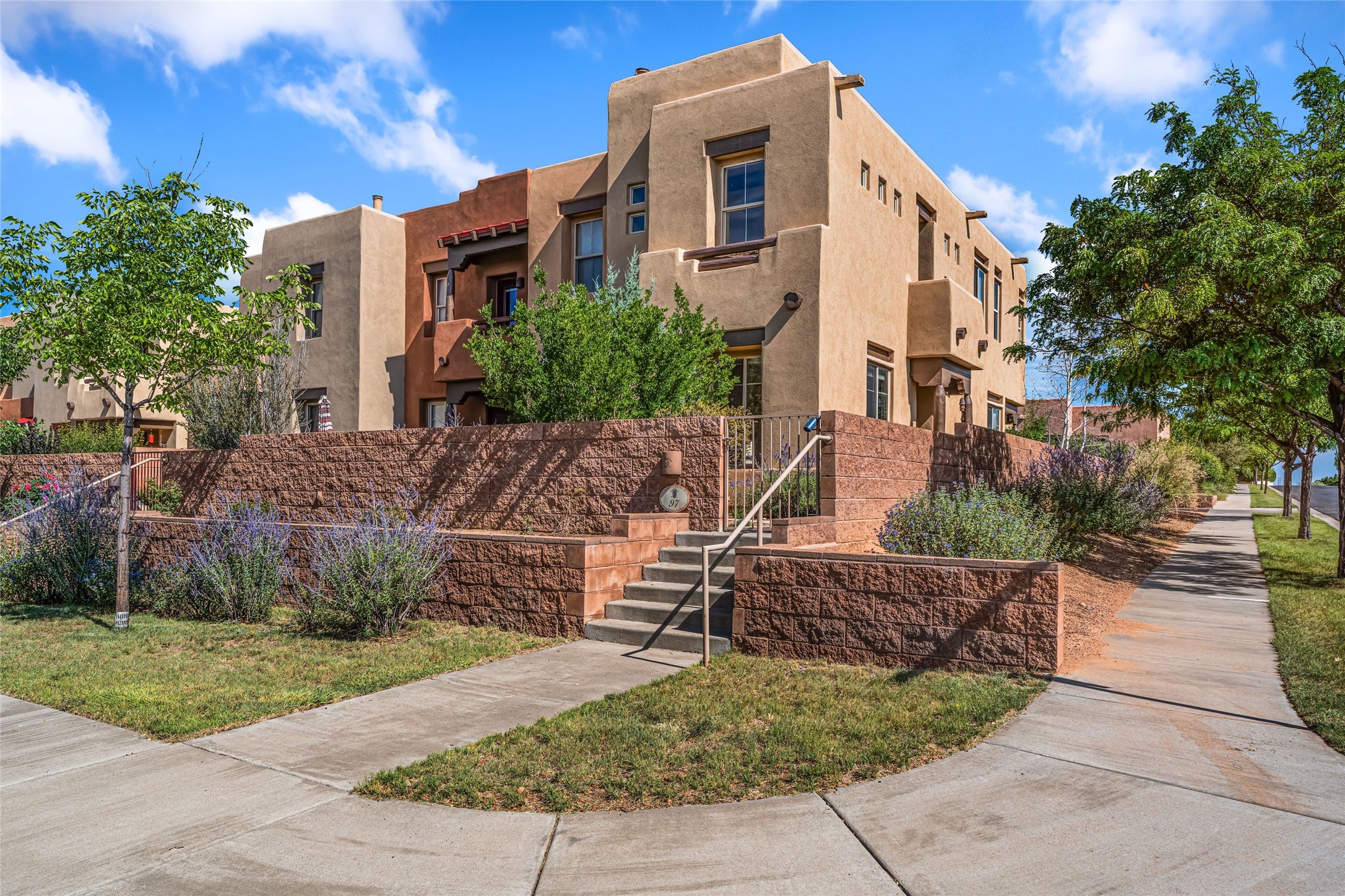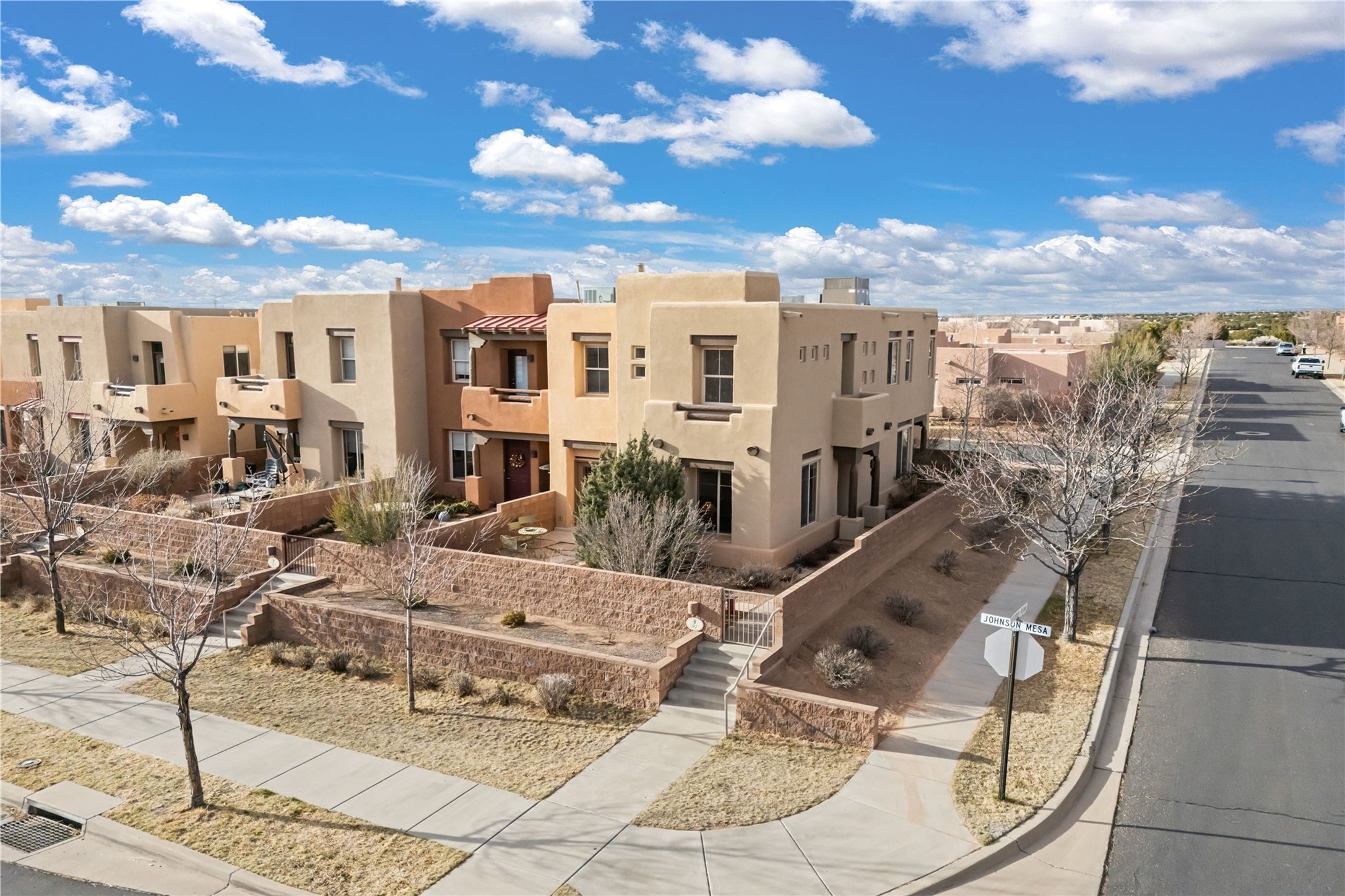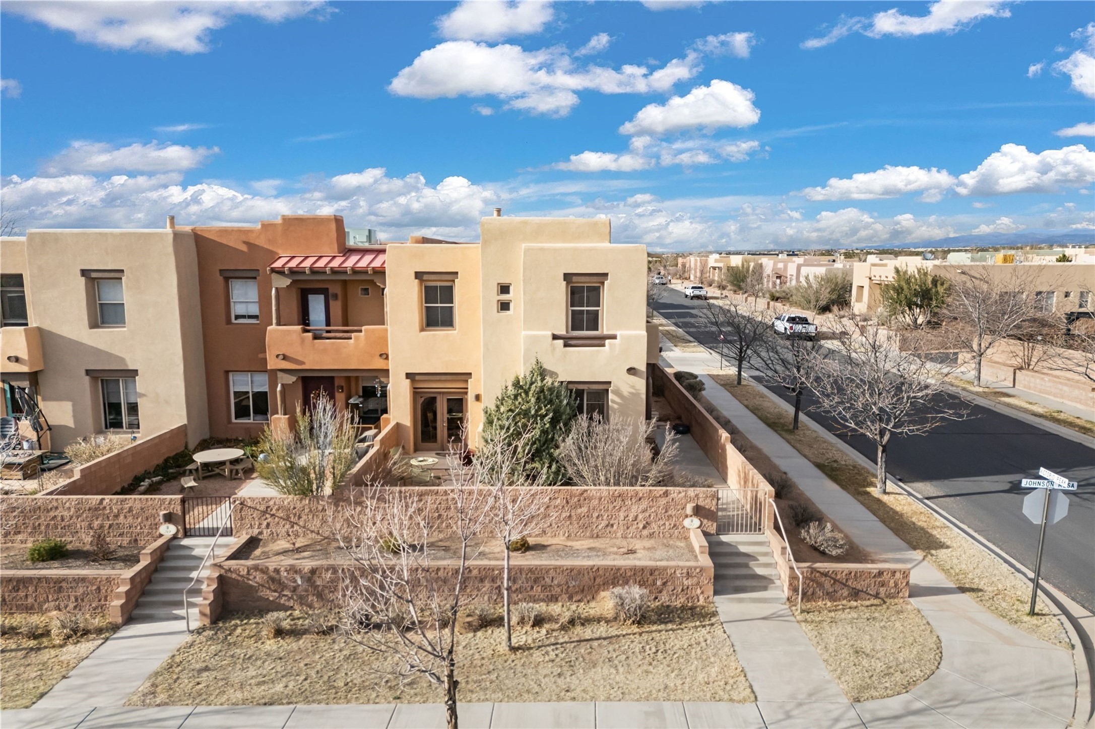 This updated end-unit townhome in Rancho Viejo offers low-maintenance living, modern upgrades, and convenient access to parks, trails, and Santa Fe amenities. With 2 bedrooms, 3 bathrooms, and 1,642 square feet of living space, the home features an open, light-filled layout ideal for comfortable living and entertaining. The living room with gas fireplace flows into a dining area and kitchen with new stainless steel appliances installed in July 2025. Upstairs, the spacious primary suite includes a balcony with northeast orientation capturing both sunrise and sunset light, along with a walk-in closet and ensuite bath. A second bedroom and full bath complete the upper level. Major systems and components have been updated, including a new HVAC system and hot water heater (2023), new balcony decking and roof (2024), and all exterior maintenance covered by the HOA. High-speed internet is available, and the attached two-car garage provides direct interior access. Enjoy outdoor space with a private deck and courtyard, plus proximity to trails, a park directly across the street, and Santa Fe Community College just 1.6 miles (about 5 minutes) away. Shopping and restaurants are 4.7 miles (about 12 minutes) away, and downtown Santa Fe is within easy reach. HOA dues also cover exterior maintenance, adding to the property's lock-and-leave appeal. Combining a prime location with significant recent improvements, this townhome offers a turnkey lifestyle in a peaceful community setting.