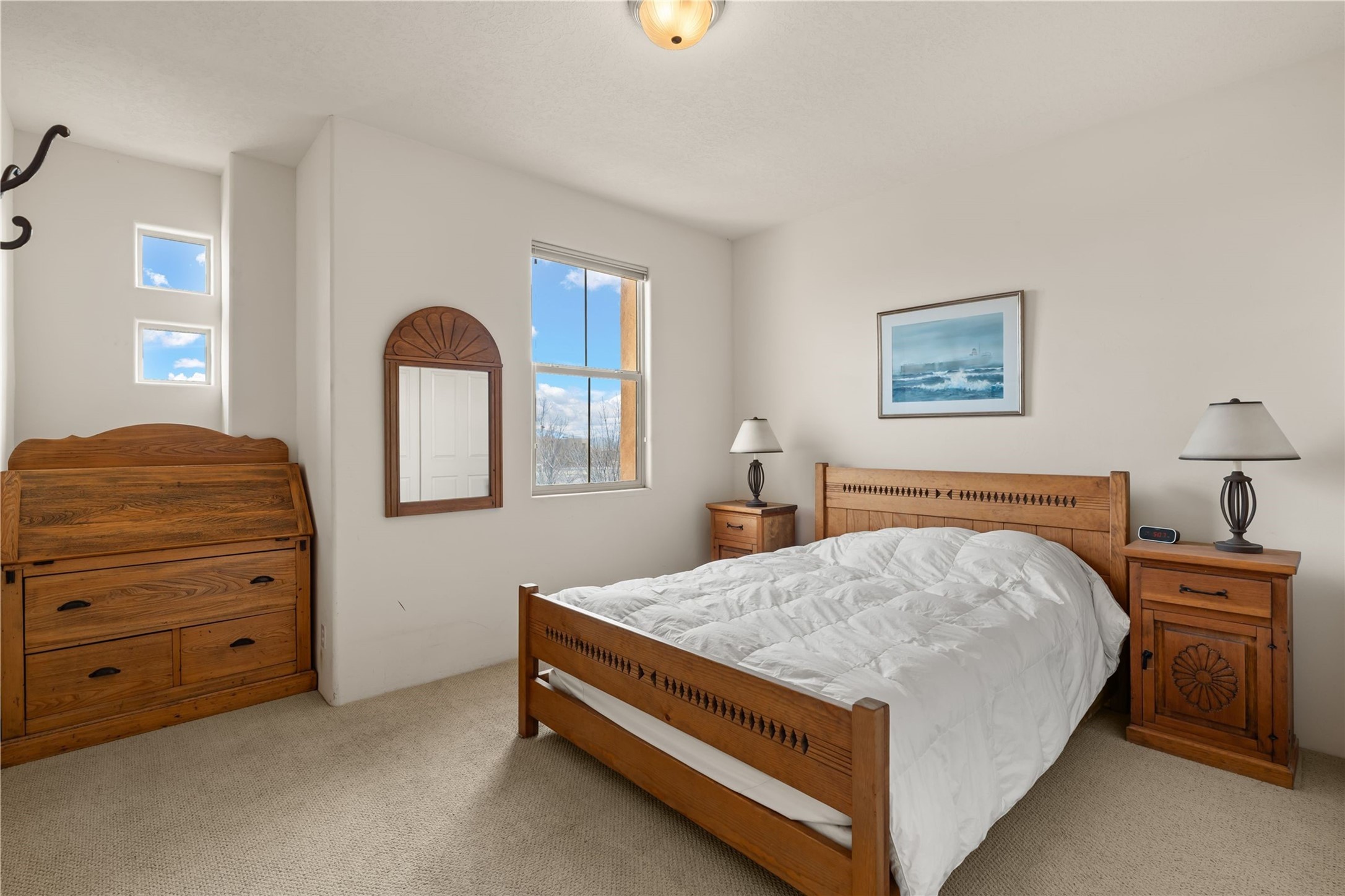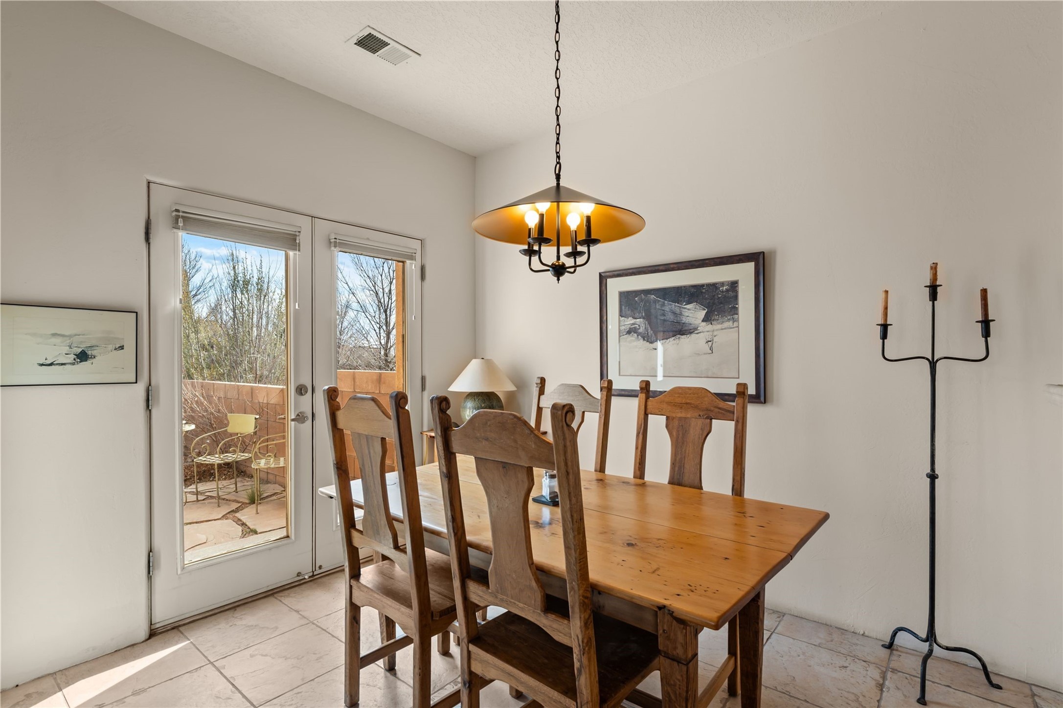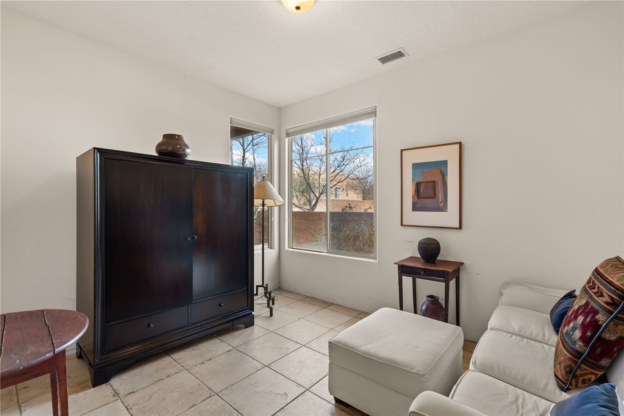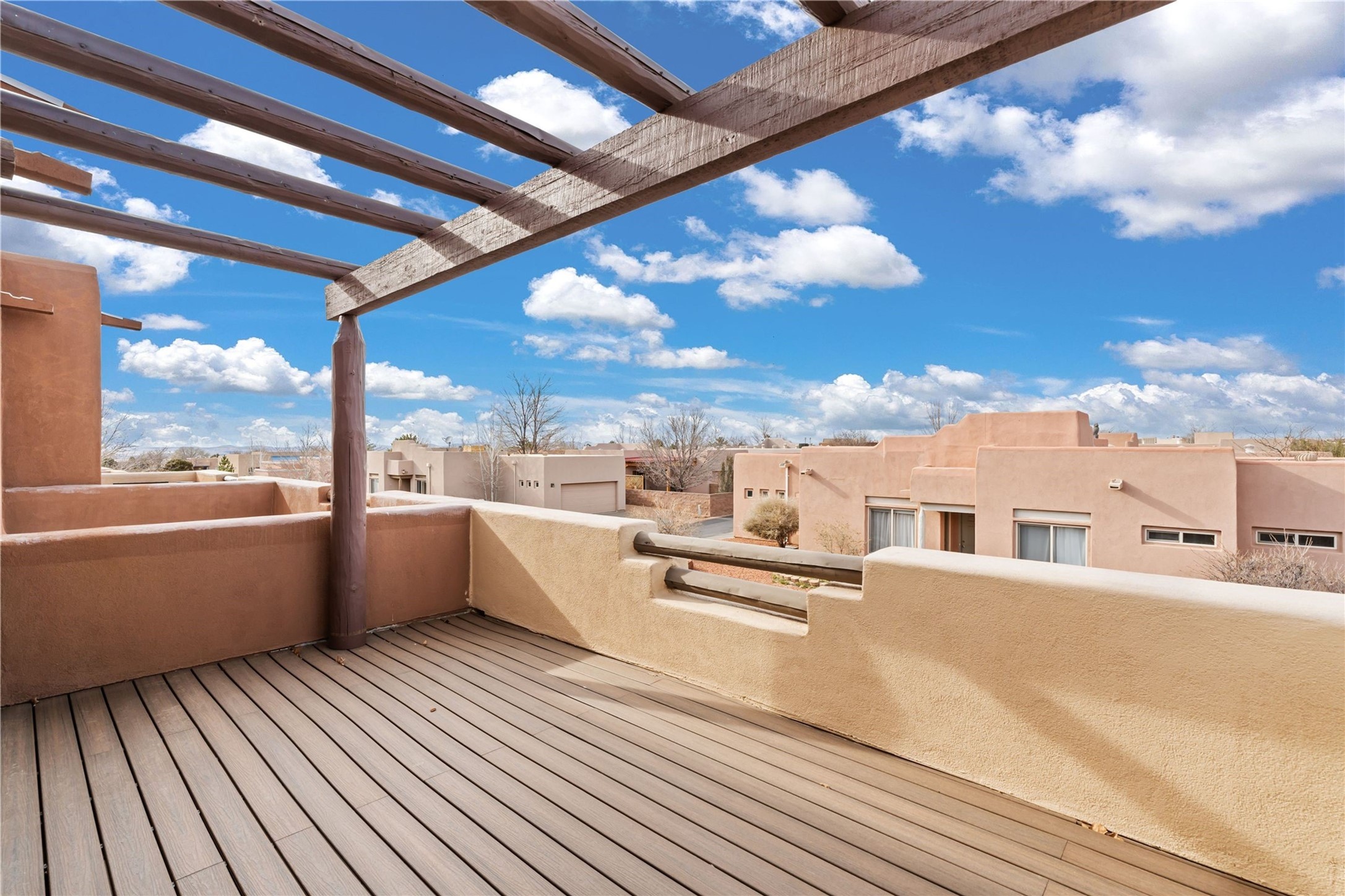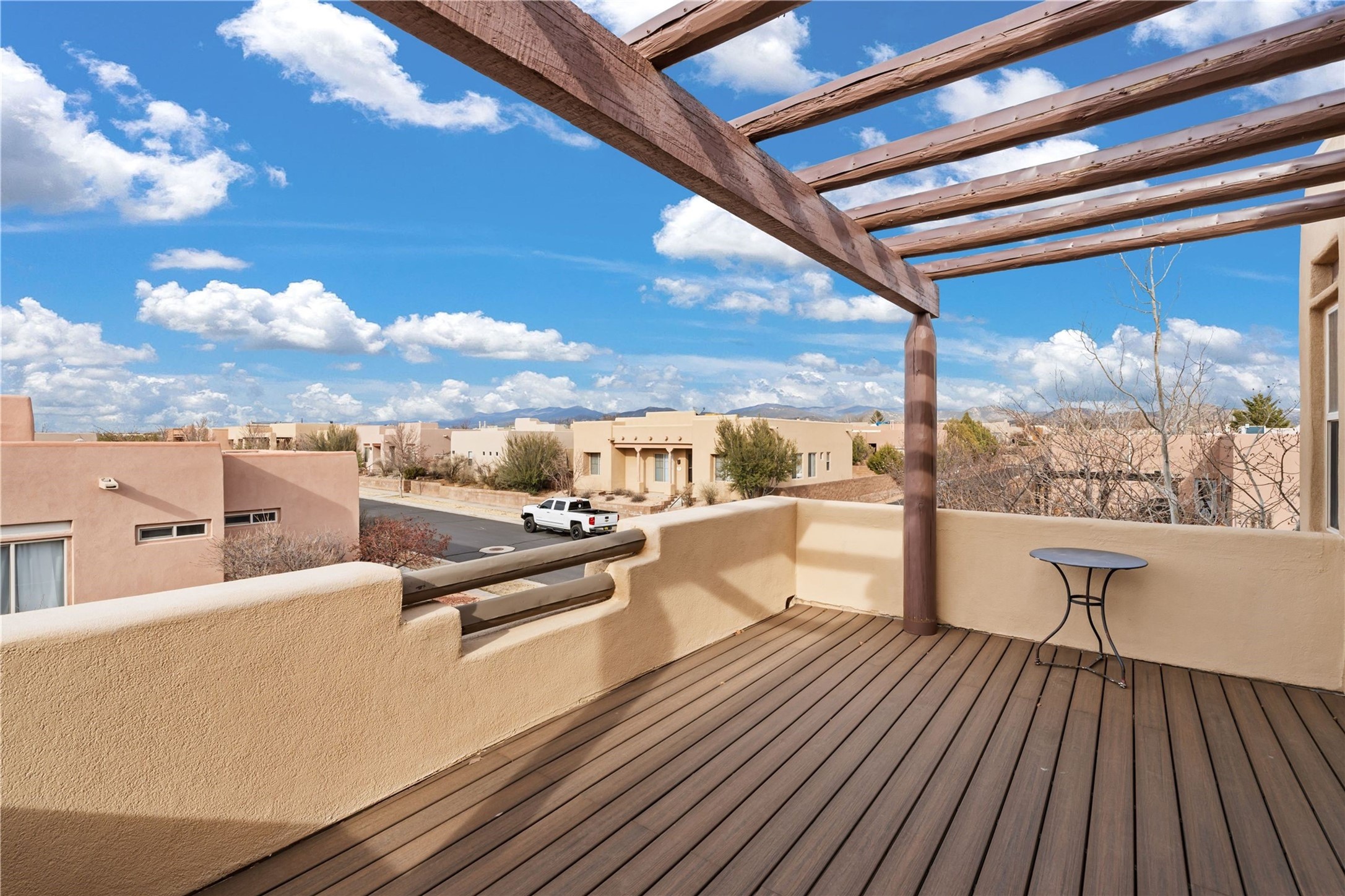 This updated end-unit townhome in Rancho Viejo offers low-maintenance living, modern upgrades, and convenient access to parks, trails, and Santa Fe amenities. With 2 bedrooms, 3 bathrooms, and 1,642 square feet of living space, the home features an open, light-filled layout ideal for comfortable living and entertaining. The living room with gas fireplace flows into a dining area and kitchen with new stainless steel appliances installed in July 2025. Upstairs, the spacious primary suite includes a balcony with northeast orientation capturing both sunrise and sunset light, along with a walk-in closet and ensuite bath. A second bedroom and full bath complete the upper level. Major systems and components have been updated, including a new HVAC system and hot water heater (2023), new balcony decking and roof (2024), and all exterior maintenance covered by the HOA. High-speed internet is available, and the attached two-car garage provides direct interior access. Enjoy outdoor space with a private deck and courtyard, plus proximity to trails, a park directly across the street, and Santa Fe Community College just 1.6 miles (about 5 minutes) away. Shopping and restaurants are 4.7 miles (about 12 minutes) away, and downtown Santa Fe is within easy reach. HOA dues also cover exterior maintenance, adding to the property's lock-and-leave appeal. Combining a prime location with significant recent improvements, this townhome offers a turnkey lifestyle in a peaceful community setting.