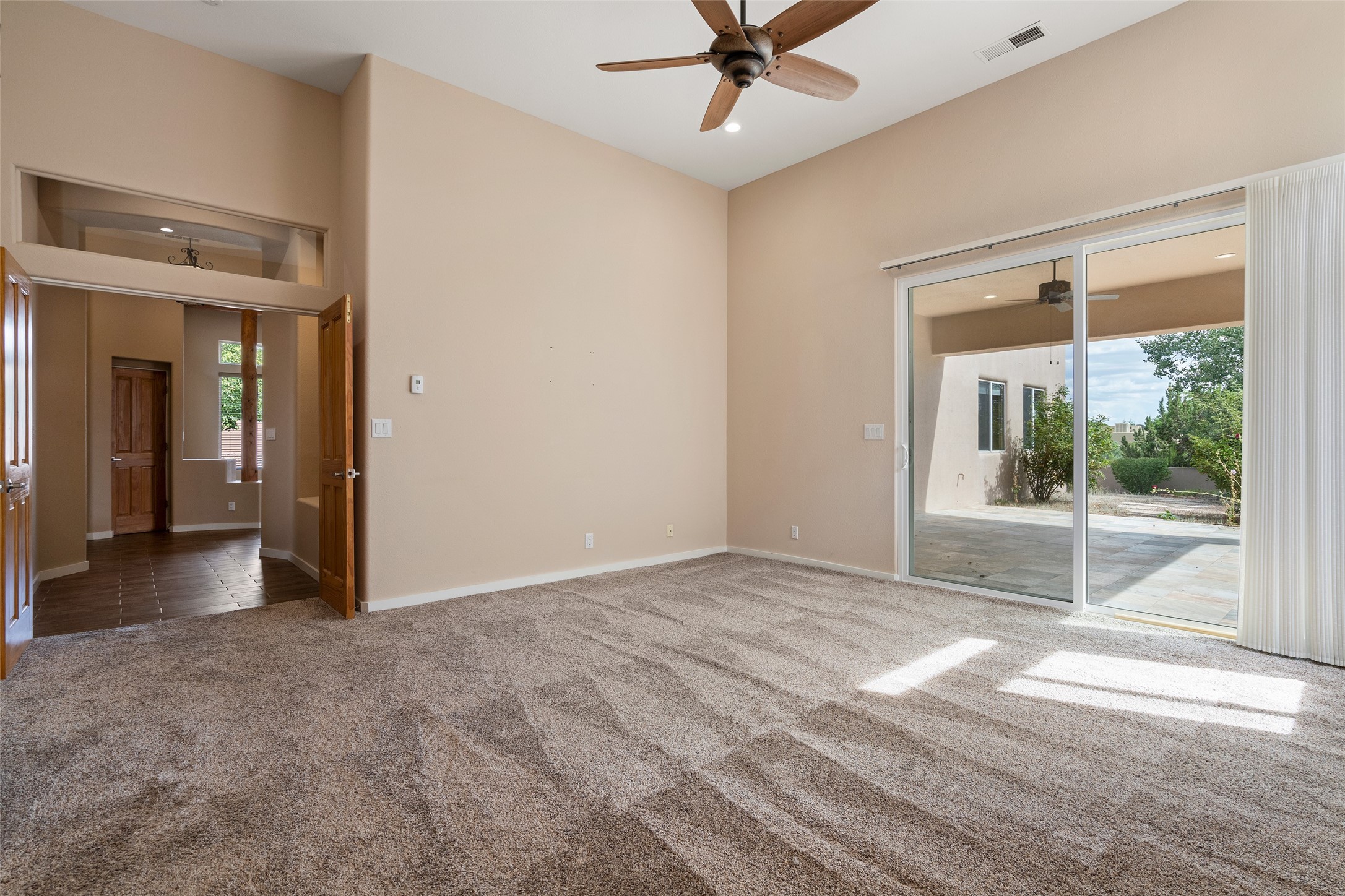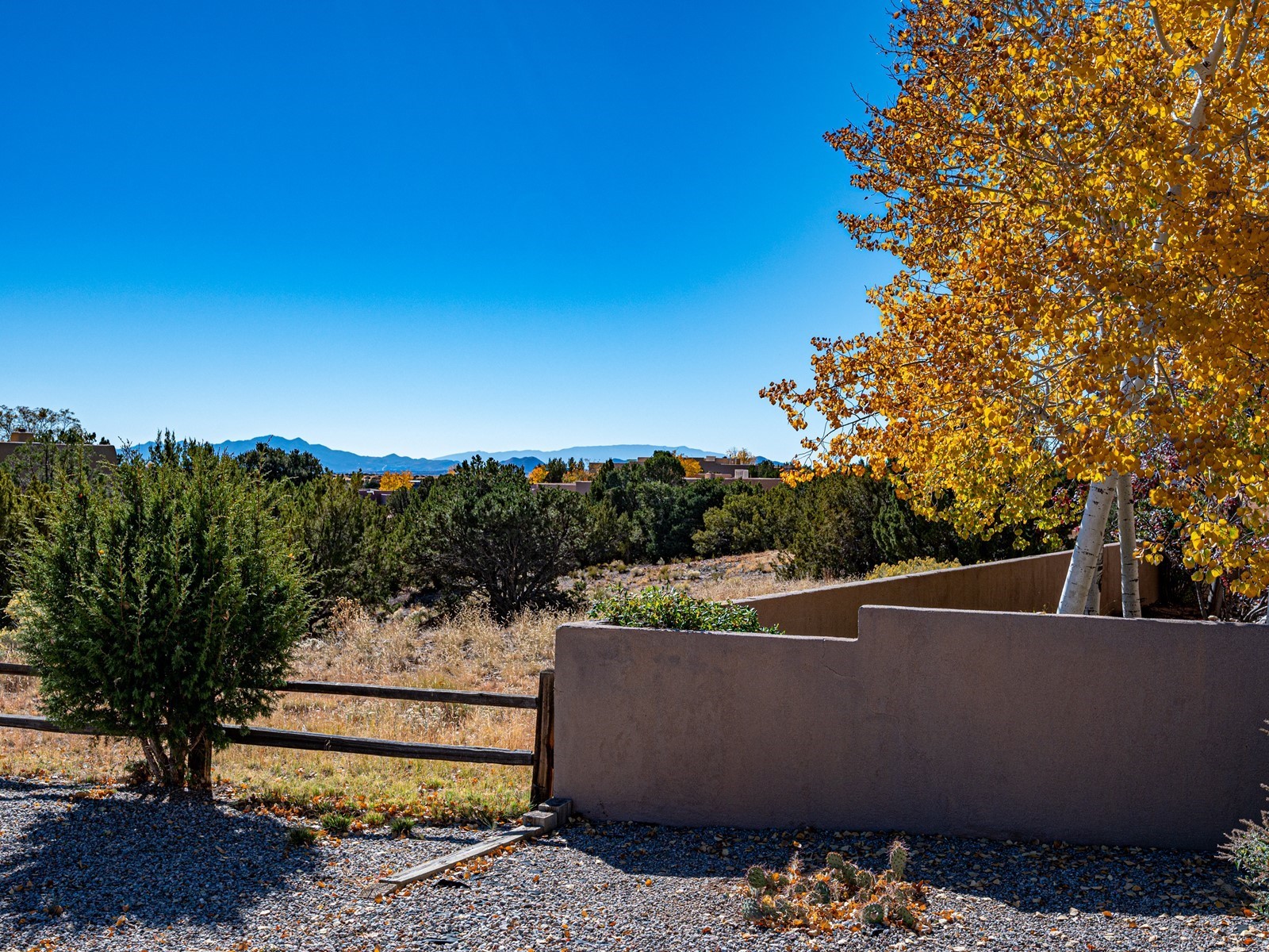 Look here: a stylish and updated home on a desirable corner lot! This immaculate single-level home has been extensively updated and shows beautifully. With over $170,000 in thoughtful renovations completed just a few years ago, the home feels modern, fresh, and move-in ready. The kitchen is a true centerpiece, featuring granite countertops, a custom tile backsplash, double ovens, a five-burner gas cooktop, under-cabinet lighting, a remodeled island, and a charming window seat. Wood-look tile flooring, bedroom carpet, and a paint refresh complement the home's warm modern-rustic style, while recessed LED lighting adds everyday brightness. The spacious primary suite is a serene retreat with a spa-like bath. You will love the separation from the other bedrooms. With four additional bedrooms--including a private ensuite with its own exterior access--the floor plan offers flexibility for guests, a studio, an in-home office, exercise room, media room and more! Outdoors, enjoy a covered portal with views of the Ortiz Mountains and thoughtfully designed landscaping that bursts with seasonal color from Virginia creepers, rose bushes, and ornamental fruit trees. All this in an unbeatable location: just 12 miles from the historic Santa Fe Plaza and only minutes to shopping and dining. The Rancho Viejo HOA enhances the neighborhood with multiple parks, vast open spaces, scenic paved trails, and well-kept surroundings protected by reasonable covenants. A home that blends style, comfort, and convenience -- and one you'll be proud to call your own.