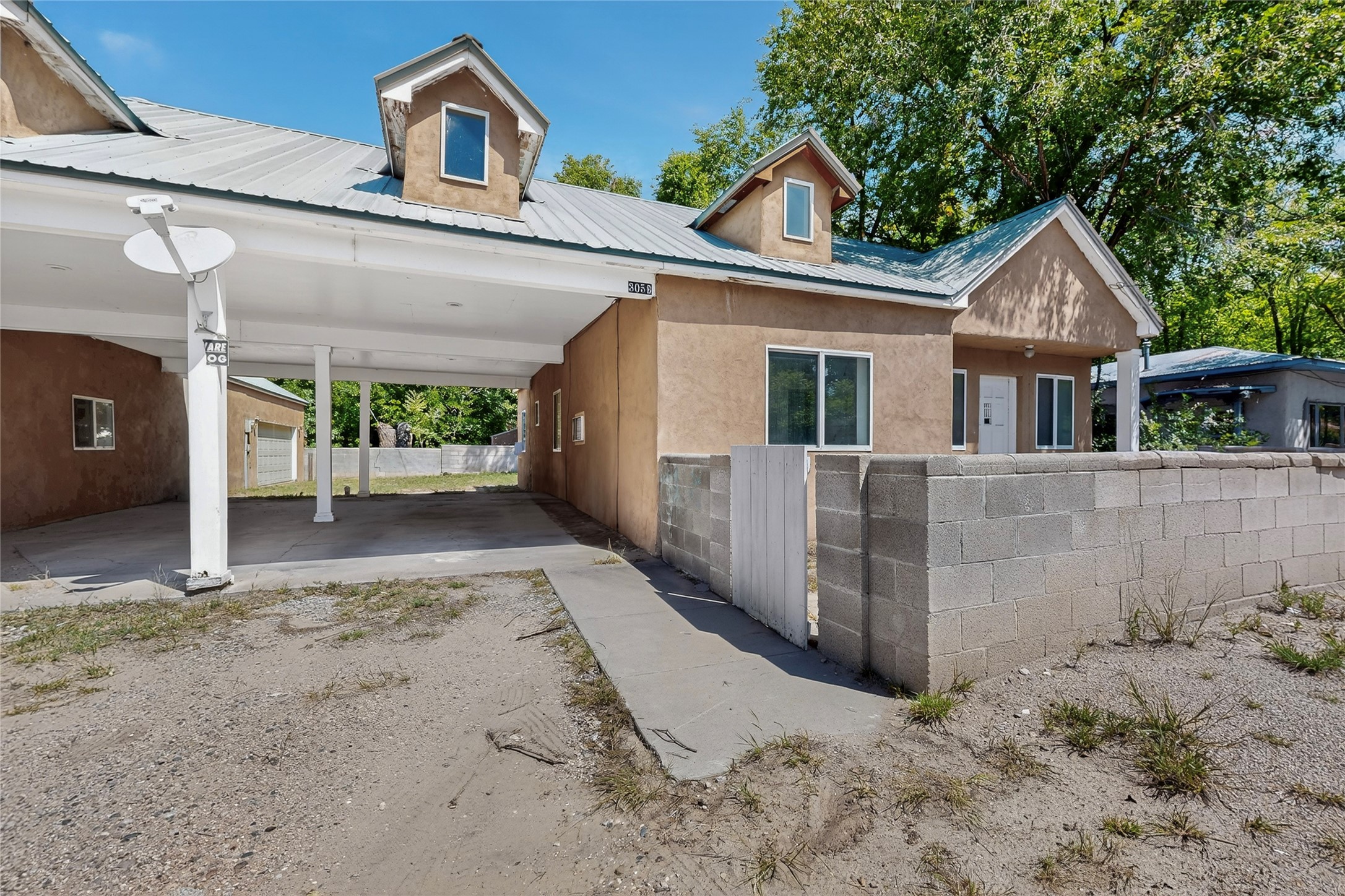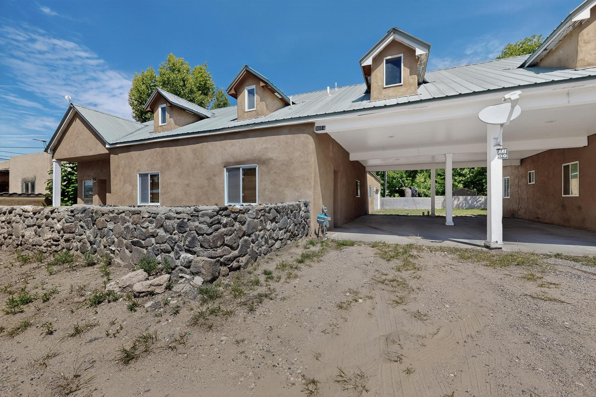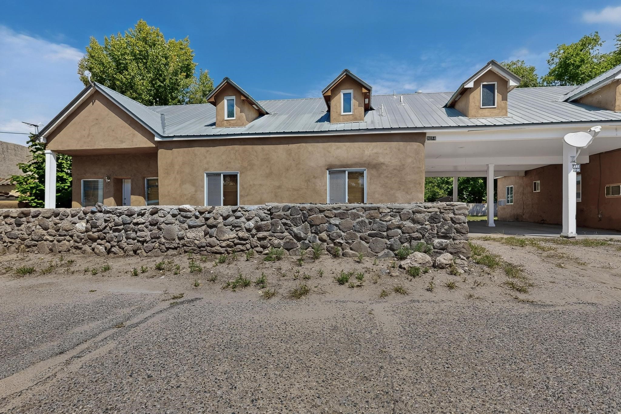 Located in Espanola, off of Riverside Drive, is a moderate sized Spanish style, adobe compound. There is a main home with oak flooring in the common areas, as well as, Saltillo tile. The bancos located throughout the house, provides that old fashioned, traditional sitting space that one could easily soften up, utilizing cushions and throw pillows. The Mexican tiled bathrooms add to the authenticity of the home design. The ceilings, in the common areas, are adorned with the traditional, Northern New Mexico vigas and latillas. A unique focal point, is the carved pillars that border two separate verticals walls and intersect with a horizontal carved beam, bordering the ceiling. The little touches added to the main home, accents Spanish Colonial charm the home represents. There is an attached two car garage (633 sqft) with storage space. There is a smaller dwelling attached to this home by the carport between the two structures, that together, represents the amazing Spanish Colonial architecture brought to the new world by the Spaniards in the late 15 hundreds. The pitched roof and dormers, along with the private courtyards, and the adobe construction, takes a person back in time. The photos tell the rest of the story. Together, multiple families could live in the compound. The compound could also serve as office spaces or home and offices. An incredible place to live or work, surrounded by old fashioned, traditional charm and comfort. Please, be sure to look through the photos and walk through the homes, as you view the 3-dimension videos. An easy 20 to 45 minute drive to Santa Fe, Los Alamos, Taos, and Abiquiu.