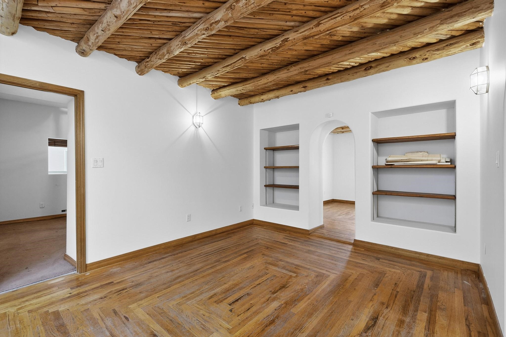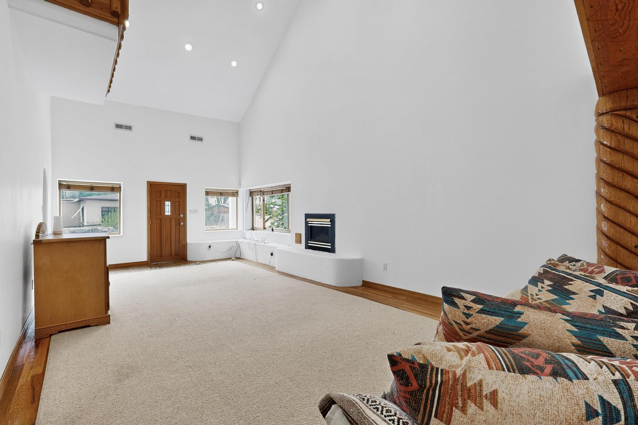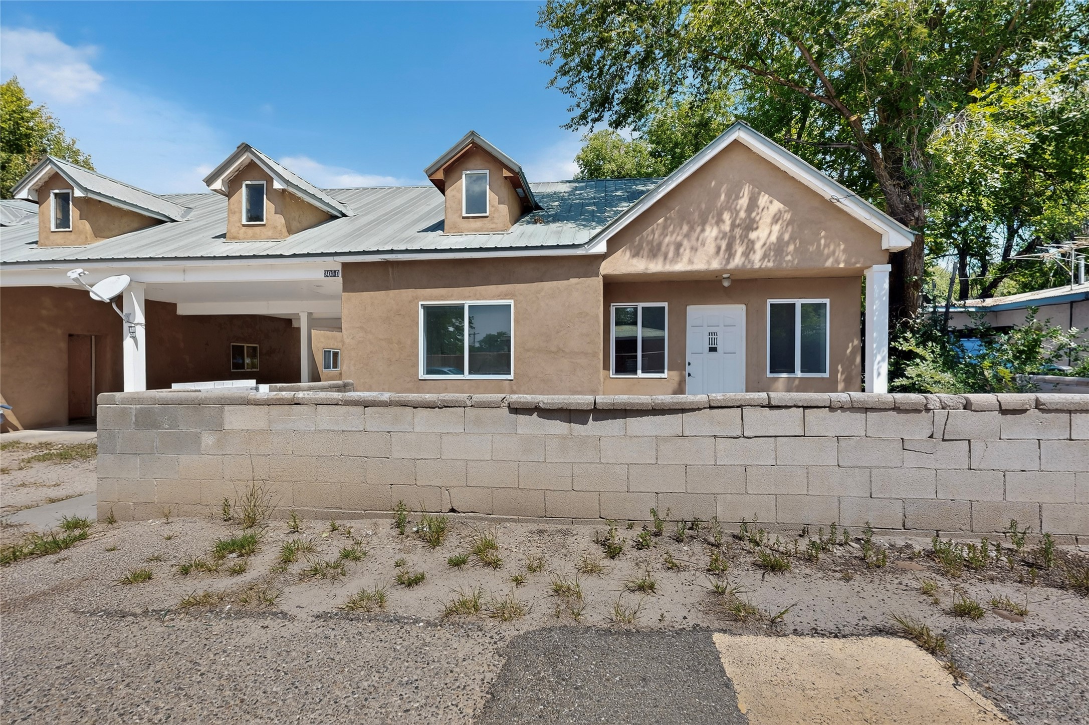 Located in Espanola, off of Riverside Drive, is a moderate sized Spanish style, adobe compound. There is a main home with oak flooring in the common areas, as well as, Saltillo tile. The bancos located throughout the house, provides that old fashioned, traditional sitting space that one could easily soften up, utilizing cushions and throw pillows. The Mexican tiled bathrooms add to the authenticity of the home design. The ceilings, in the common areas, are adorned with the traditional, Northern New Mexico vigas and latillas. A unique focal point, is the carved pillars that border two separate verticals walls and intersect with a horizontal carved beam, bordering the ceiling. The little touches added to the main home, accents Spanish Colonial charm the home represents. There is an attached two car garage (633 sqft) with storage space. There is a smaller dwelling attached to this home by the carport between the two structures, that together, represents the amazing Spanish Colonial architecture brought to the new world by the Spaniards in the late 15 hundreds. The pitched roof and dormers, along with the private courtyards, and the adobe construction, takes a person back in time. The photos tell the rest of the story. Together, multiple families could live in the compound. The compound could also serve as office spaces or home and offices. An incredible place to live or work, surrounded by old fashioned, traditional charm and comfort. Please, be sure to look through the photos and walk through the homes, as you view the 3-dimension videos. An easy 20 to 45 minute drive to Santa Fe, Los Alamos, Taos, and Abiquiu.
