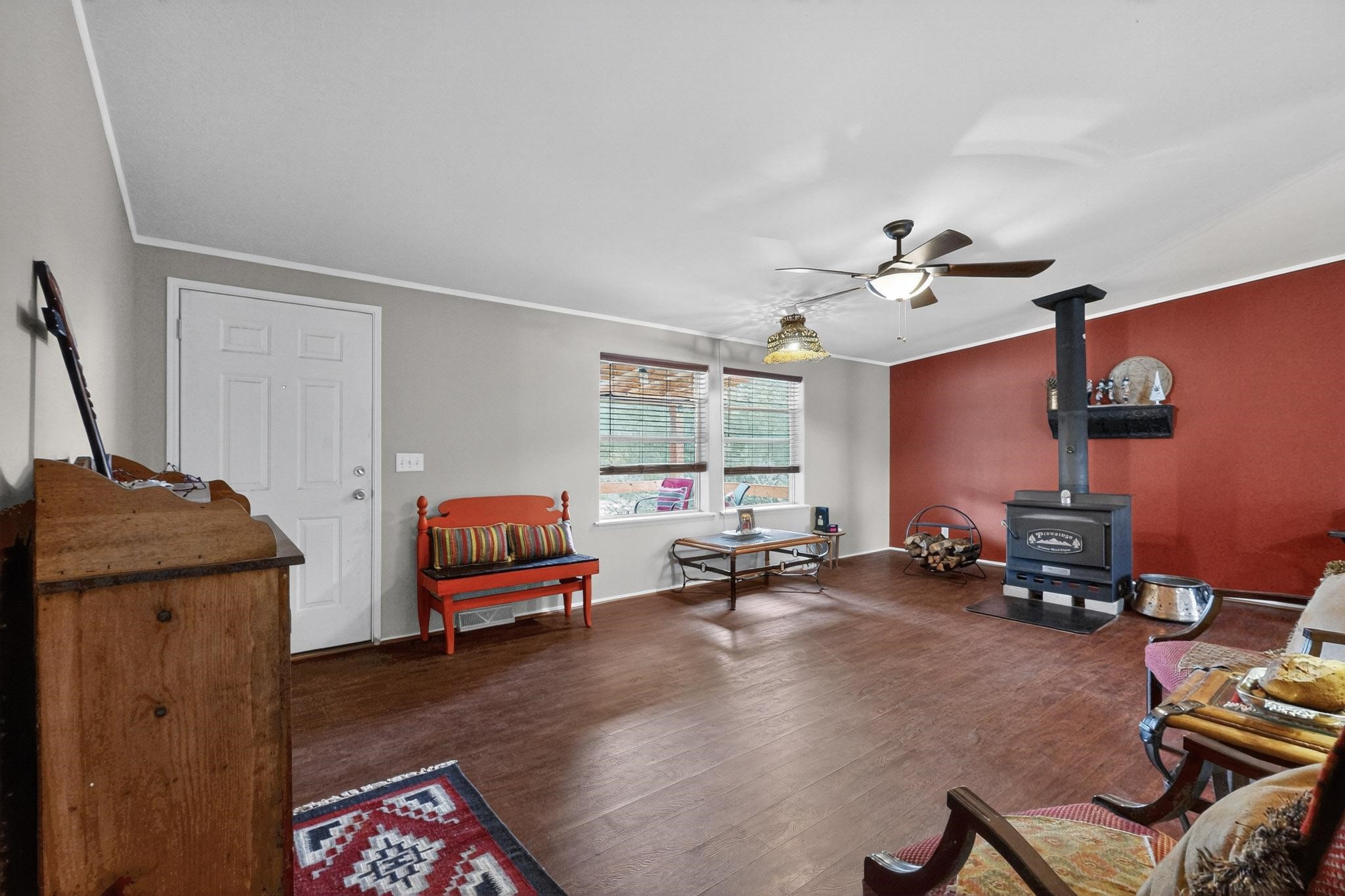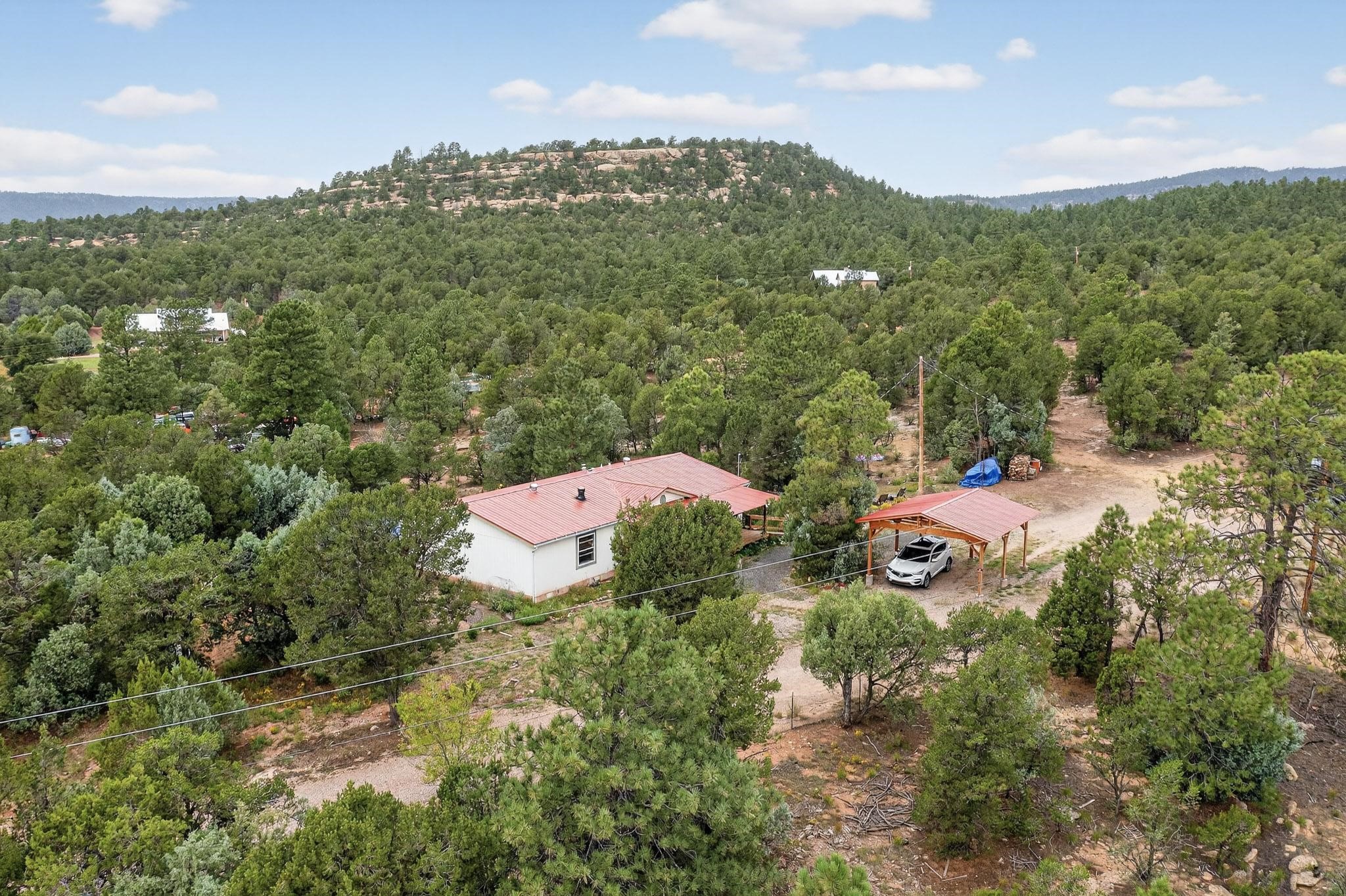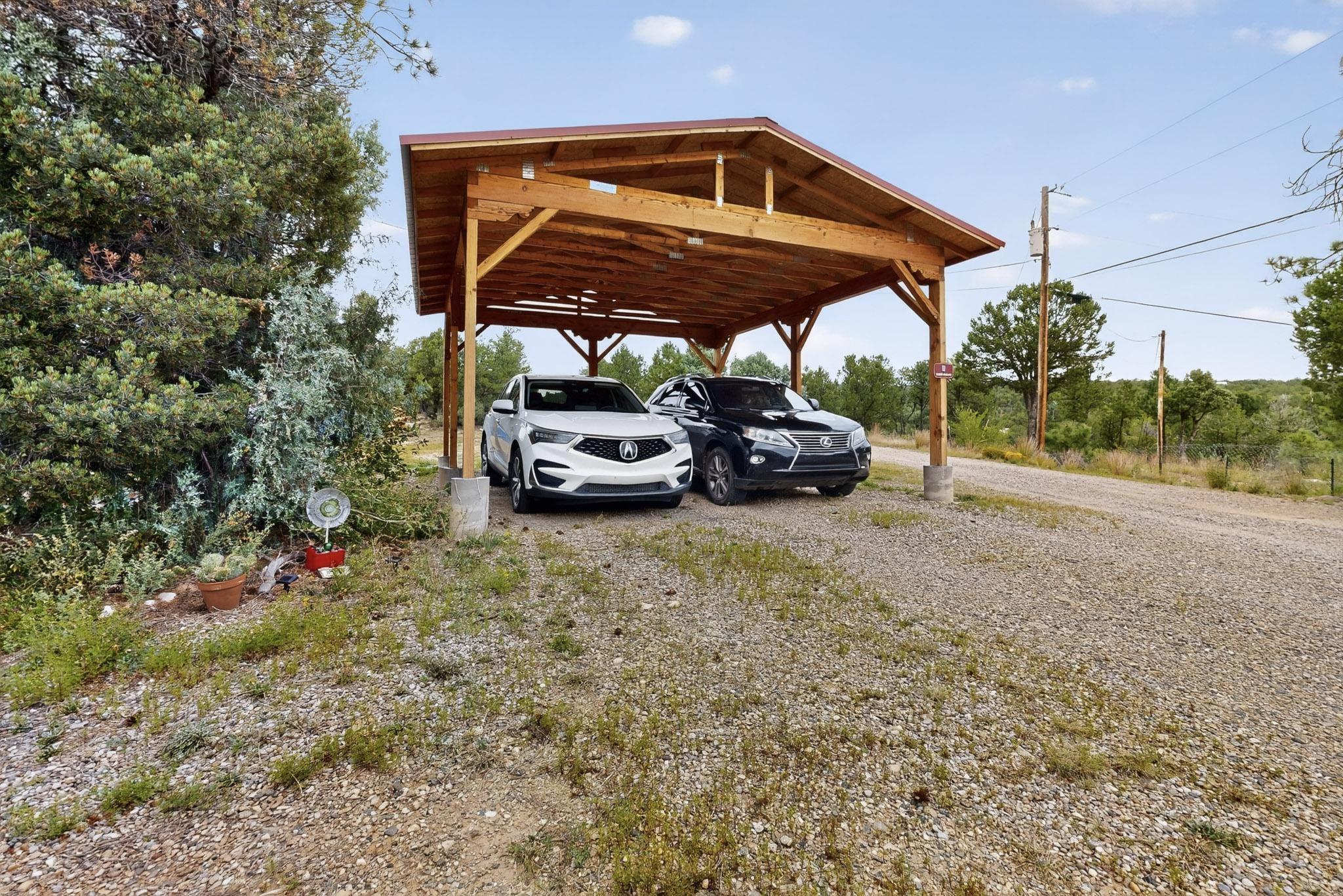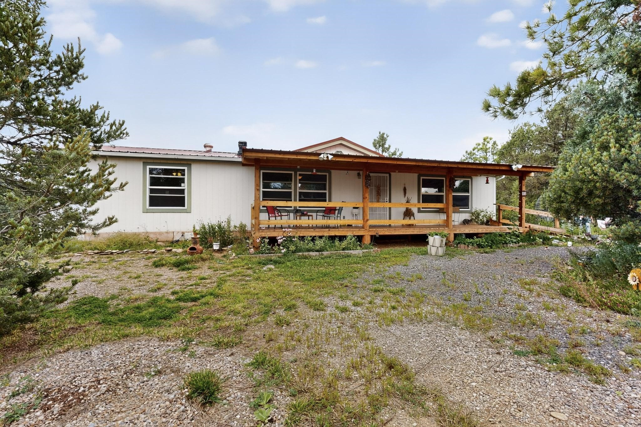 TWO for the PRICE of ONE, 11 and 15 Corte Vargas includes 3 Bedroom, 2 Bath 2007 doublewide on a permanent foundation on 1.026 +/- acres and adjoining vacant lot 5.371 +/- acres with 1/4 ownership in a shared well, several building sites and much potential for additional structures. Located in the Glorieta area off NM Hwy 50, 22 minutes to Santa Fe this listing has much to offer buyers. The home is accessed from a covered porch, has living room with wood burning stove, cook's kitchen, split bedroom floor plan, forced air heating as well as air conditioning, ample closets, washer and dryer. The area around the home is nicely landscaped with perennial flowers, walkways, covered chicken coop, 2 car carport and designated sitting and viewing areas. The adjoining separately deeded lot comes with the potential for water from the shared well (4 hook-ups only). It has several potential building sites, a multitude of healthy Pinon, Ponderosa Pine, oak and Juniper trees, dramatic out croppings, varied terrain, views to the north and almost at the end of the acreage a seasonal creek. The north boundary adjoins lands claimed by the Jemez Pueblo and is a vast open space. Located in Santa Fe County the property is served by Eldorado Community School and Santa Fe High School. For the best of country living please consider 11 & 15 Corte Vargas.