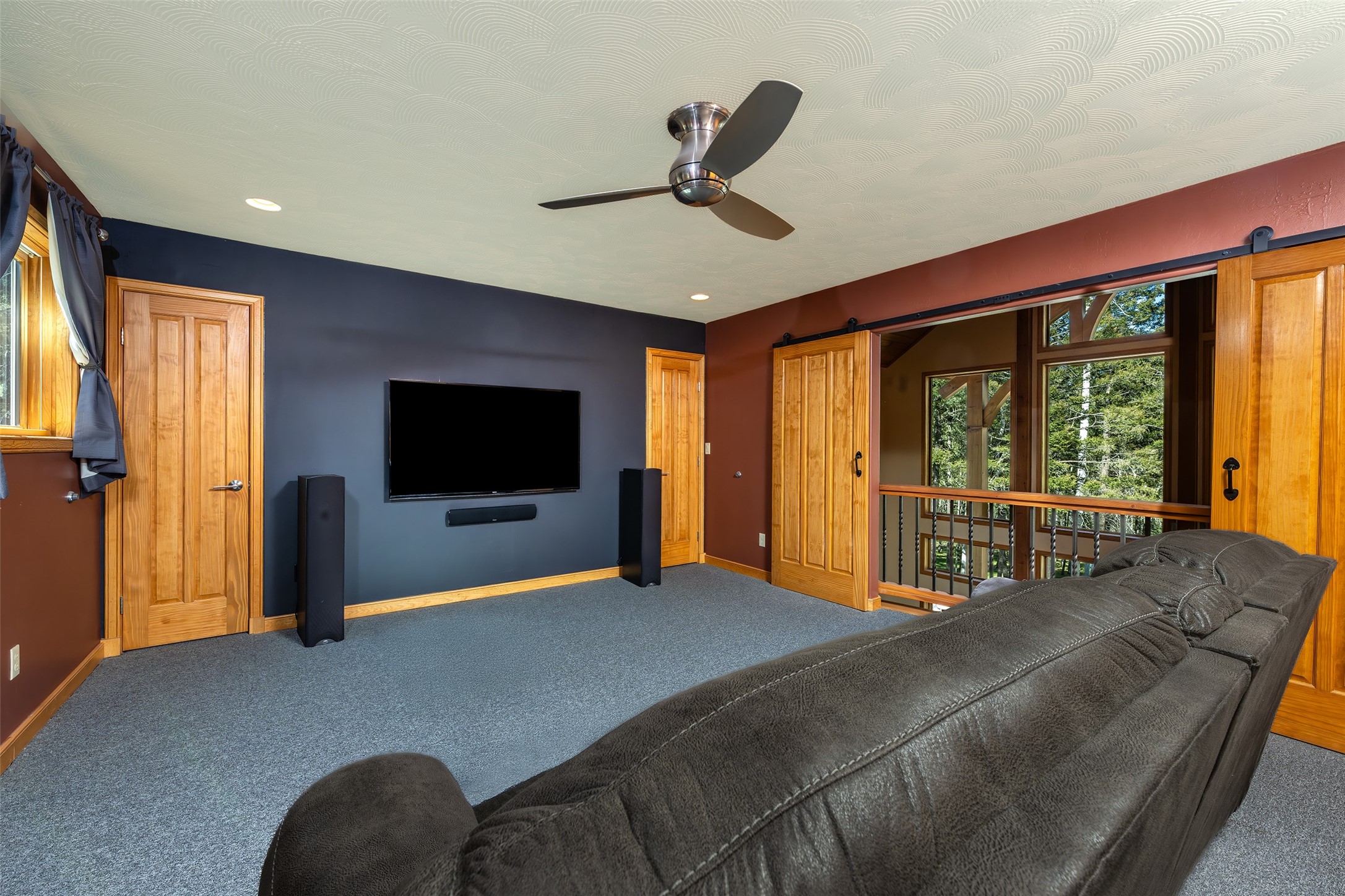 This beautifully maintained property sits on over 2 acres of fire-wise thinned forest, offering both privacy and peace of mind. Thoughtfully upgraded with high-quality appliances, luxury furnishings, and quality finishes throughout, this home combines comfort with sophistication. A gourmet kitchen designed for culinary excellence is perfect for both everyday living and entertaining in style. The towering rock-wall fireplace exudes rustic elegance and warmth. Stunning floor-to-ceiling windows create a seamless connection between indoor living and the large, reinforced covered decks built to withstand the elements and support outdoor living year-round. With ample space for dining, lounging, and gathering, this is truly an extension of the home--where nature and luxury meet. Unwind after a long day in the private hot tub, perfectly positioned to take in the serene mountain landscape. Key features include a home theatre room, an elegant wine cellar, an electric firewood hoist plus two spacious storage sheds for added convenience. Additionally there is a 30 AMP RV hookup for visiting guests and a redone gravel driveway for improved access and curb appeal. Access to nearby hiking trails, stocked fishing lake, PGA rated golf course, ski resort and country club all just minutes away. A true mountain oasis, blending modern upgrades with natural beauty. Move-in ready with furniture and meticulously cared for--this is the mountain lifestyle at its finest.