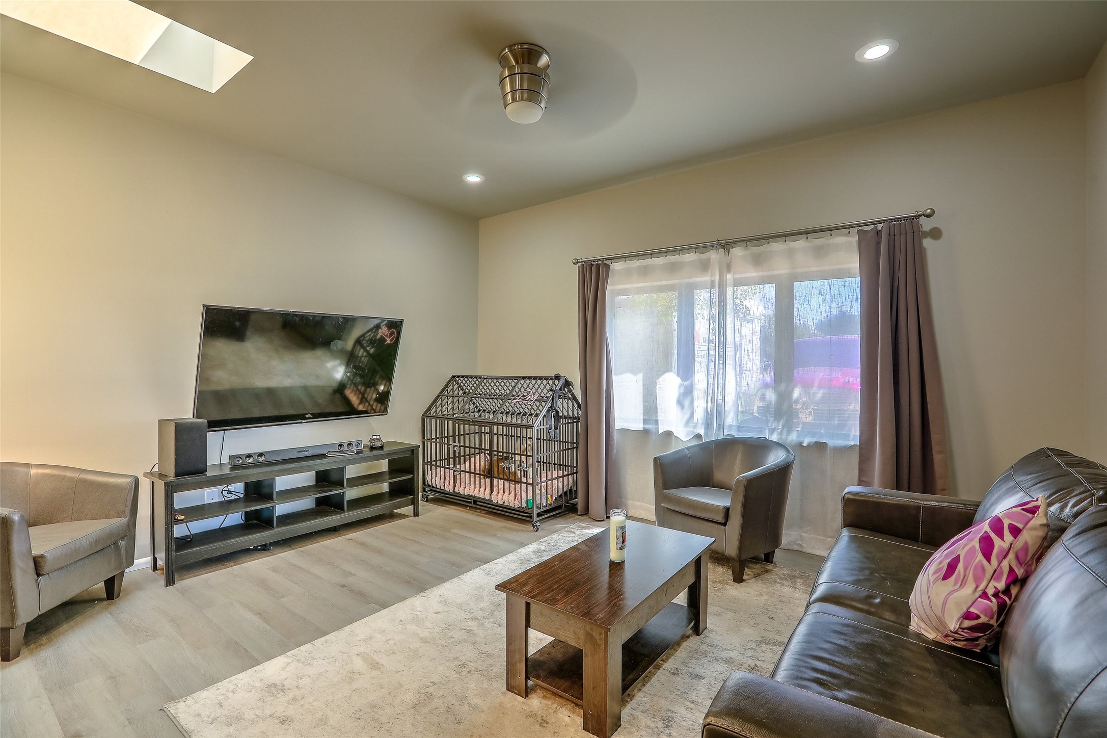 Priced to sell! Don't miss our on this opportunity!!! Absolute Stunner in Santa Fe! Perfect for a Large Family or Investor. Walk into the 2,764 SF 3 Bedroom, 3.5 Bath Primary Home and be greeted with Luxury! A Huge Sunken Family Room creates a Cozy and Intimate Atmosphere for Family Gatherings centered around a Fireplace accented with a Stonewall covering the entire South Wall. Magnificent Vigas and Diamond Finish Walls provide the Perfect Touch! The Kitchen is a True Chefs Delight! The Main Home includes an En Suite, Office, Radiant Floor Heating, Central Vac System, Water Softener System, and a High Efficiency Tankless Water Heater. The Comfy Primary Suite is equipped with its own Fireplace offering the Ultimate Relaxation. Attached to the Main Home is a Fabulous 1,008 SF Efficiency Suite with its own Private Entrance and includes 1 Bedroom, 1 Bath, Office, Full Kitchen, Laundry Room and Living Area. Behind the Full Size Enclosed Basketball Court you will find an additional 1,560 SF Guest Home that was built in 2022. This Modern New Home offers 4 Bedrooms; a Primary Suite, an En Suite, and 2 Guest Rooms and 3 Baths. Features include all Tile Flooring, Tankless Water Heater, TPO Roof, Fenced Yard and its own Private Road. The Two Large (480 SF Each) Utility Sheds/Carports also convey. Don't Miss Out on this One of a Kind Opportunity!!