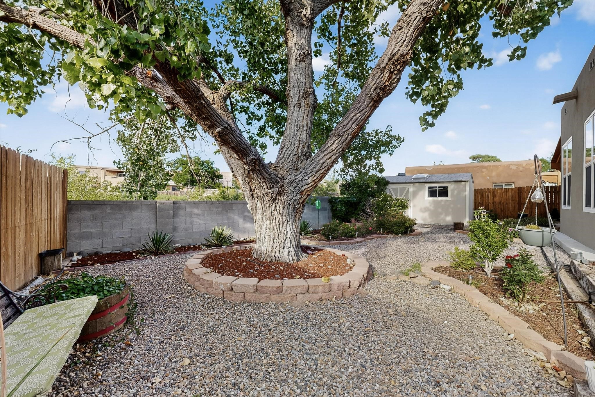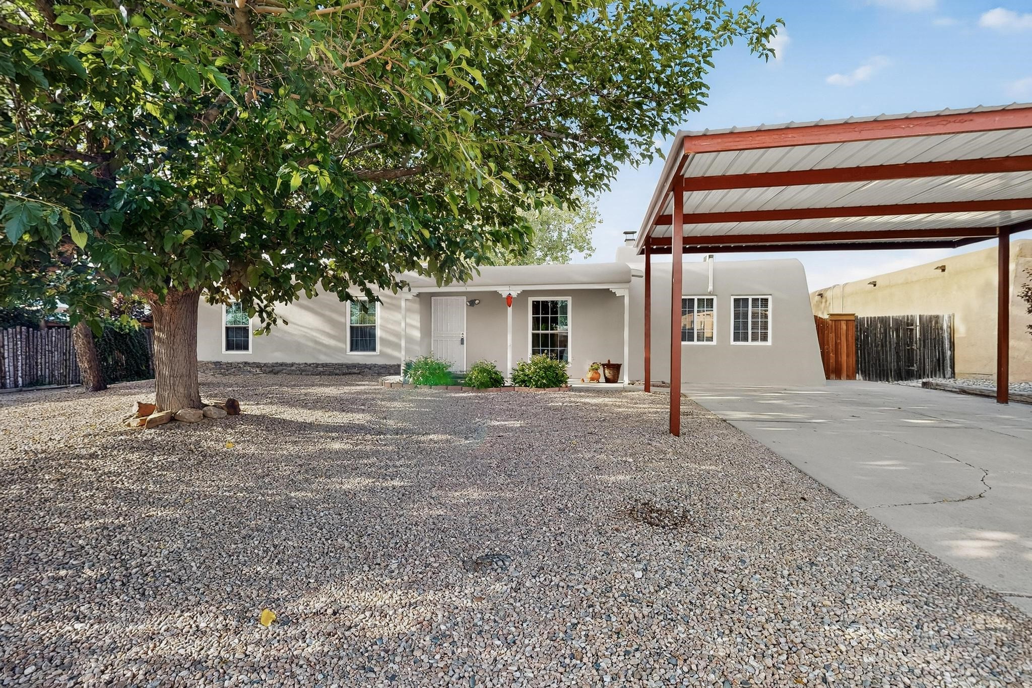 Tucked away in a quiet neighborhood, this home offers a perfect blend of classic Southwestern character and thoughtful modern upgrades. This 3-bedroom home, with a flexible den that can serve as a 4th bedroom or office, is move-in ready and full of possibilities. A recent addition brings warmth and wow-factor with tongue-and-groove ceilings, exposed vigas, a cultured stone accent wall, and a sleek electric fireplace. Dual sliding glass doors open the space to both a lush garden area and a covered patio--ideal for entertaining or enjoying peaceful mornings outdoors.Stay comfortable year-round with a brand-new mini-split system in the living room for efficient heating and cooling. Additional improvements include a newly built carport, providing covered parking and protection from the elements.Inside, you'll find a classic kiva fireplace in the den, and loads of natural light throughout. The front and backyard are beautifully landscaped with mature trees and a charming storage or garden shed that stays with the property.Located minutes from parks, schools, and shopping, this home is a rare blend of charm, comfort, and convenience in the heart of Santa Fe.