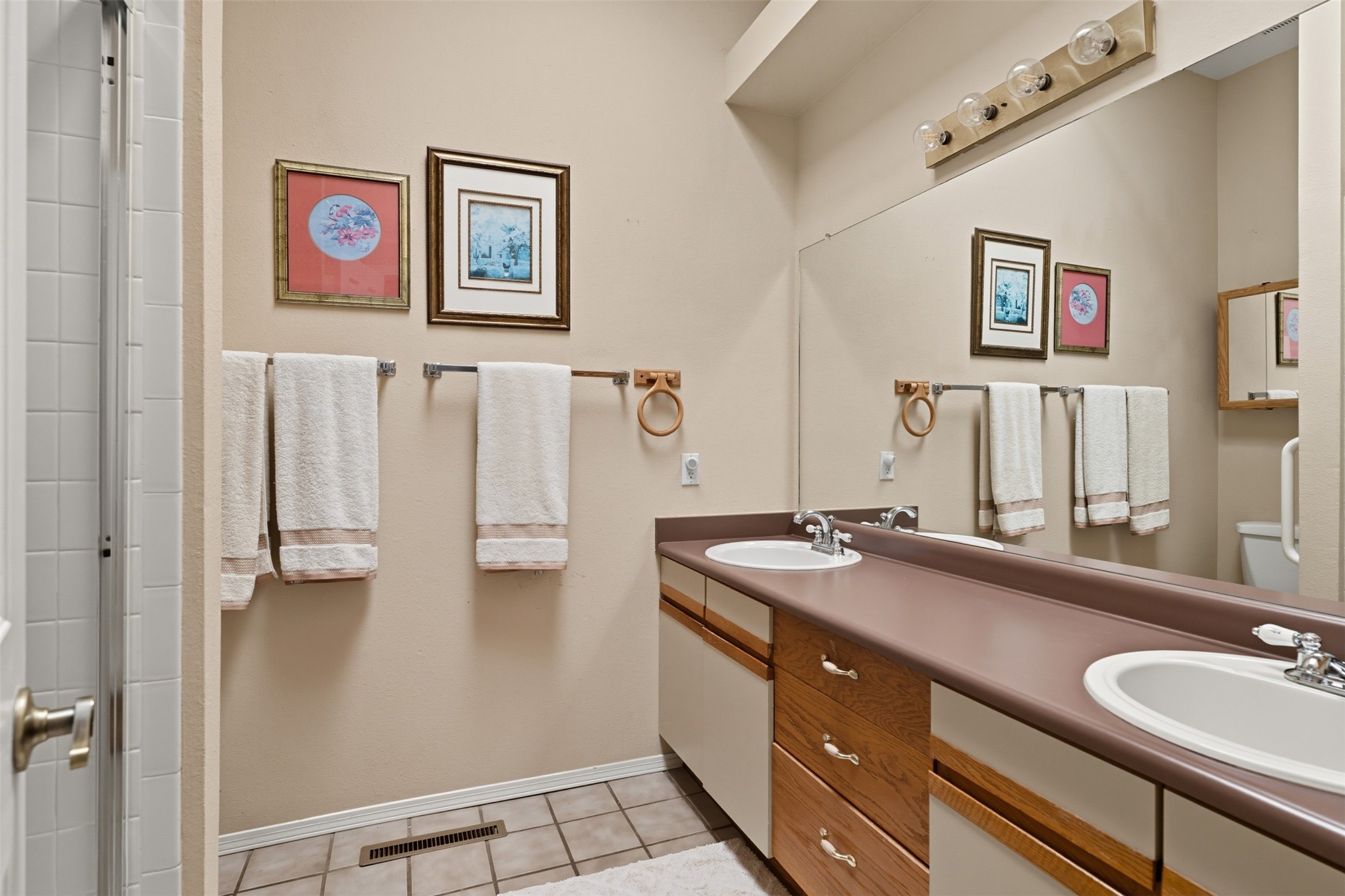 Patio home with two bedrooms and two bathrooms, plus a bonus room off the main living area that could be used as a den or office. The living room has a high ceiling and lots of light. Formal dining area adjacent to the kitchen that leads to the spacious outdoor area with covered portal, patio space and the backyard area which backs up to the Las Estancias Park. The primary bedroom is spacious and the second bedroom is at the opposite side of the hall. An oversized garage includes built-in cabinetry for storage and an additional freezer that conveys with the home. Enjoy outdoor entertaining or quiet evenings in the private gated courtyard. A perfect blend of comfort, functionality, and outdoor living!