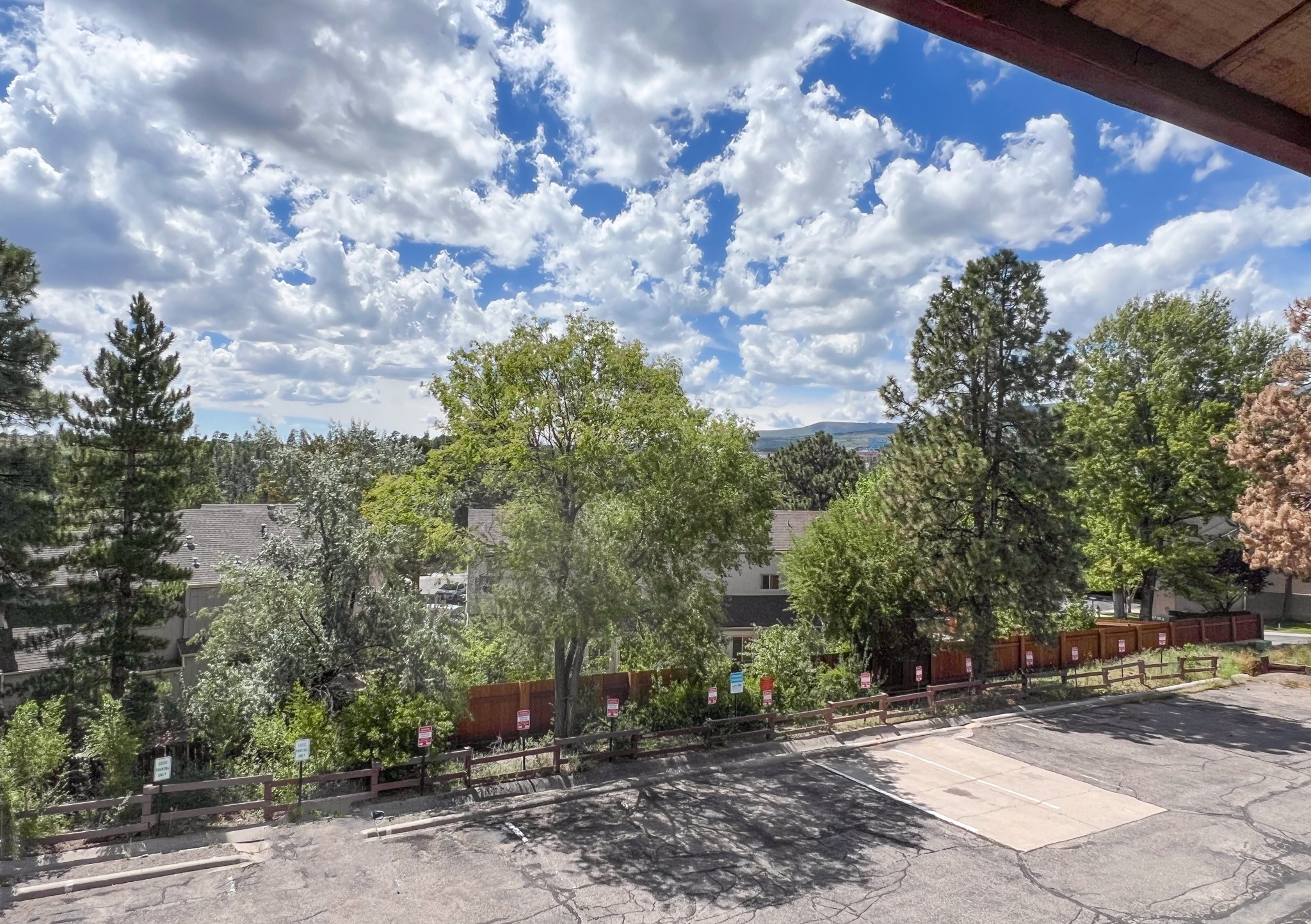 This top-floor condo at Trinity Village is located in the heart of Los Alamos, close to LANL, downtown, Ashley Pond, the library, restaurants, and bus stops. With no one above you, the home offers privacy, views, and natural light. The two-bedroom, two-bath unit has been refreshed with new flooring and paint throughout. The living room is bright and welcoming, featuring a distinctive Preway enamel freestanding fireplace that reflects a mid-century modern style. A sliding door opens to a private south-facing balcony, where you can enjoy peaceful views of Pajarito Mountain. The kitchen includes new countertops, a stainless steel sink, dishwasher, range, and refrigerator (new August 2025). Both bedrooms are generously sized. The primary suite accommodates a king-size bed and offers a large walk-in closet, along with a private bathroom that has a new commode. The second bedroom is adjacent to the full hall bath, and both bathrooms feature new vinyl flooring. Additional conveniences include a designated carport parking space, a private ground-level storage unit, and access to a shared laundry room. Whether you're looking for a full-time residence or an investment opportunity, this condo is a solid choice in a central Los Alamos location. Schedule a private showing today.