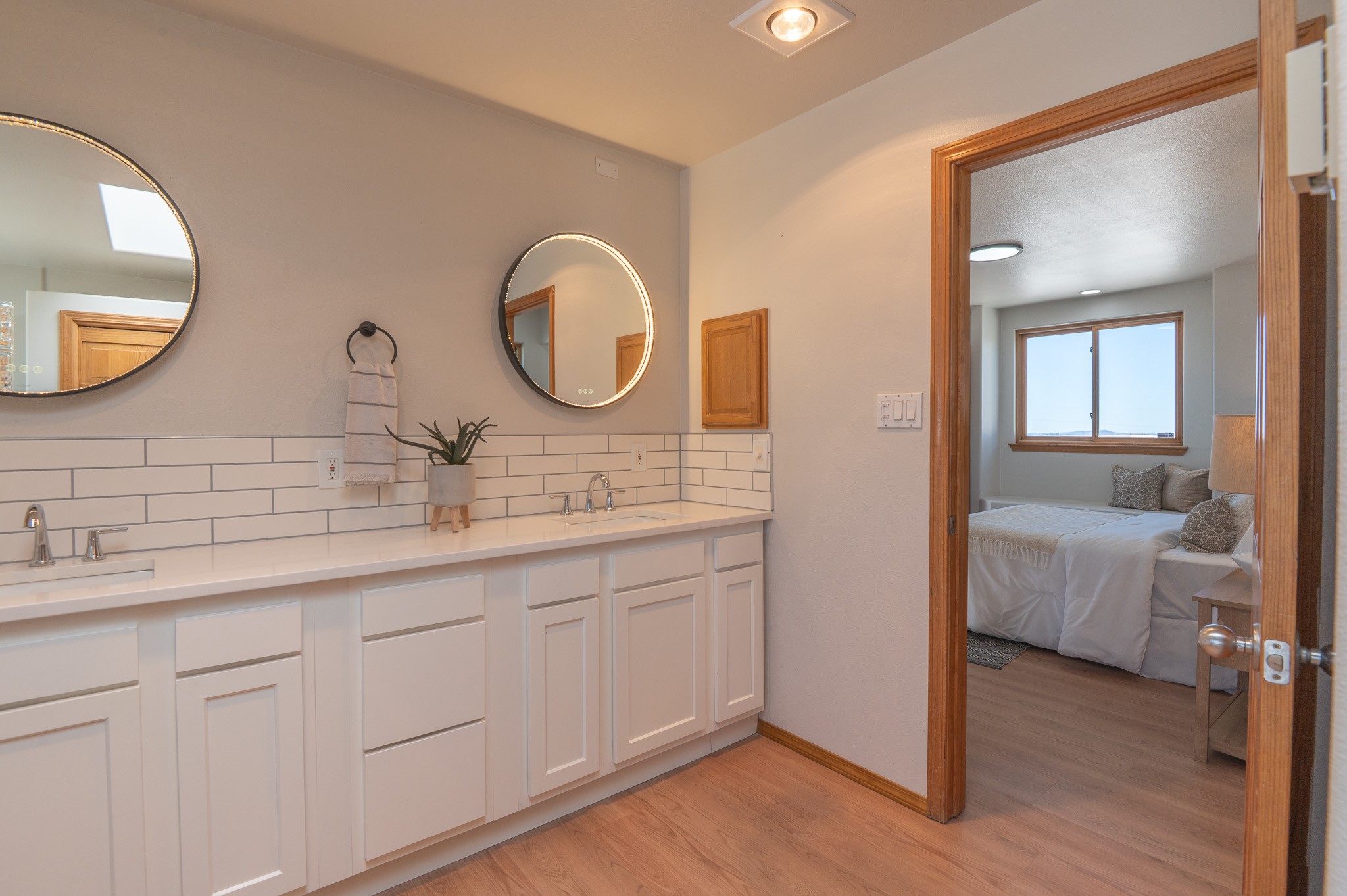 This is the house where you actually live the great Santa Fe life effortlessly. Nestled on a quarter acre of beautiful land, it's been completely updated so you don't spend weekends dealing with a contractor. This generous 2,200 sq ft, adobe-style home just got a serious glow up. We're talking newly installed TPO roof, fresh interior paint, and gorgeous newly installed LVP flooring all done. The place feels legitimately new, running on a newly installed evaporative cooling unit, plus, lovely newly installed light fixtures throughout the entire home. The main level is the ultimate hang out zone, offering three distinct living spaces for any mood. The chef's kitchen (newly installed granite, cabinets, and appliances) anchorsthe flow between the open Living and Dining areas, which feature amazing rounded Vigas and classic ceilings, perfect for hosting. Need a quiet retreat? There's a large great room with soaring ceilings and beautiful fireplace for cozy winter nights. Two flexible bedrooms and a full bath are conveniently located on this main level, along with a huge laundry room with tons of storage and counter space.Upstairs is the Primary Suite, your luxurious private retreat. It features a spacious walk in closet, a newly remodeled and updated spa-worthy en suite bath, and a private deck on this level for morning coffee under the New Mexico sky.The outside is a peaceful haven. Your backyard is perfect for relaxing, under the covered patio.An oversized two-car garage with workspace ensures this home combines classic Santa Fe style with zero compromises on convenience. All the big, annoying projects are done.Come see the home that lets you stop working on your house, and start living in it.