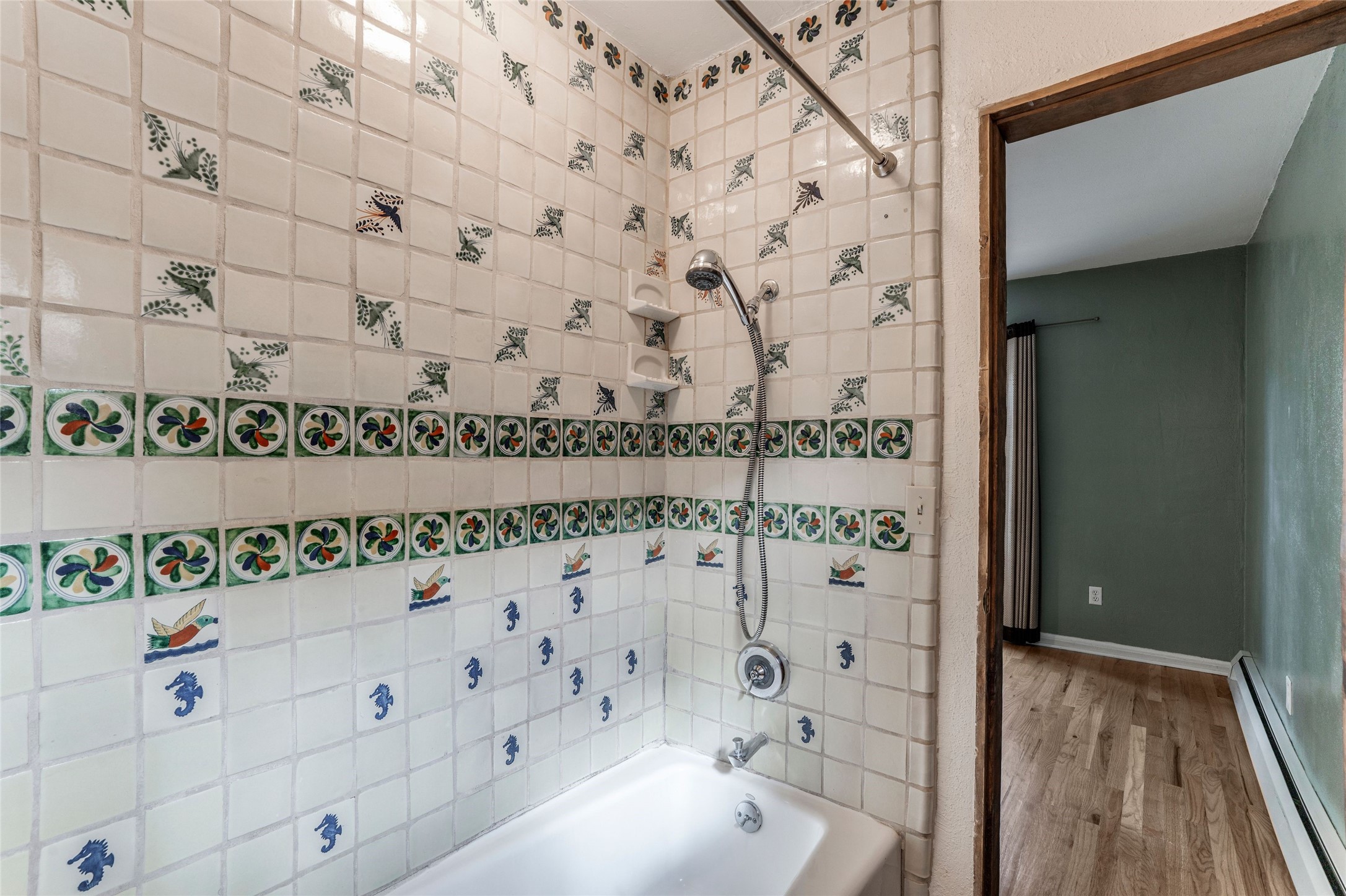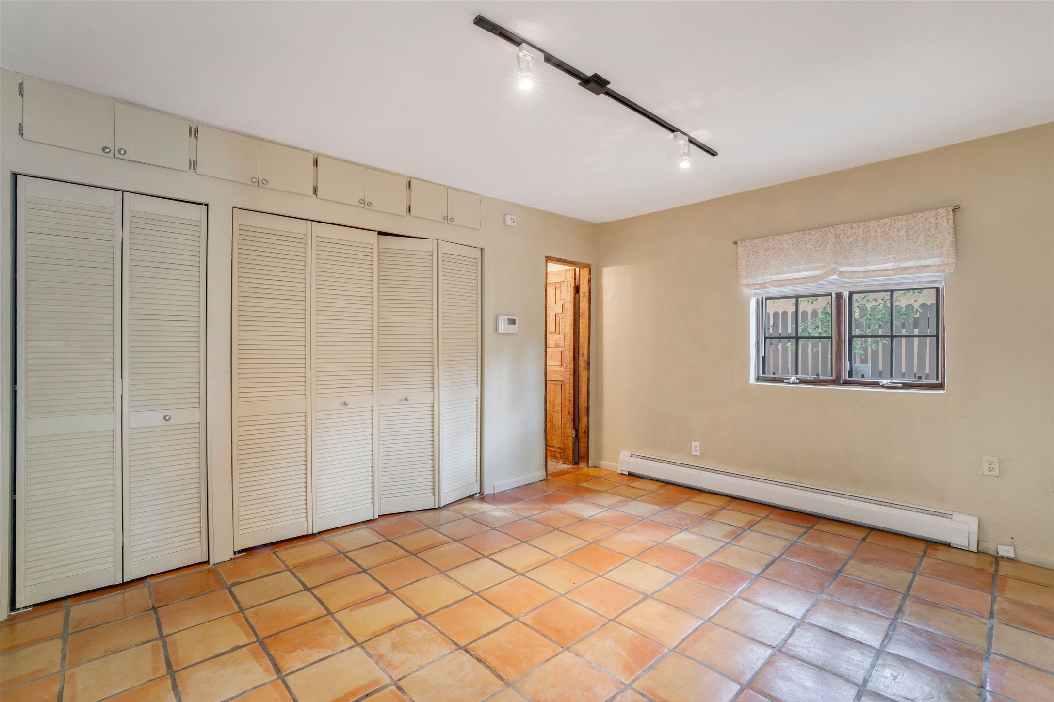 South Capital Gem with Modern Upgrades and Timeless Charm. This beautifully maintained single-level home blends classic Santa Fe character with thoughtful modern updates. The brand-new modern kitchen features sleek finishes and opens seamlessly to a spacious dining area with a classic wood-burning fireplace, creating a warm and inviting atmosphere for gatherings. Natural light fills the home through the charming wood sunroom, leading into a generous living area perfect for relaxing or entertaining. The primary suite offers a private retreat with an additional flex room ideal for an office or reading nook, along with a stylish bath featuring a stone countertop. A comfortable guest bedroom and library or media room share a beautifully updated three-quarter bath. Outside, enjoy the shady front lawn, covered porch, and private backyard surrounded by mature fruit trees and lush vegetation, offering both privacy and a tranquil garden setting. Solar panels provide energy efficiency and long-term savings. Located in one of Santa Fe's most desirable neighborhoods, this home offers peace and quiet while being just minutes from the Plaza, restaurants, and galleries. Classic style meets modern living in this South Capital treasure.