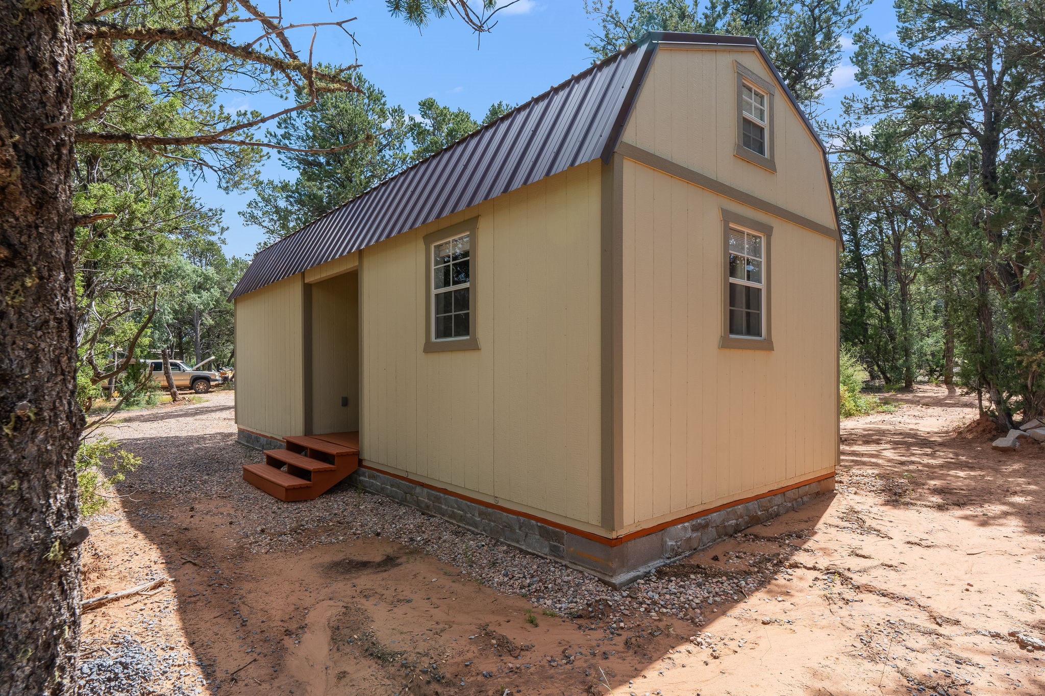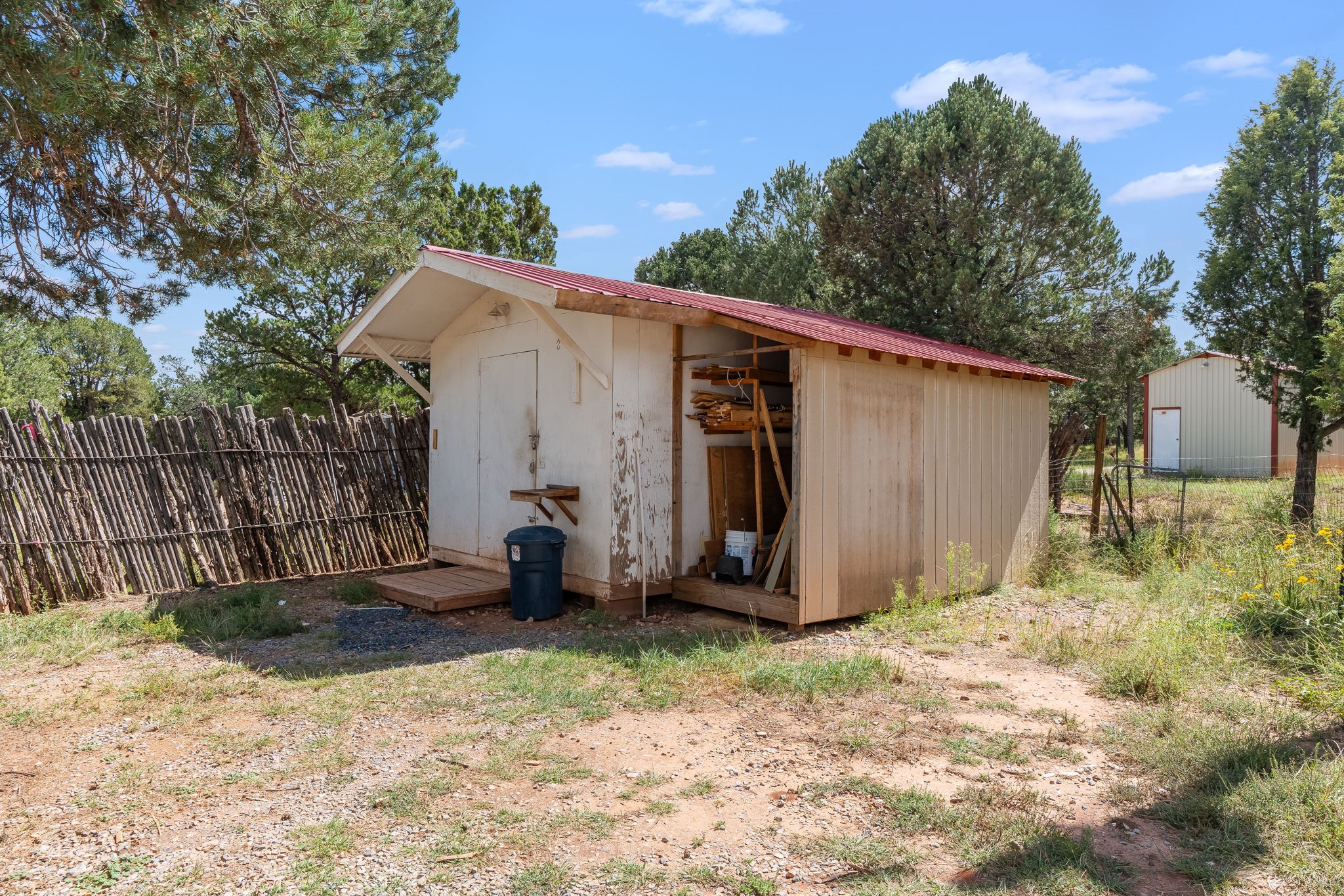 Escape to your own private mountain haven with this charming property tucked away on 4 wooded acres in Rowe, NM. Located just 30 minutes from Santa Fe, 40 minutes from Las Vegas, and less than 15 minutes to Pecos, this property is ideally situated for both convenience and adventure. Surrounded by pinon and other native trees and local wildlife, this retreat offers peace, seclusion, and plenty of room to grow. Roughly 1/3 of the property is fenced in, making an ideal dog run.The main home is a cozy 2-bedroom manufactured house with an expanded living area, creating a warm and inviting space to relax after a day outdoors. A separate guest casita provides extra room for visitors, hobbies, or even rental potential. The casita also features granite countertops,stainless steel appliances, and engineered hardwood floors.In addition, three versatile sheds offer ample storage for tools, equipment, or outdoor gear.The surrounding area is a paradise for outdoor enthusiasts--whether you enjoy hunting, fishing, camping, hiking, or simply taking in the fresh mountain air, you'll find it all right at your doorstep.If you've been looking for a serene getaway with space to expand, this Rowe retreat is ready to welcome you home.