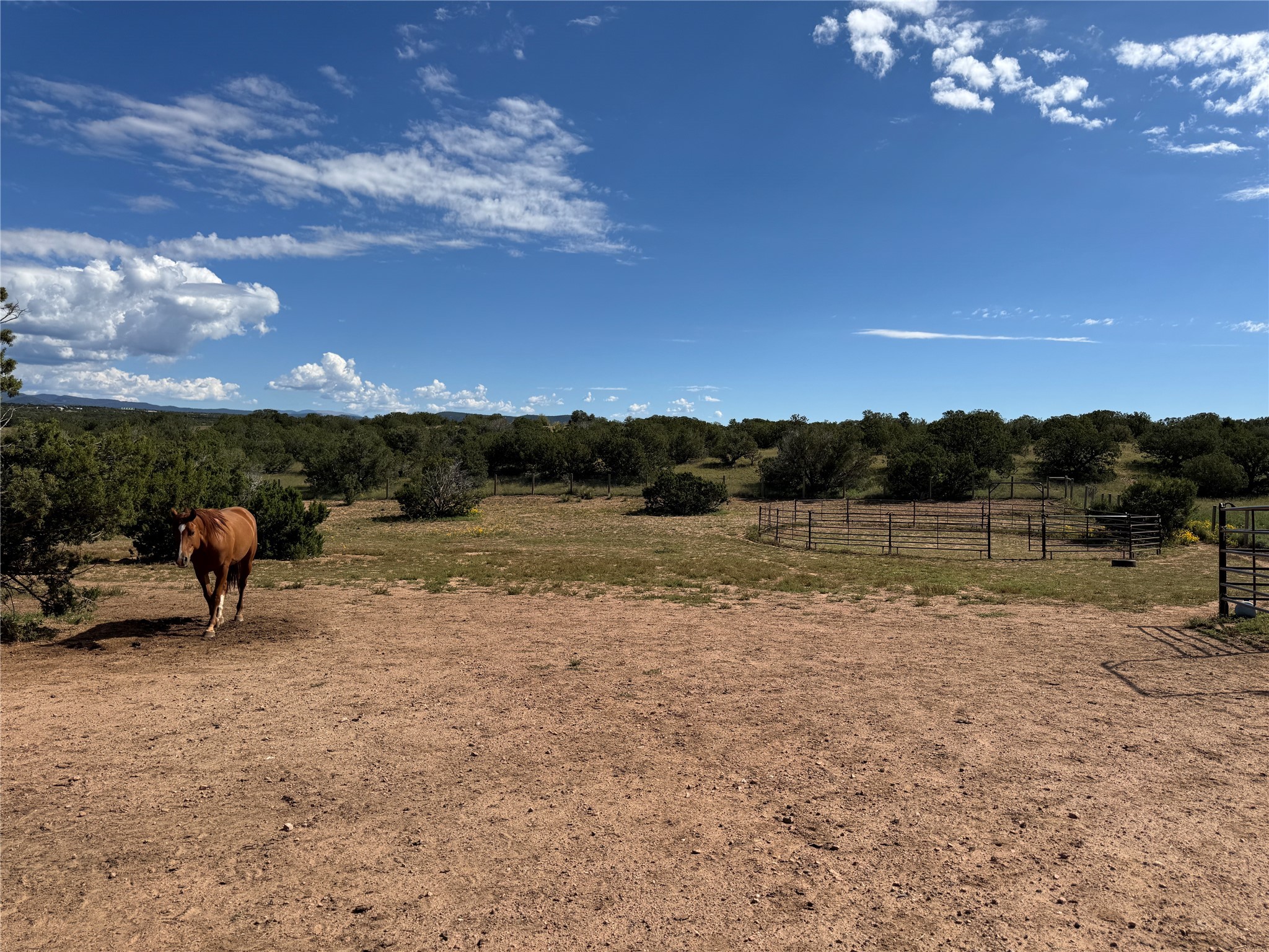 GET READY TO FALL IN LOVE WITH THIS DREAMY MODERN RANCH ON 25 ACRES:21 Cattle Drive is the kind of place that feels like a unicorn - rare, enchanting, and totally magical. This home has it all: space, style, and some seriously stunning views. It's just a short drive from downtown Santa Fe, but feels like your own private sanctuary.BIG, BRIGHT, OPEN: With over 3,000 sq. ft., this home gives you plenty of room to spread out. You've got 2 spacious ensuite bedrooms and 1 flex room currently being used as an additional bedroom. Perfect for hosting family and friends.DREAMY LIVING SPACES: The open living area has it's own special vibe, with natural light pouring in, gorgeous, modern, polished walls, and wood beams that give it that true Santa Fe charm. Plus, the kiva fireplace is perfect for cozy nights in.KITCHEN GOALS: If you love to cook or entertain, this Chef's Kitchen will make you feel like a pro. High-end stainless steel appliances, tons of counter space, and epic mountain views - it's all you need.OUTDOOR OASIS: Step outside, and you're in an enchanting portal, with stunning mountain views and beautiful landscaping that feels like a little piece of heaven.ENERGY EFFICIENT with GEO THERMAL COMFORT: This home is not only eco-friendly but offers year-round comfort with a Geo-Thermal heating and cooling system. The system is super efficient, ensuring your home stays perfectly cozy in the winter and cool in the summer, all while keeping energy costs low. (see PDF in MLS documents for more info)EQUESTRIAN DREAM: For horse lovers, this property includes a 3-stall horse barn complete with a wash bay and hay barn with storage capacity of up to 350 bales. This property is a perfect fit for anyone looking to keep their equine companions at home. The barn is well-maintained and ready to house your horses in comfort, to live their best lives in this beautiful setting.