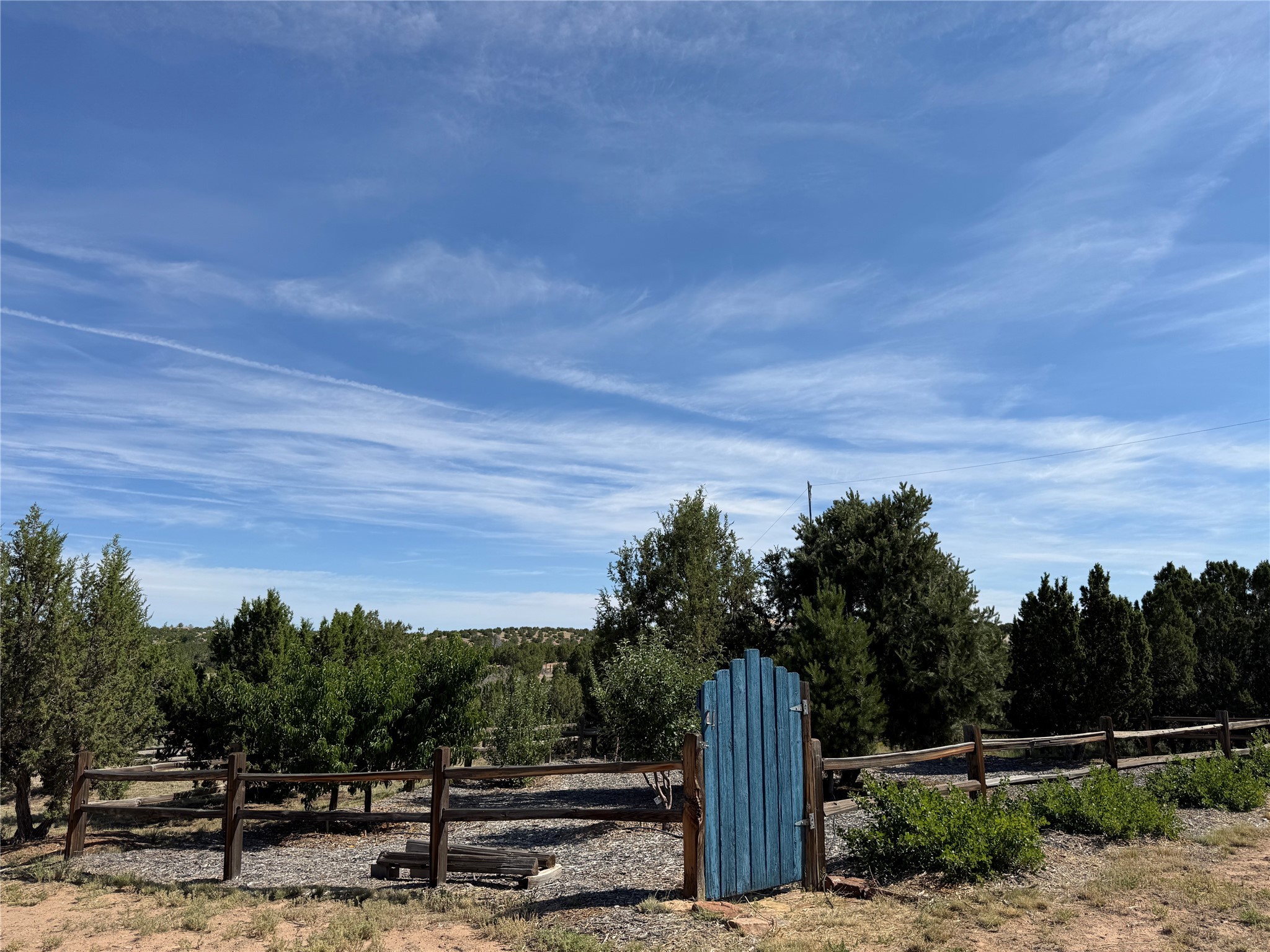 Come discover the beauty of 67 Vallecito Road. This dreamy Santa Fe home is on 3.5 acres with great mountain views only 10 minutes outside of Santa Fe. The home has 3 bedrooms plus a flex room that could be used as an office or additional bedroom with a closet and wood burning kiva fireplace. Other custom features include: Radiant in-floor heating, metal clad insulated wood windows, Italian Tile and Berber Carpet, custom crafted wood interior doors, 3 brick paved portals, viga ceilings with herringbone pine decking and latillas, and 6 custom designed masonry fireplaces. Check out the exquisite chef's kitchen with a large kitchen island, Wolf gas stove, large refrigerator with built-in wine cooler. The interior doorways with scalloped carved archways, and thick recessed wall and nichos give a warm and unique feel to this Northern New Mexico home. The living room and dining rooms flow together nicely and both have doors leading to the outside portals that wrap around the back of the house. There is a dreamy walled patio with a private garden off the dining room that includes a goldfish pond with waterfall, perfect for cozying up with a good book or stargazing at night. The main bedroom also features a fireplace, large soaking tub with mountain views and it's own private portal with a peaceful water feature perfect for relaxing with that first cup of coffee in the morning. An 1800 gallon cistern system catches the rain water draining off the roof, providing water for the irrigation system throughout the yard. E/V charger in garage. Come see and experience this peaceful, high desert oasis with some of the most beautiful sunsets in the Southwest!