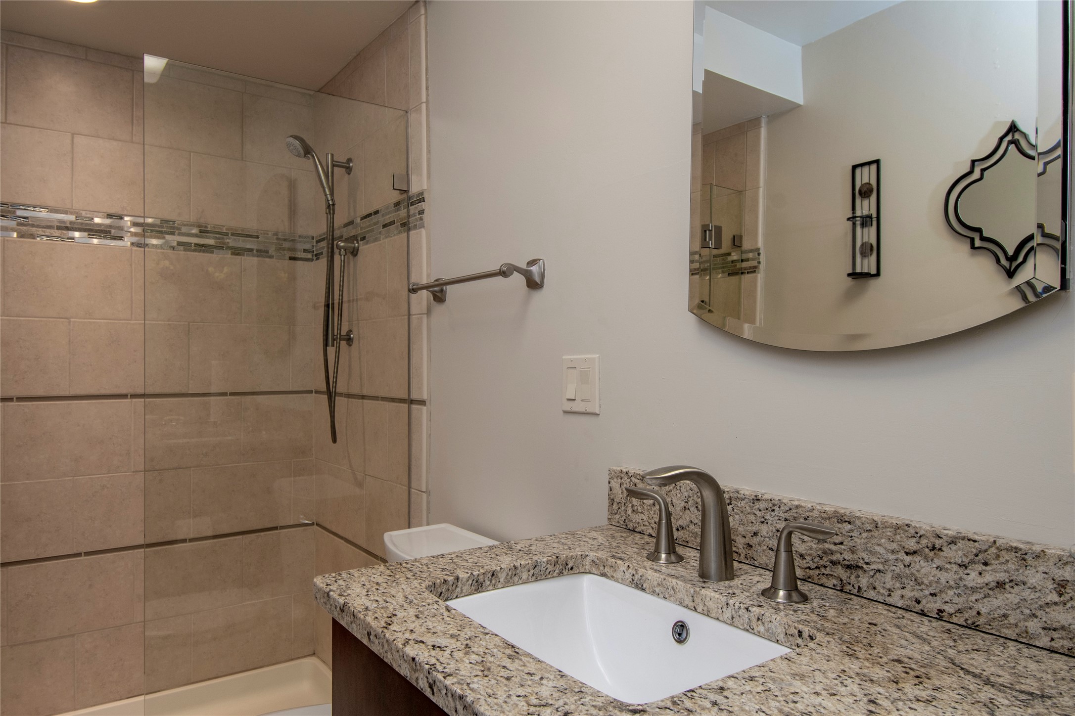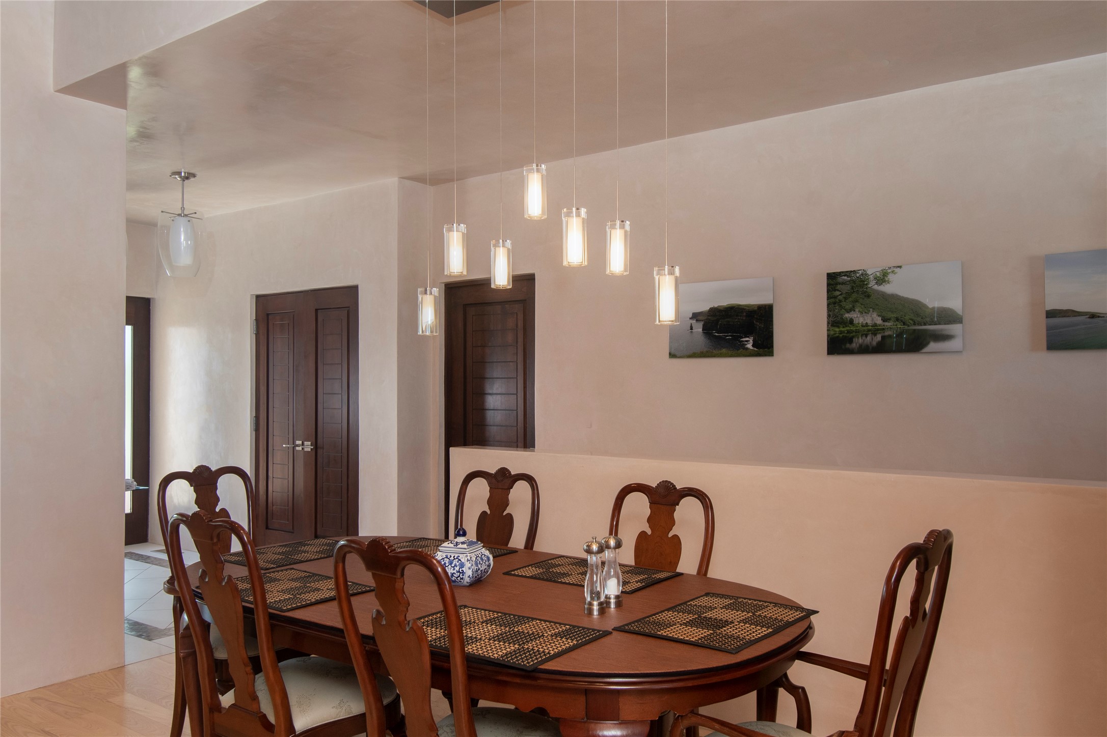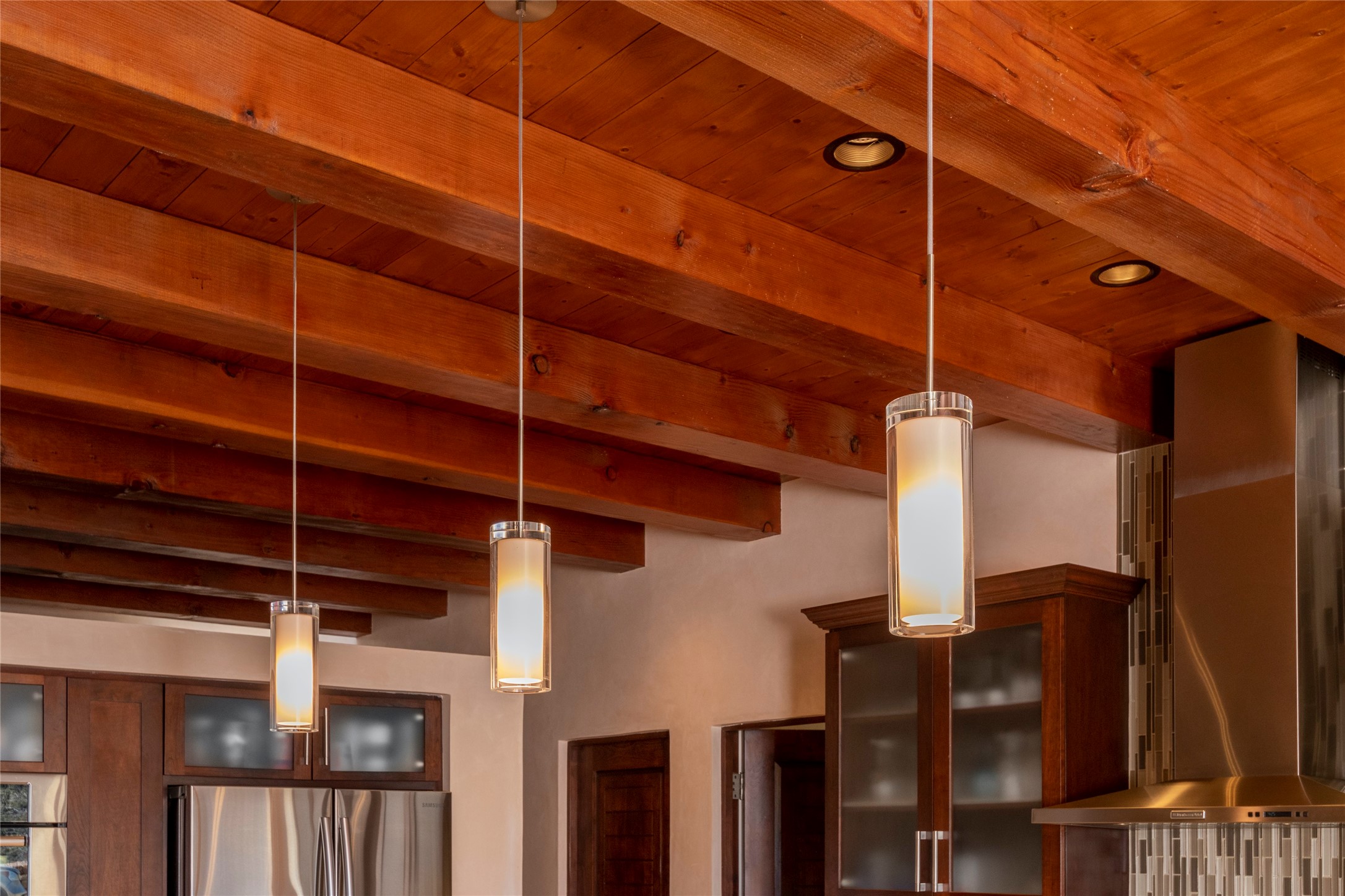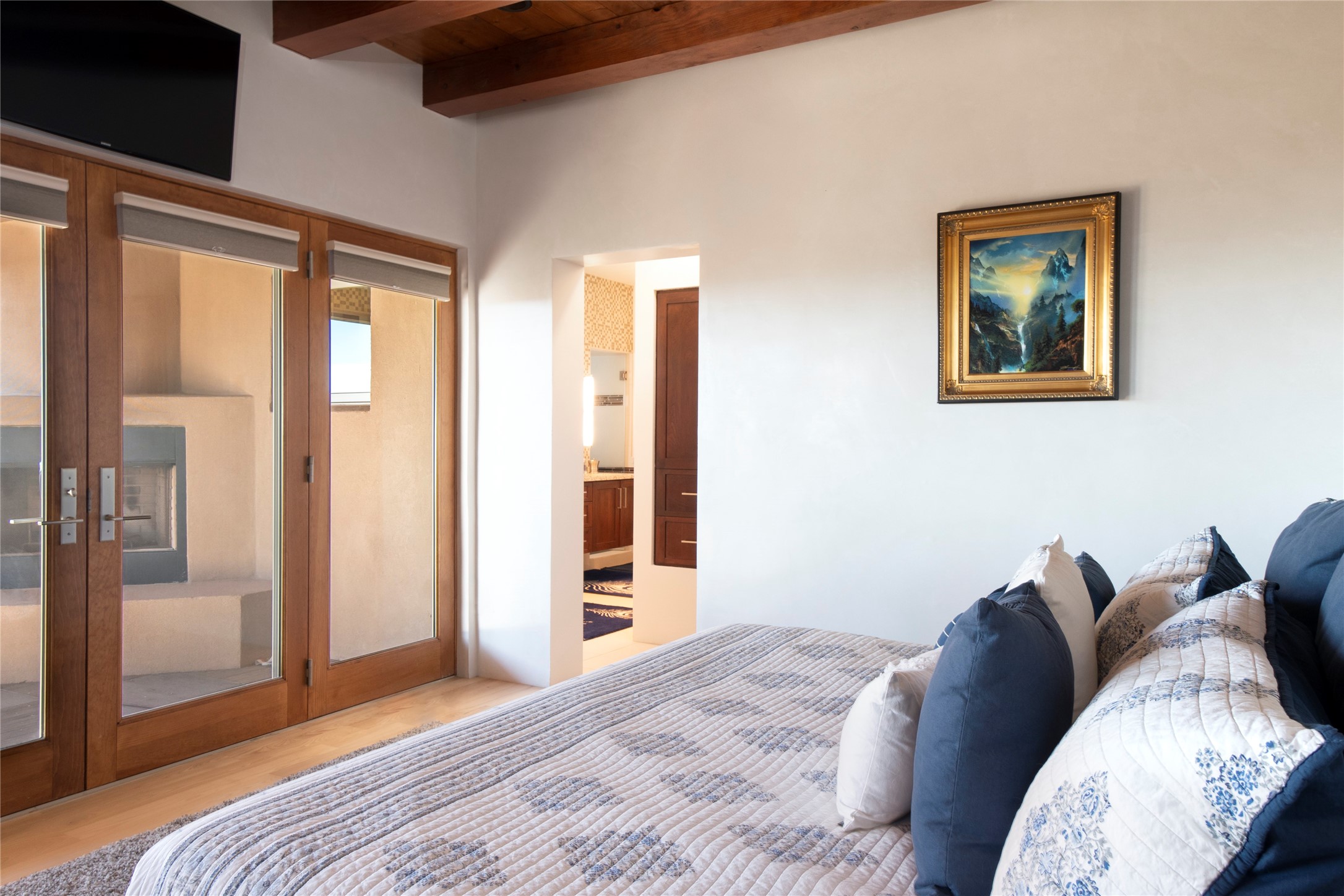 This Michael Bauer custom designed, contemporary, two-story home was built by long time Santa Fe builder, Gary Lincoln, for himself. Known for quality construction and excellent designs, the best finishes and appliances were used in building this stunning home. The 3520 sq ft, open floor plan home is designed for comfortable, easy living and sited perfectly on 2+ acres to take in the breathtaking panoramic mountain views. Striking entry doors lead into the great room where a grand fireplace is a focal point, along with oversized windows that look onto a rooftop deck with fireplace and spectacular mountain views. The kitchen has wall-to-wall windows over the granite countertops on two sides so the chef will never be without a lovely view. A good-sized island with sink, and a walk-in pantry are conveniently located and offer plenty of storage. The appliances are top notch and include a double oven. The portal off the kitchen is the perfect for outdoor entertaining. Adjacent to the kitchen is an office and the master suite with its walk-in closet, beautiful bathroom and private portal with a fireplace. On the other side of the great room are two guest bedrooms each with outside entrances, and a laundry room. The lower level has a spacious den, bathroom, gym, huge storage room, and access to the 3-car garage. Just minutes to the Plaza in Santa Fe, and located in a small, highly desirable gated community, this home has easy access to walking and biking trails.