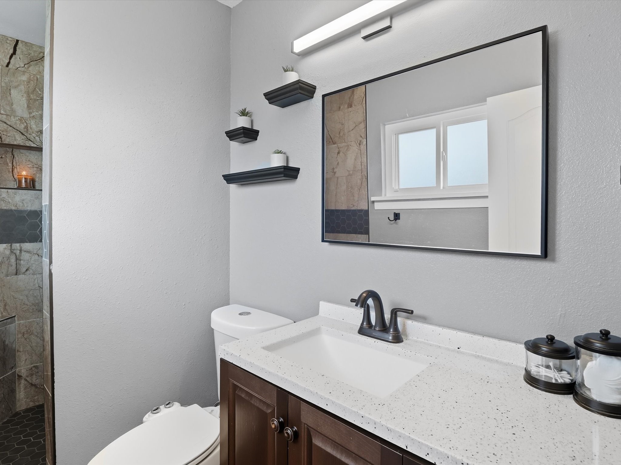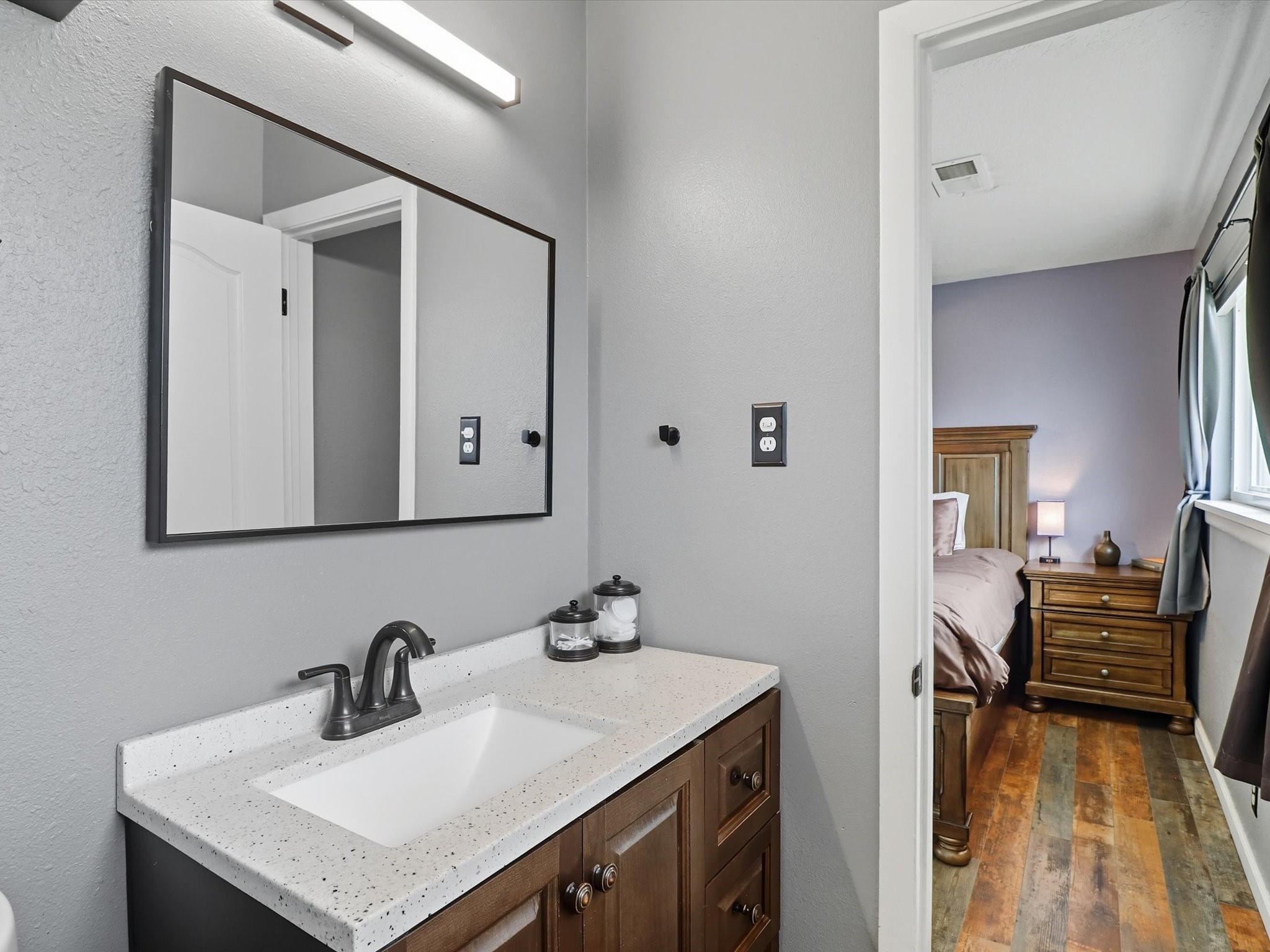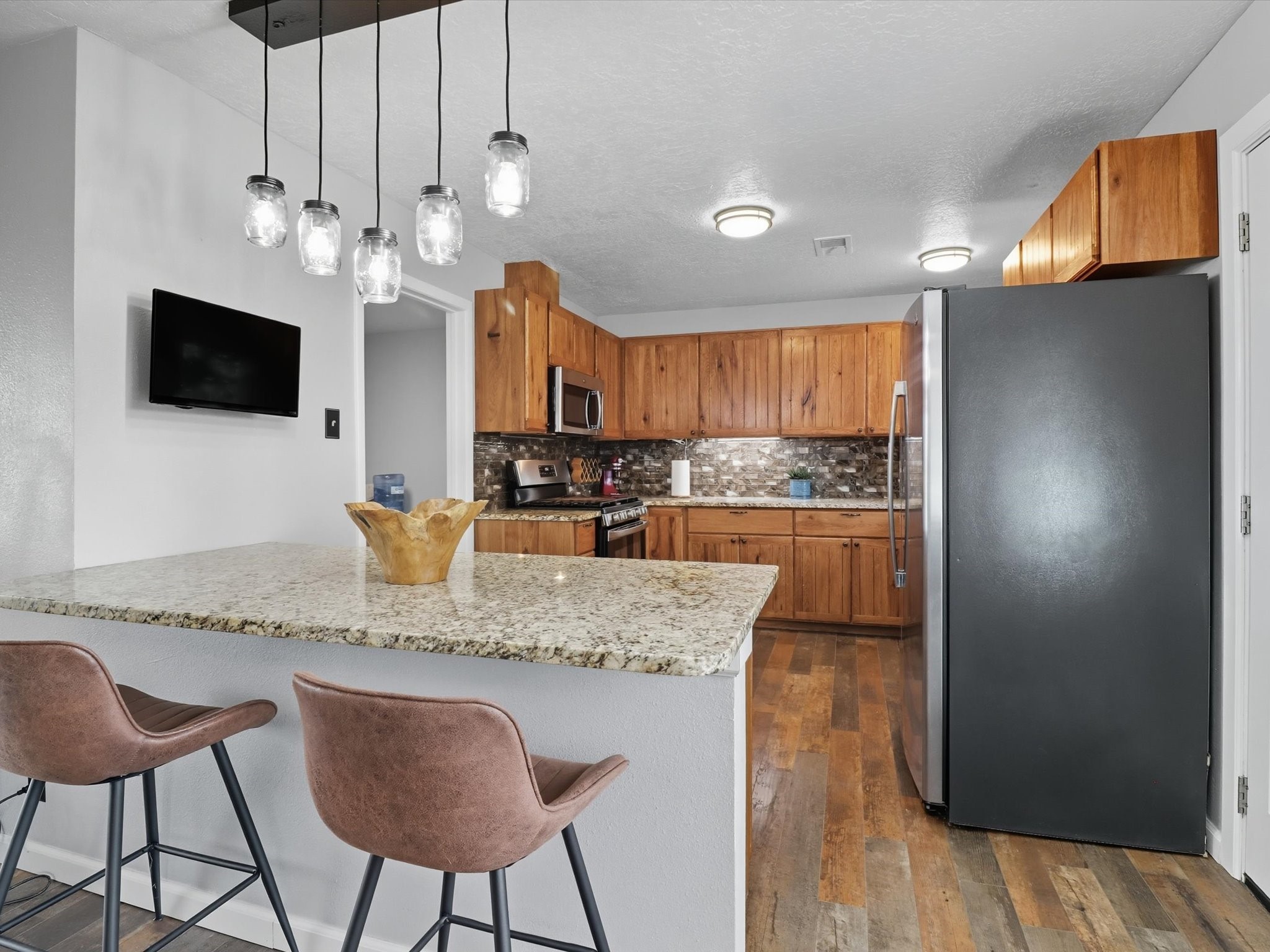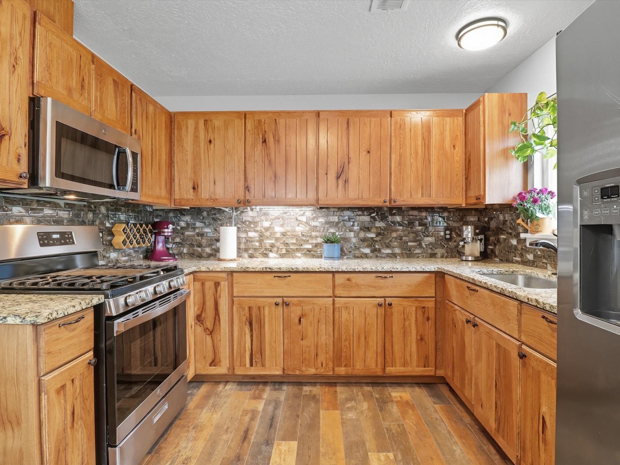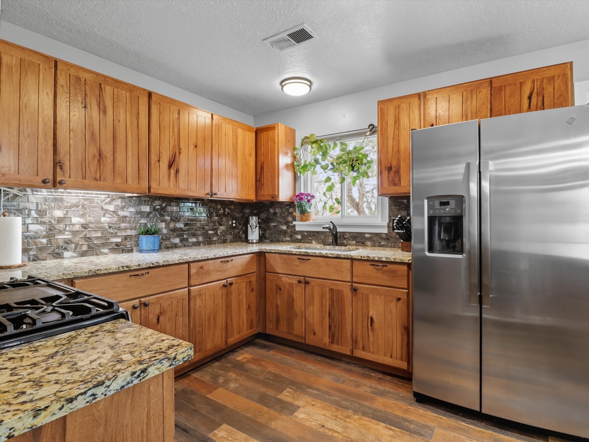 Discover peaceful, single-level living on a sprawling 3-acre lot in Edgewood, where modern luxury meets tranquil country charm. The heart of this home is the fully remodeled kitchen, featuring custom-crafted cabinetry, sleek granite countertops, and new luxury vinyl flooring that flows throughout the home. In 2021 new windows were put in the home, including a large living room window that frames a spectacular view of the mountains and surrounding landscape. The property includes a fully fenced acre ideal for pets or outdoor recreation, leaving 2 acres for horses or recreational vehicles. The spacious, detached garage offers ample room for vehicles, storage, or a workshop, catering to any hobbyist. No HOA offers unmatched freedom and flexibility. This property is full of upgrades and ready for you to move in.
