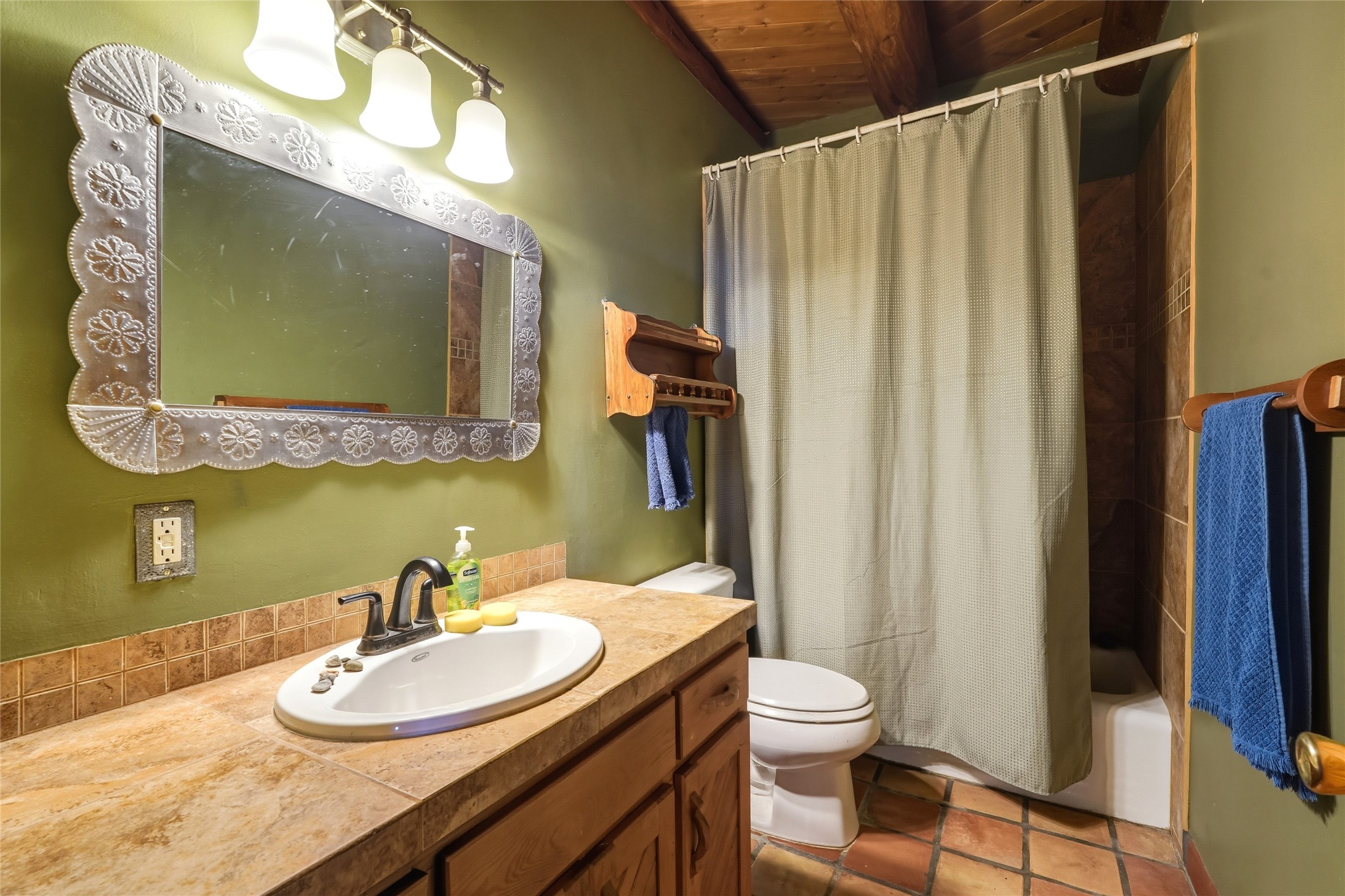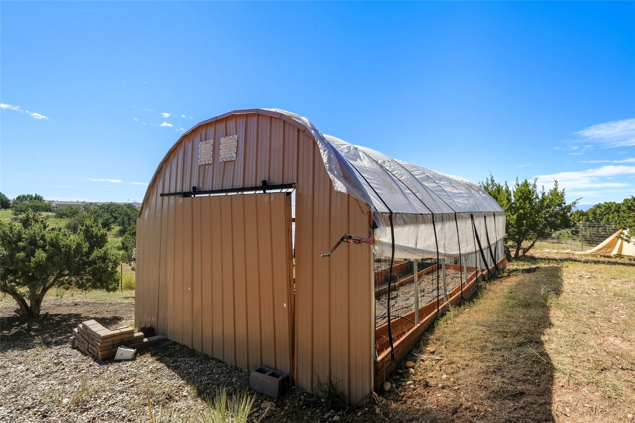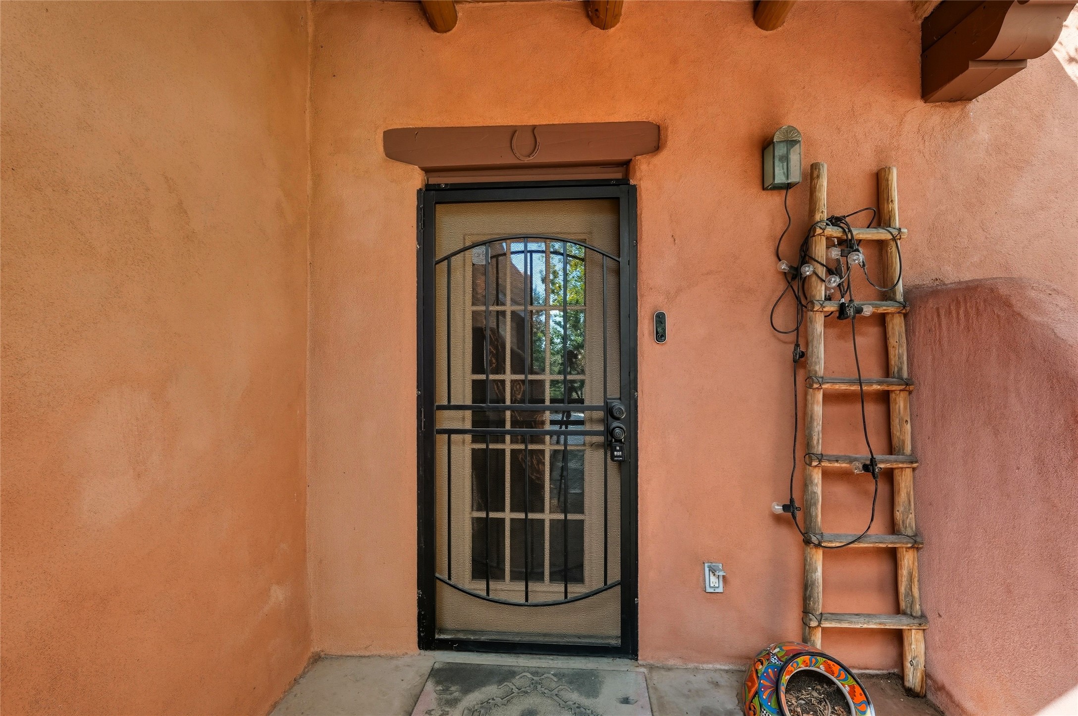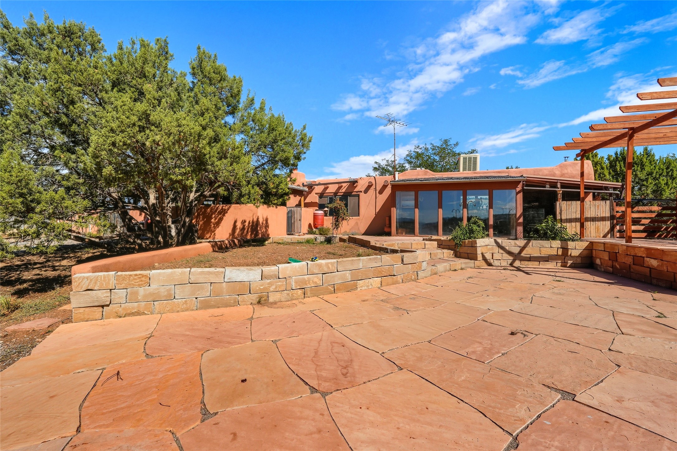 Experience classic Santa Fe charm in this Pueblo-style home nestled on 2.5 acres with sweeping views. The 2-bedroom, 2-bathroom main residence spans 2,134 sq. ft. and showcases authentic Southwestern details, including vigas, a cozy kiva fireplace, and inviting living spaces designed for comfort and style. A spacious flagstone patio extends the living outdoors, offering the perfect spot for entertaining or enjoying peaceful sunsets. Gardeners will appreciate the on-site greenhouse, ideal for year-round cultivation. The property also features a 500 sq. ft. guest house with its own kitchen, bathroom, and two flexible rooms that are perfect for hosting visitors, creating an art studio, or rental. This retreat offers the rare combination of privacy, natural beauty, and convenient access to downtown Santa Fe amenities.