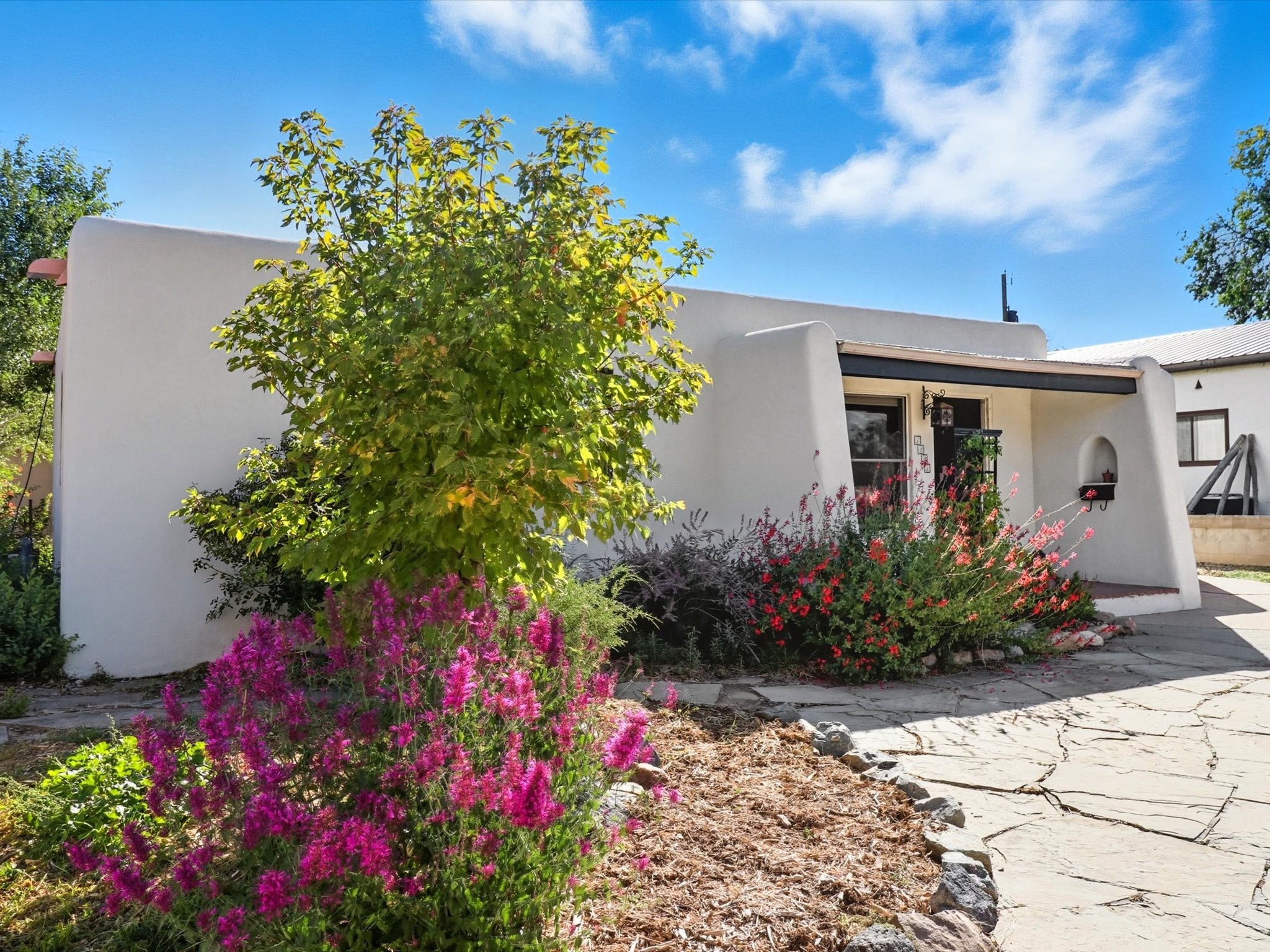 Located in the desirable Casa Alegre neighborhood, this cozy single-level 2-bedroom, 1-bathroom home seamlessly blends classic Santa Fe style with modern updates, including a recent electrical upgrade and timeless wood floors throughout. An inviting and spacious sunroom offers a light-filled retreat, while the converted one-car garage provides flexible bonus space, perfect for a home office, studio, or extra storage. Step outside to a private backyard featuring a beautiful gazebo, ideal for outdoor entertaining and relaxation, complemented by a low-maintenance flagstone front yard that adds to its undeniable curb appeal.