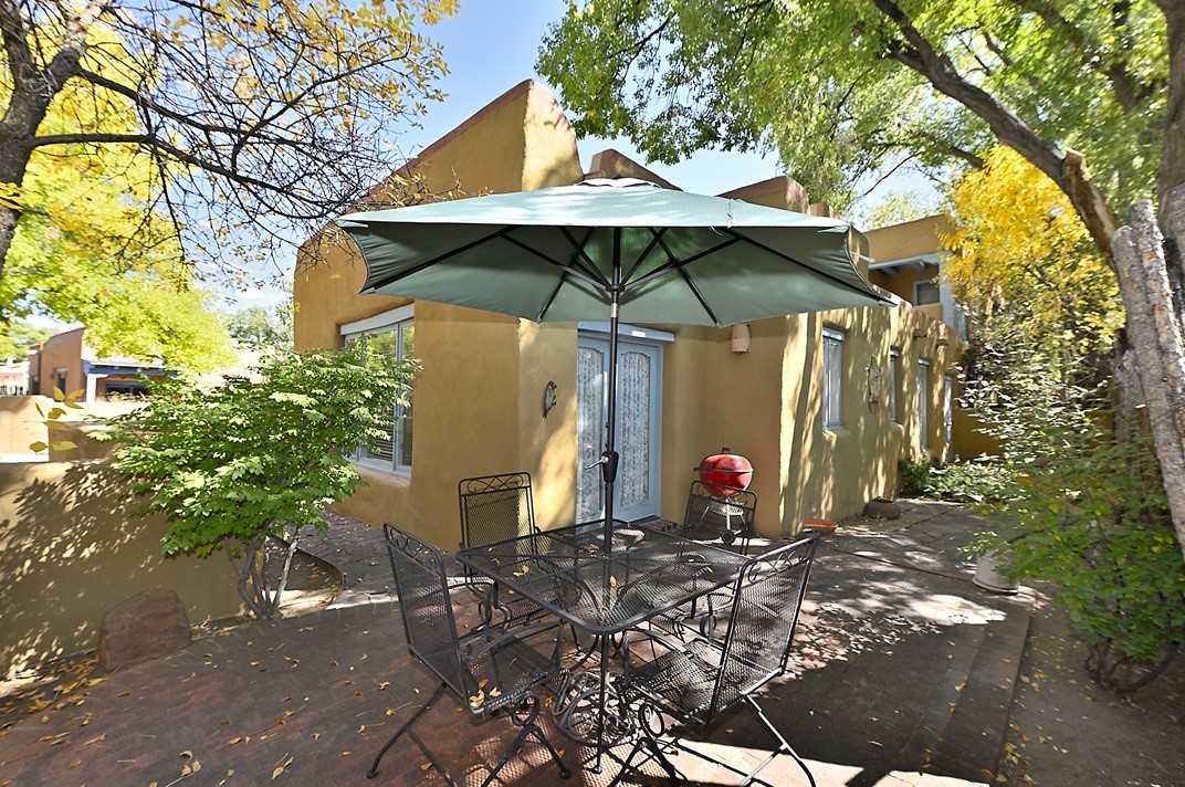This Charming authentic Adobe is a "Doll House"! 2 bedrooms, 2 baths, new roof, new hot water on demand. It comes furnished (except for Owner's Art) and is ready to use as a home or Vacation Rental! Excellent location, walk to everything in downtown Santa Fe! La Brisas is a highly desirable Condo complex that is in high demand for vacation rentals.
