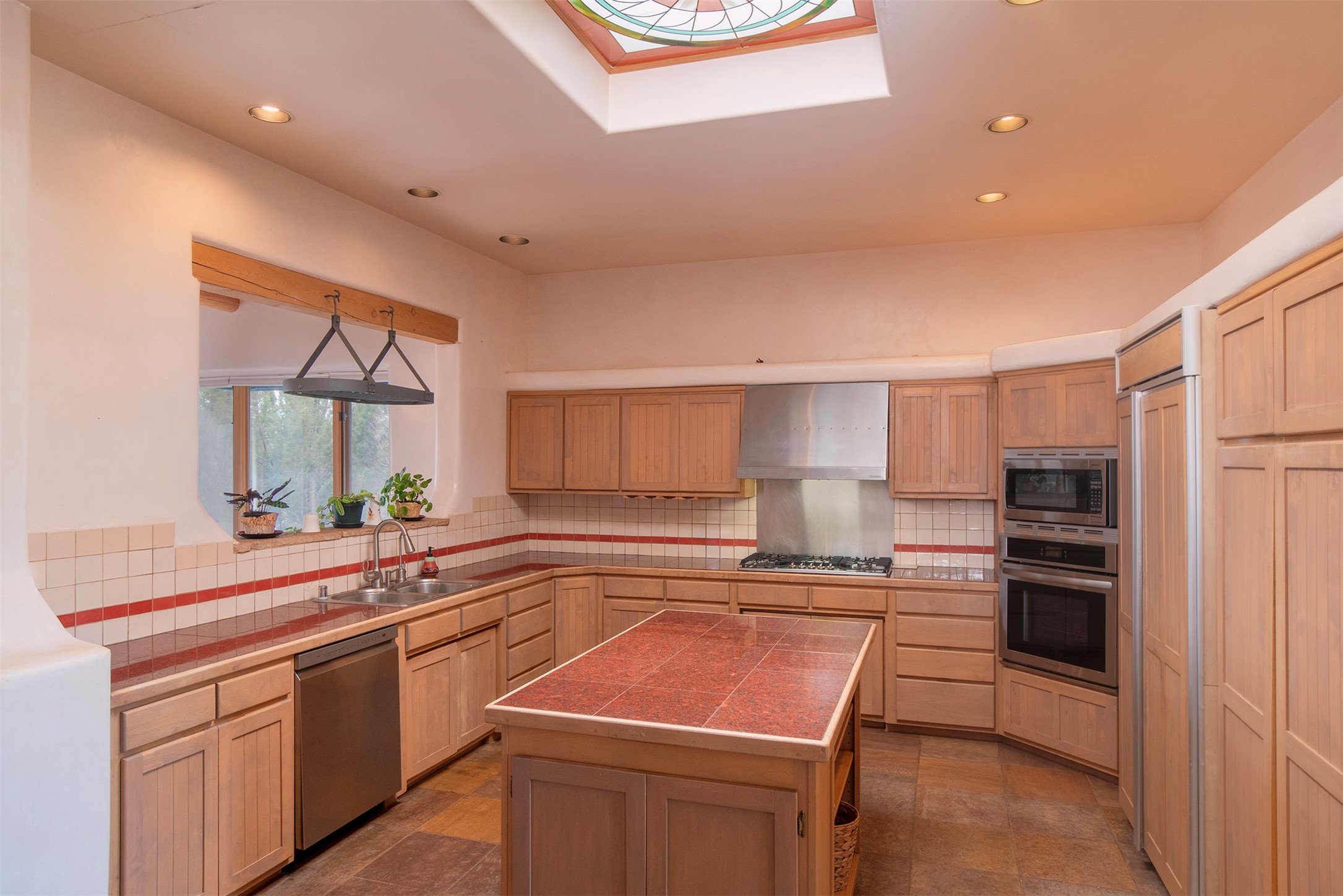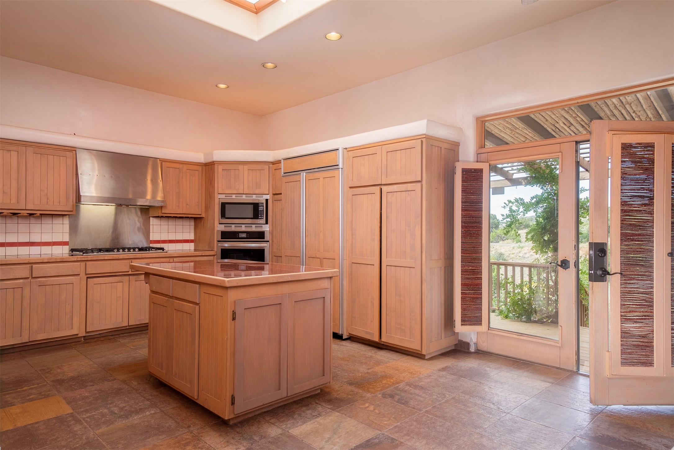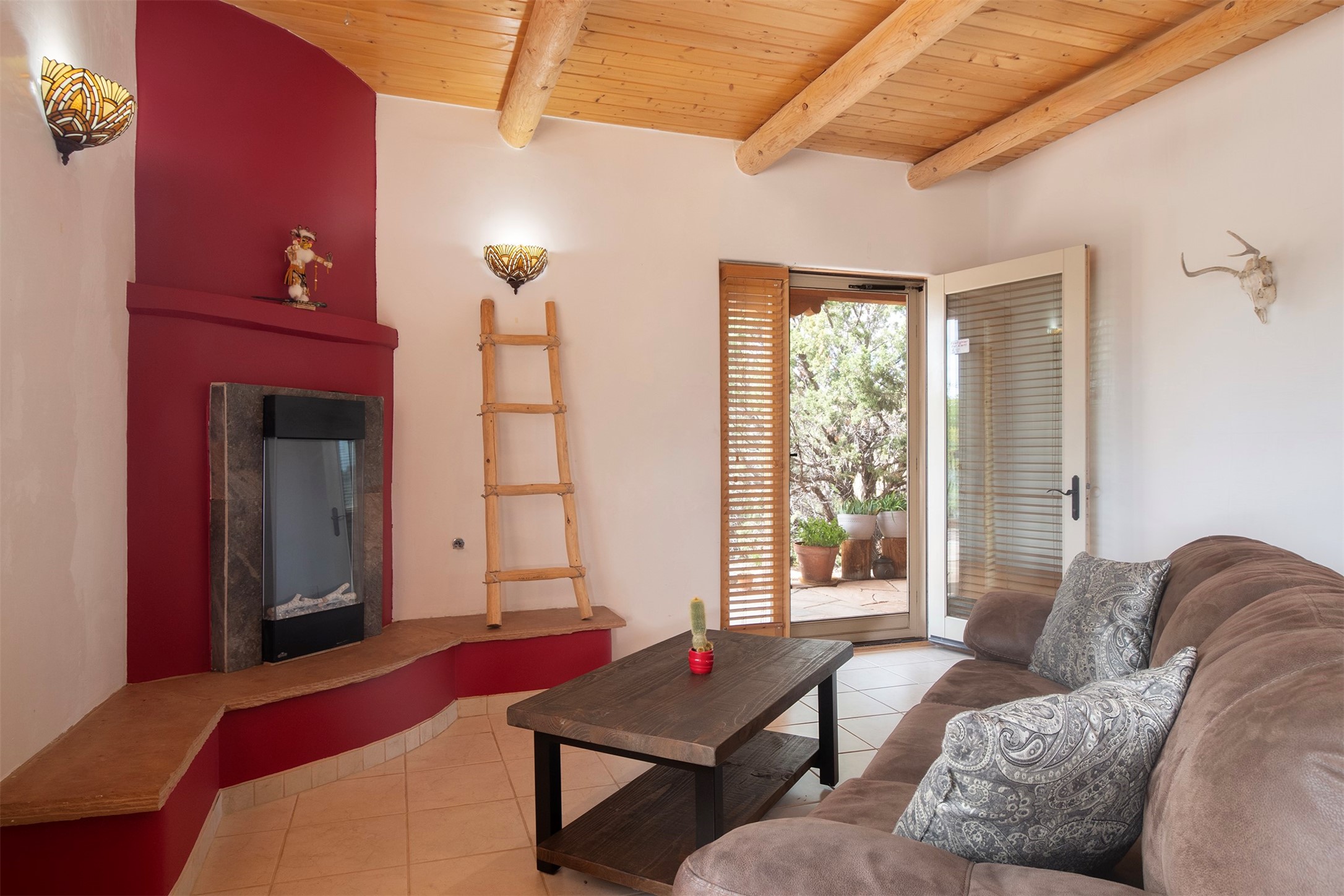 Set on 15 private acres with commanding forever views, this exceptional property combines the best of rural living with a strong sense of community & a lifestyle that embraces the outdoors.The main home offers nearly 3,500 square feet of living space, complemented by an attached 1,100 square foot ADU/guest house. Perfect for independent living, extended family, private guest quarters, a home office, or potential rental income, the guest house provides both flexibility & privacy.Inside the main residence, classic Santa Fe charm shines throughout. A spacious chef's kitchen is the heart of the home, while high ceilings with cedar latillas, hard trowel plaster walls, and multiple kiva fireplaces add warmth and character. A pellet stove ensures cozy comfort.Outdoor living takes center stage in every direction. Whether gathering around the kiva fireplace, relaxing on the patios, or entertaining on the elevated margarita deck with 360-degree sunset views, this property was designed to connect with nature & wide-open skies.Adding to its appeal, the home is equipped with green energy features including a Tesla Powerwall and a solar array, ensuring minimal electric costs while supporting sustainable living.This rare offering blends timeless Southwestern design with modern energy efficiency and endless opportunities for living, working, and entertaining--truly Rancho Alegre country living at its best.