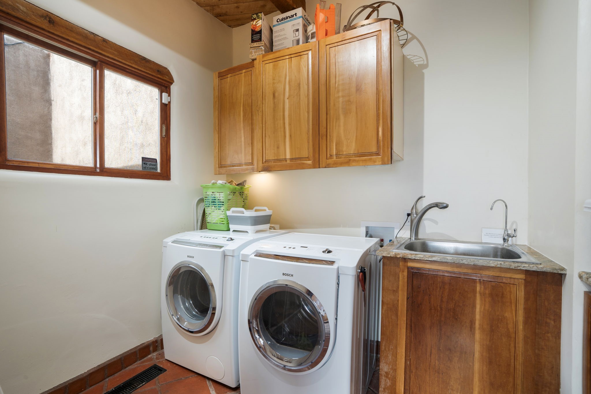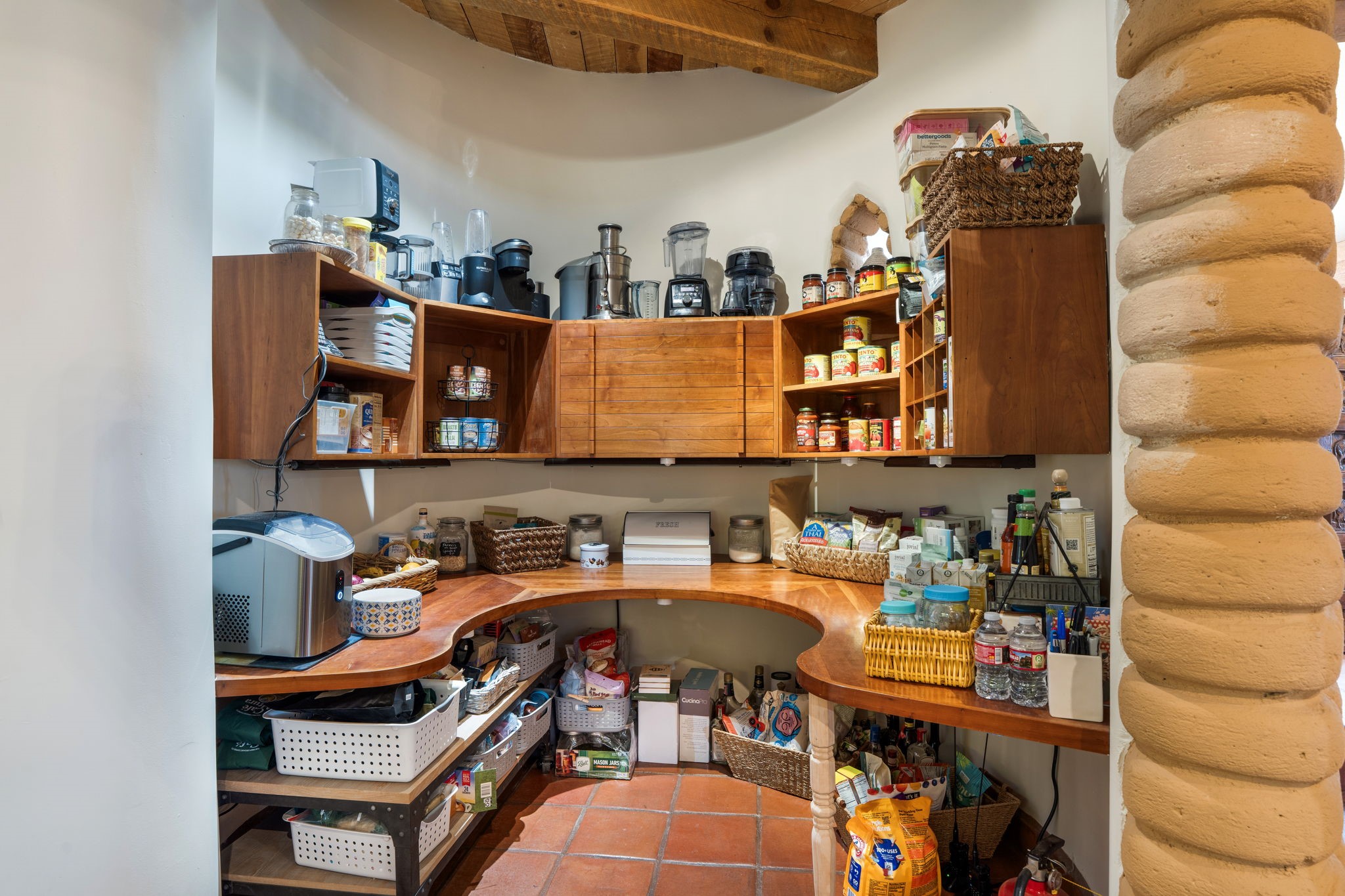 Nestled on 78 pristine private acres spread across four deeded lots, this extraordinary estate offers a blend of seclusion, artistry and timeless Southwestern charm just 25 minutes from downtown Santa Fe.The 4,400 square foot adobe home is a masterpiece of craftsmanship and comfort. Solid adobe construction provides natural insulation that keeps interiors warm in winter and cool in summer. Inside, four ensuite bedrooms and 4.5 baths offer comfort and privacy while 30 hand carved doors and accents from Seret and Sons lend a one of a kind artistic touch throughout the home.The great room is the heart of this residence anchored by a dramatic stone fireplace, high viga ceilings and a custom antler chandelier that adds rustic elegance. French doors open to a spacious front portal framing sweeping views of the Sangre de Cristo Mountains.A graceful circular staircase leads to the upper level where two ensuite bedrooms and a balcony overlooking the great room create an inviting sense of openness and connection. The kitchen is both functional and charming with granite counters, abundant cabinetry and a cozy breakfast nook warmed by its own fireplace. Saltillo tile floors flow throughout the main level while hardwood floors add warmth upstairs.The primary suite is a private retreat with panoramic mountain views and a luxurious bath with a jetted tub, tiled shower and granite counters.Step outside to a fenced backyard and patio perfect for watching the weather in the distance, peaceful wildlife and star filled nights. Additional features include solar hot water, four fireplaces, a two car garage, two sheds and a chicken coop with eight hens that provide fresh eggs daily.This property is more than a home. It is a work of art set deep in nature offering tranquility, authenticity and soul. Experience a place where art, architecture and landscape come together in harmony.