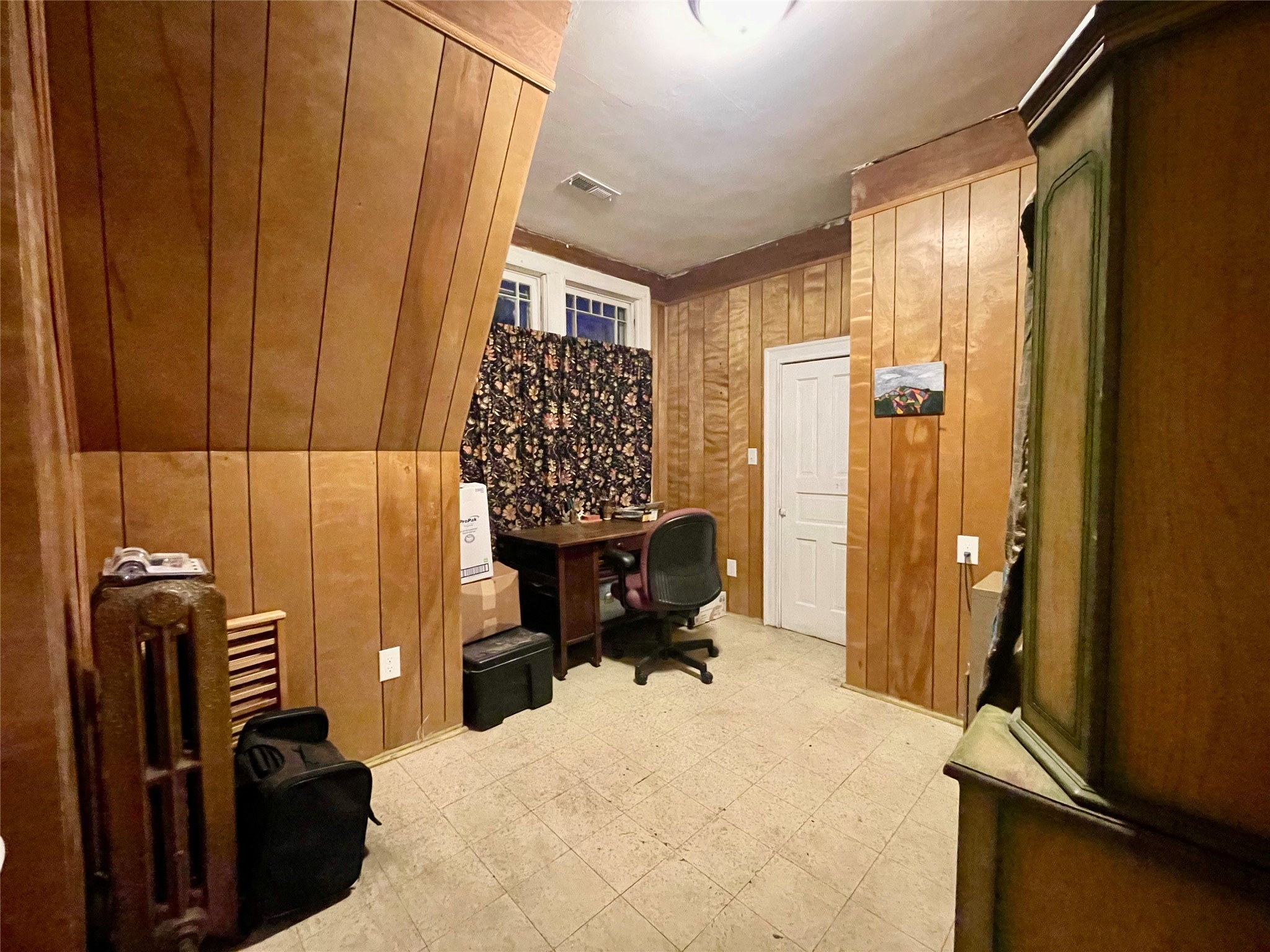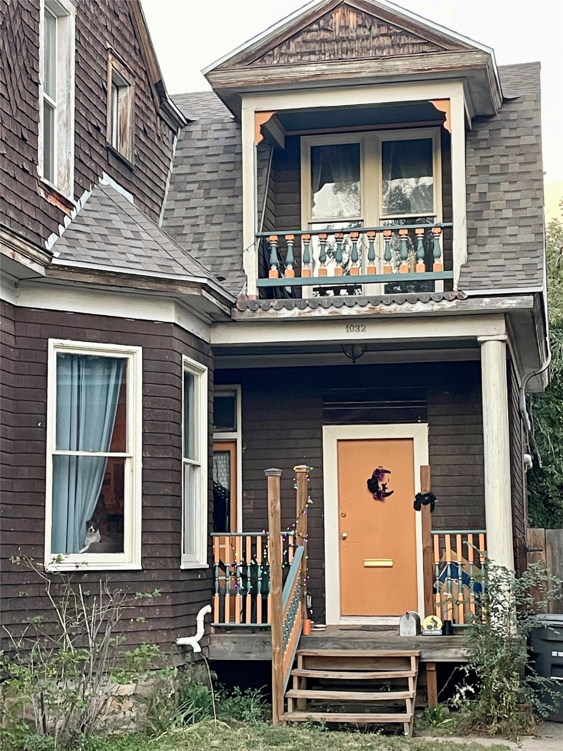Charming and spacious home, with turret tower, cedar shingle siding, Juliet balcony, large pocket door, and 3 season enclosed porch, along with 2 bedroom rental unit make this the ideal in town home. Main home sits on 4 city lots and has 4 bedrooms, 2 bathrooms, living room, dining room, kitchen, foyer, large laundry/craft room, enclosed front porch, outside front and back porches, and basement. Updates: 2 new furnaces with central air and separate zone control, new dimensional shingle roof, new insulation and drywall, updated bathrooms but one still has original clawfoot tub!, new plumbing, new tile, all new appliances, updated electric with 200 amp service, new carpet in 2 bedrooms, new front porch, new 30 amp RV hookup. The backyard is fenced with raised garden beds, chicken coop, detached garage with alley access, patio areas and porches, grape covered trellis, and many mature trees and perennials including apple and cherry trees. The rental unit has separate meters and it's own laundry room, as well as new covered front porch, and back porch and balcony. All of this and walking distance to New Mexico Highlands University, shops, and grocery store, as well as the historic Las Vegas New Mexico Plaza make this home so livable!