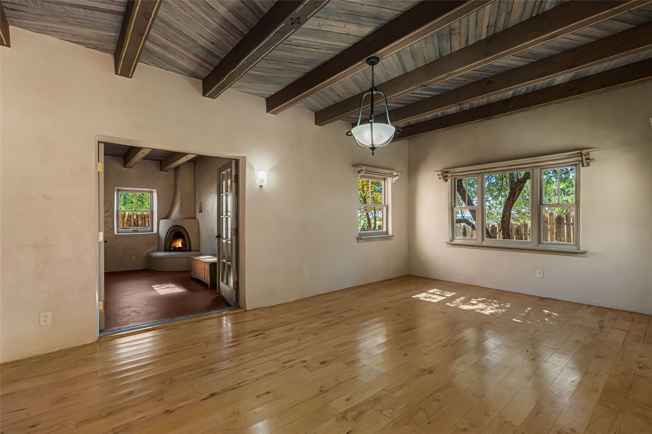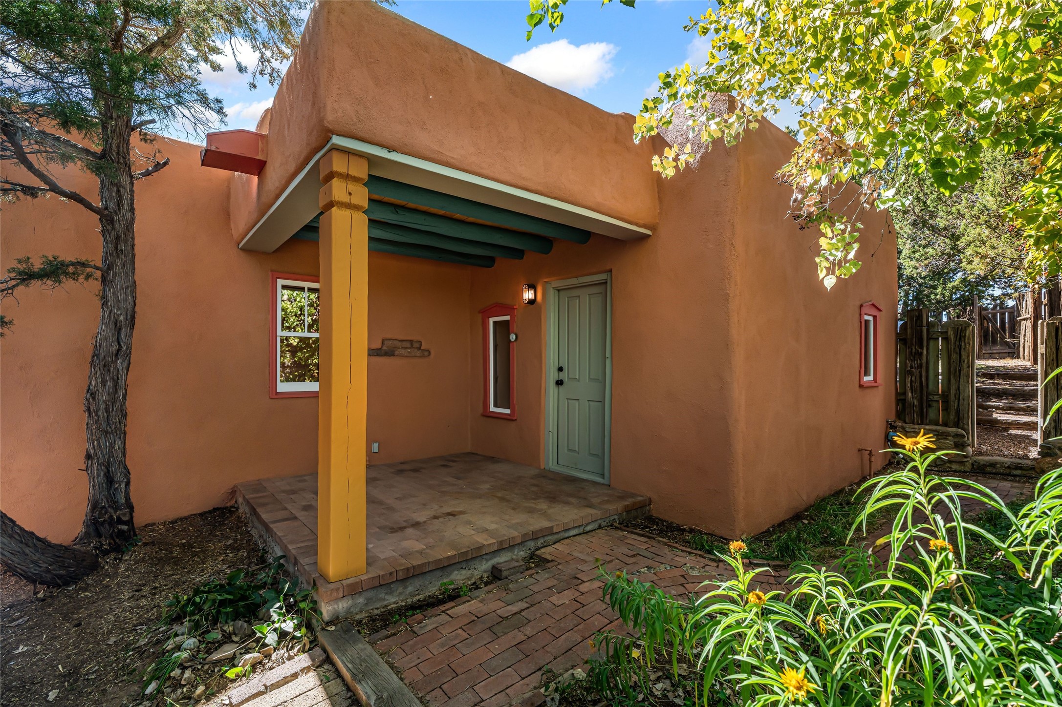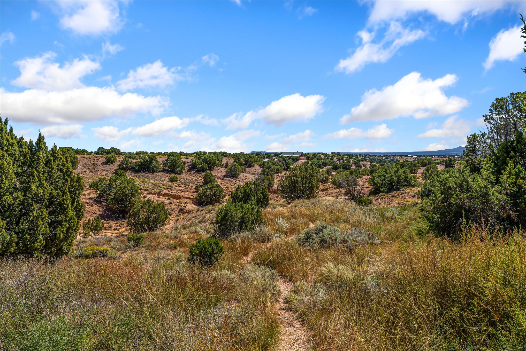 Set on nearly 6 acres of natural beauty, this hand-crafted adobe home by Jerry West offers a lifestyle rooted in nature and creativity. Part of a residential community, the grounds feature an orchard, shade trees, and meandering trails that invite exploration, quiet contemplation, or nature gazing. Two private yards extend your living space outdoors, ideal for gardens or simply enjoying the peace of the desert landscape. Inside, the 1-bedroom, 1-bath home blends artistry and function. The open plan living area connects to a kitchen and dining space with a handcrafted table, bench, and a restored antique tin-and-glass chandelier by Maurice Dixon. The bedroom offers warmth and charm with an adobe fireplace, handcrafted trastero cupboard, blanket chest, and two closets. Practical amenities include two attached storage rooms and private parking for two vehicles. A newer well and well house serve the community, ensuring both sustainability and convenience. Located just off NM State Hwy 14 at the Lone Butte General Store, the property offers easy access to downtown Santa Fe while retaining a retreat-like setting. This is a home where creativity abounds, and nature is just outside your door.