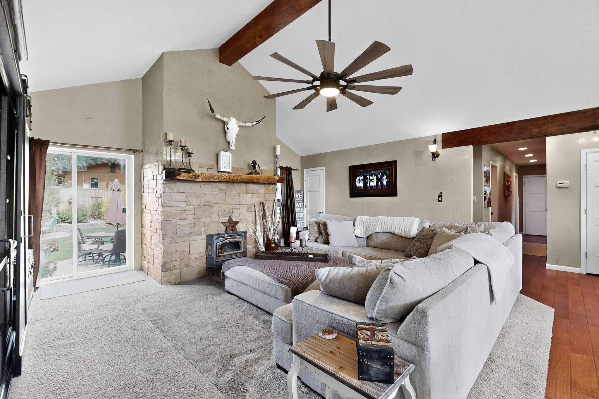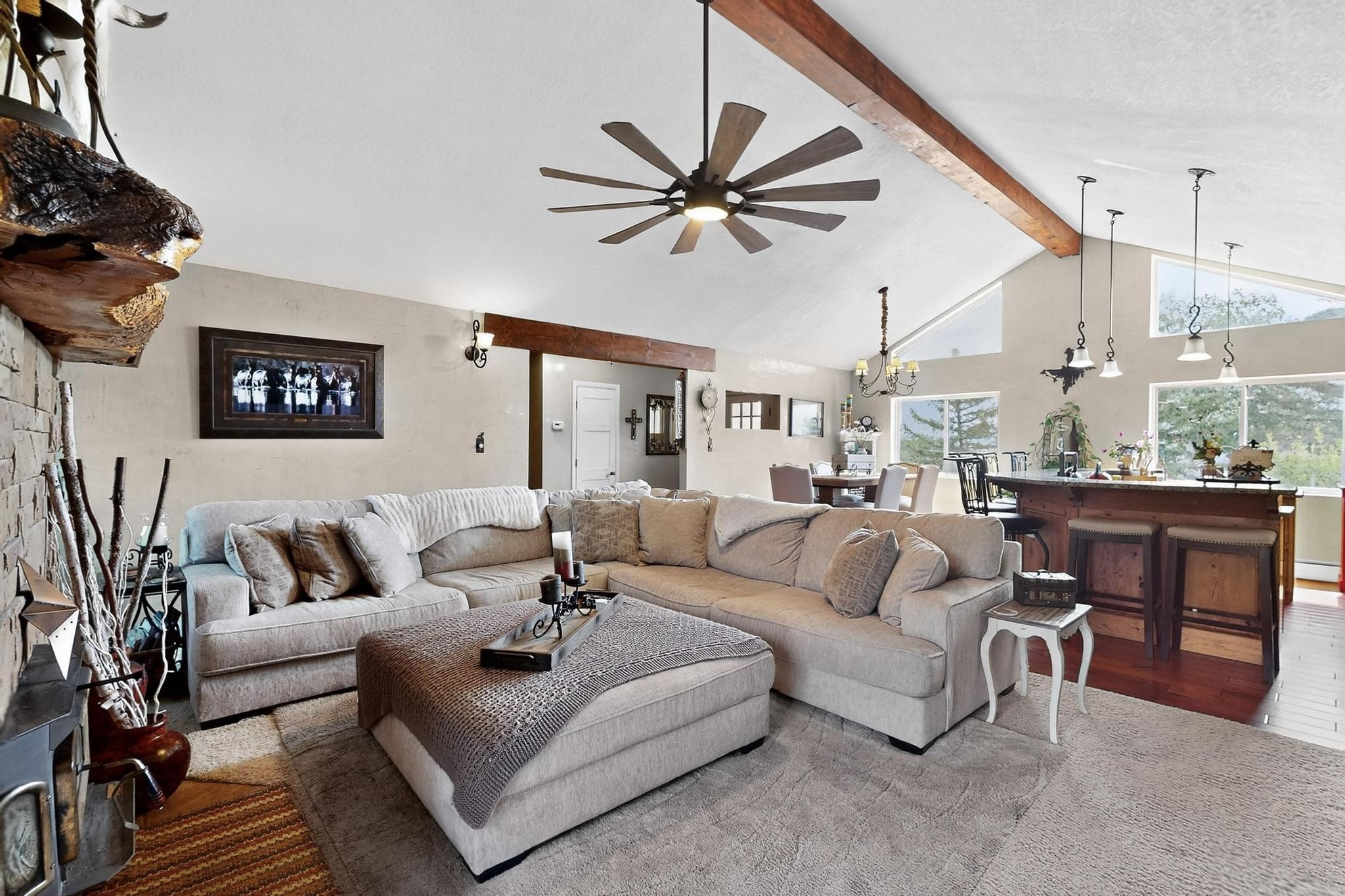 Welcome to 585 Navajo Rd, a rare move-in ready home offering 4 bedrooms, 3 bathrooms, and two bonus flex/office rooms--perfect for today's work-from-home lifestyle, hobbies, or guest space.Step inside to an inviting open-concept main level with vaulted ceilings, exposed beams, and abundant natural light. With a spacious granite island at its heart, the living, dining, and kitchen areas connect effortlessly for everyday living and entertaining.On the lower level, you'll find a second living room with a cozy fireplace, creating the perfect retreat for movie nights or quiet evenings. Throughout the home, you'll appreciate abundant storage options that keep everything organized and out of sight.This home has been carefully maintained and upgraded, featuring a new roof, new boiler, and new water heater for peace of mind.Outdoors, the property shines: the front yard is xeriscaped for low-maintenance beauty, while the backyard is a true oasis with a covered patio, pond, lush landscaping, and a large outdoor shed for all your tools and gear. There's even dedicated RV parking along the side of the house, adding functionality and value.Set on a corner lot in the highly sought-after Barranca Mesa neighborhood, you'll enjoy quiet surroundings, nearby schools, and quick access to trails and all that Los Alamos has to offer.