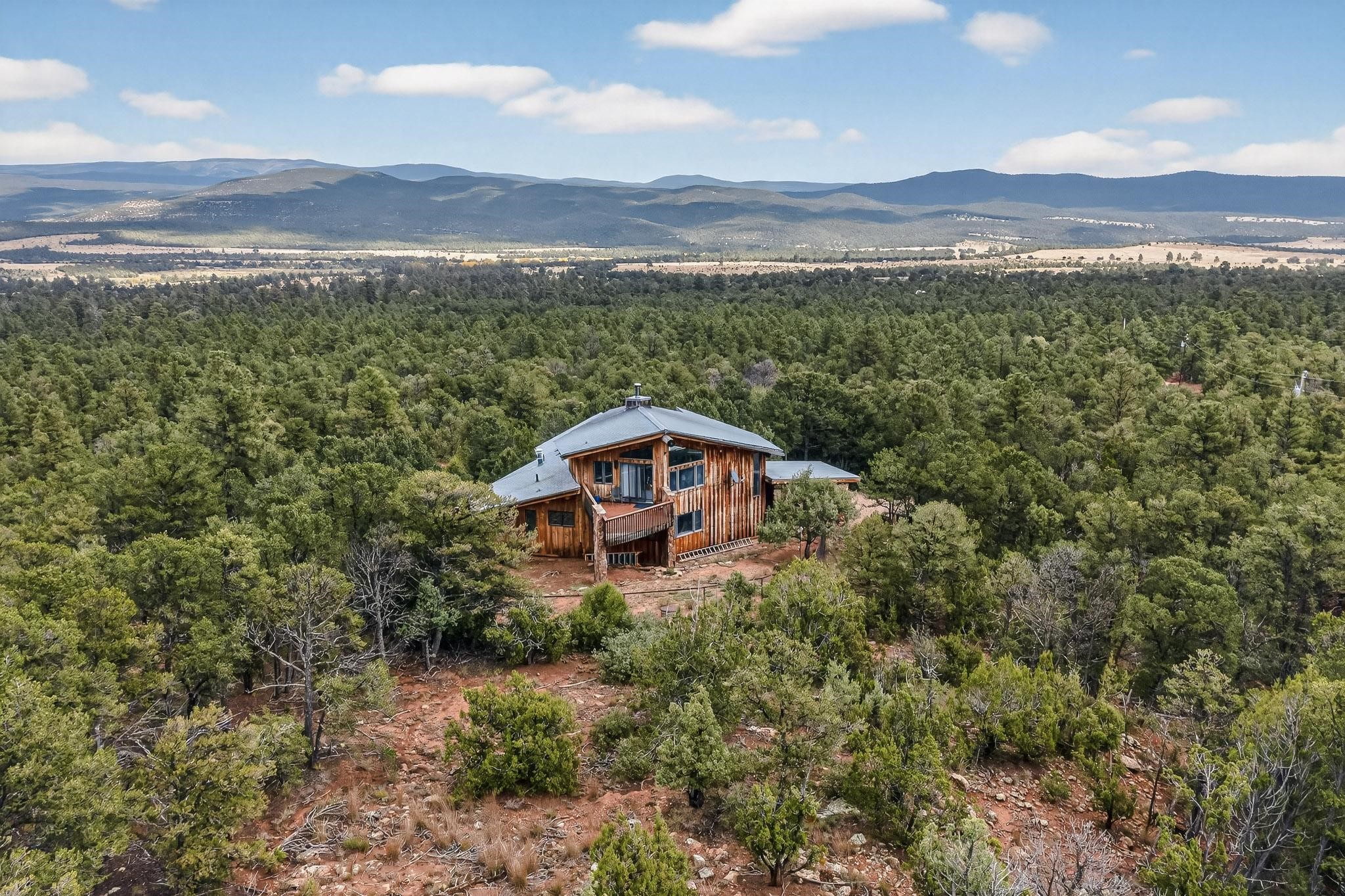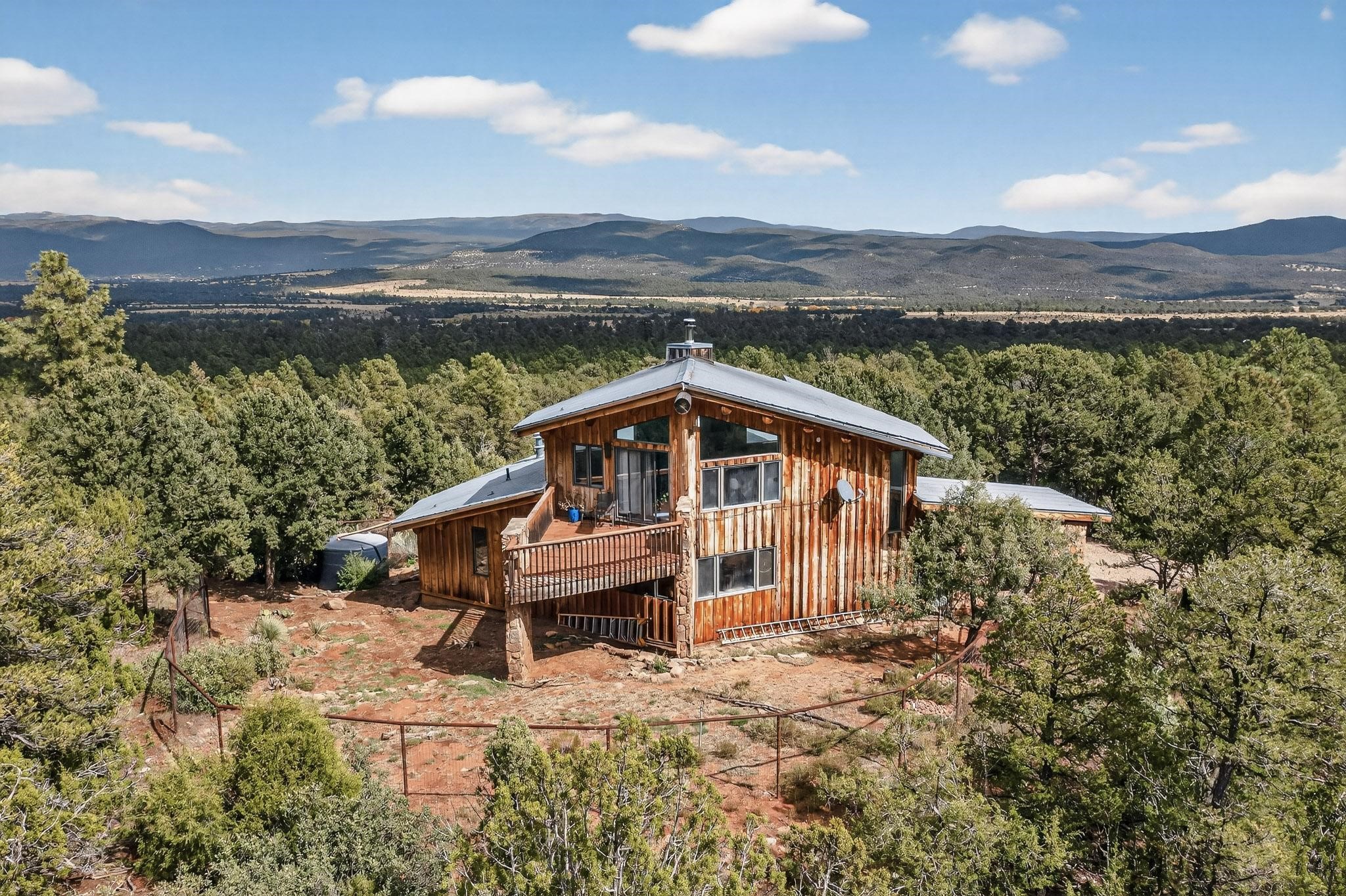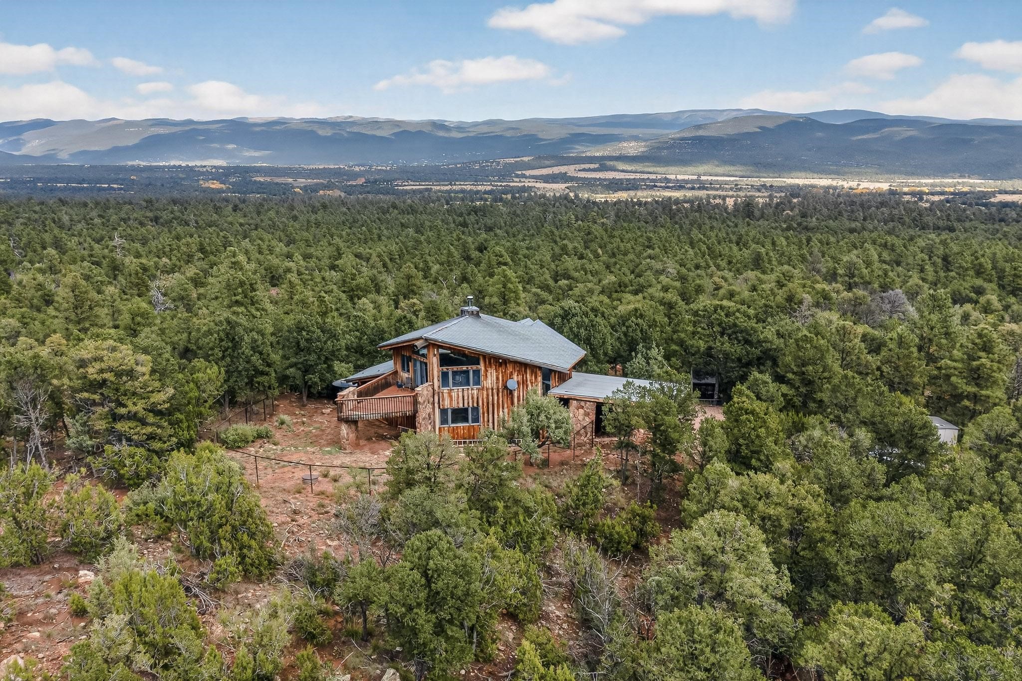 Escape to the beauty of Rowe, New Mexico, with this charming 2-bedroom, 2-bathroom home set on 10 breathtaking acres. Surrounded by stunning mountain views, this property offers the perfect blend of tranquility, space, and Southwestern charm. Inside, you'll find bright, comfortable living spaces designed to take full advantage of the natural light and scenery. The open floor plan creates a warm and inviting atmosphere, ideal for relaxing or entertaining. Step outside to enjoy sweeping views of the surrounding mountains and wide-open skies. Perfect for morning coffee, evening sunsets, or peaceful stargazing. Whether you're looking for a private retreat, a full-time residence, or a place to enjoy the outdoors, this Rowe property delivers endless potential and unmatched serenity on 10 gorgeous acres. Elaborate rain water catchment system with a 6000 gallon capacity, filtered and plumbed to every part of the house. Know your pet is secure as there is a portion of the property securely fenced.