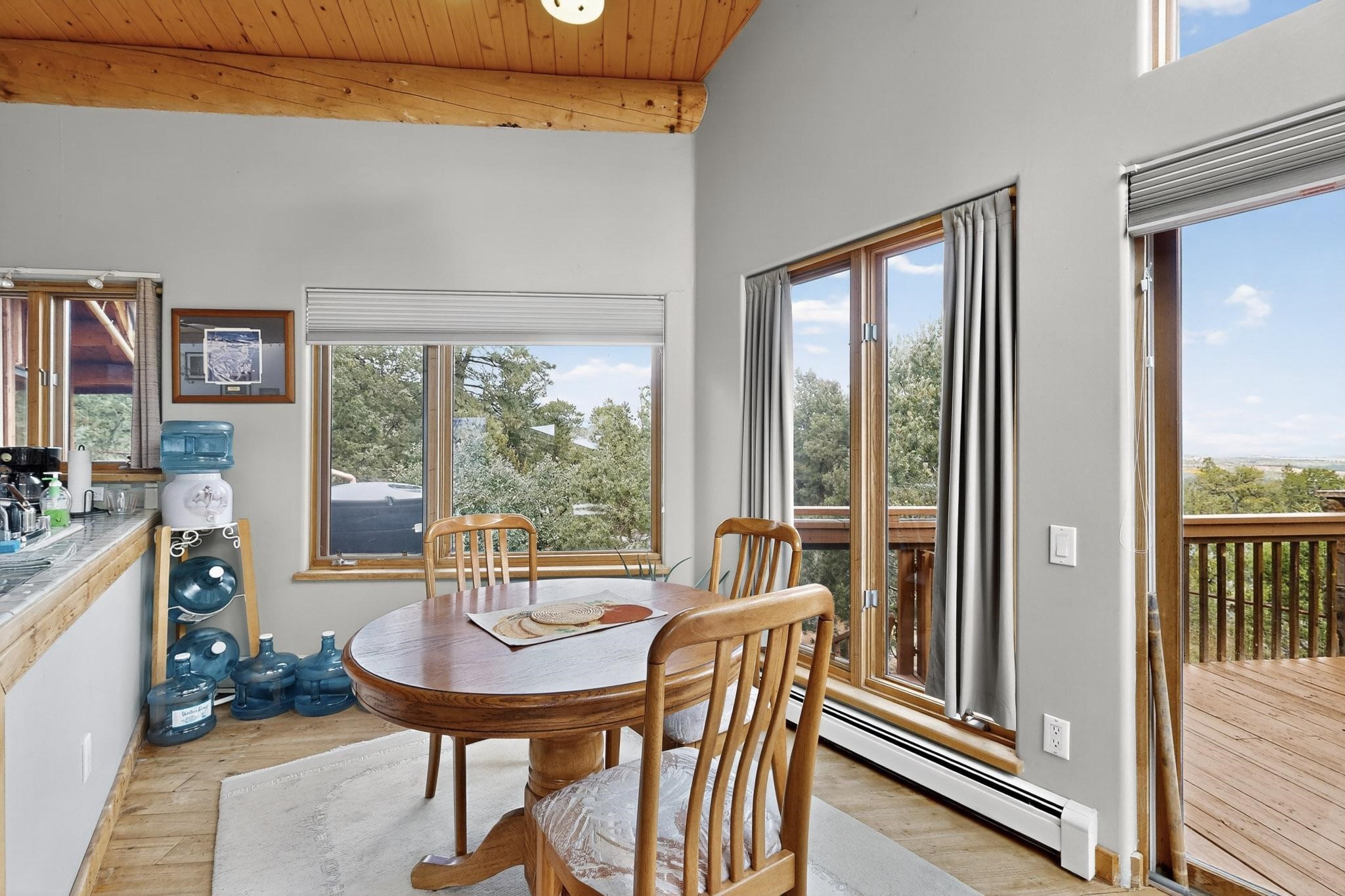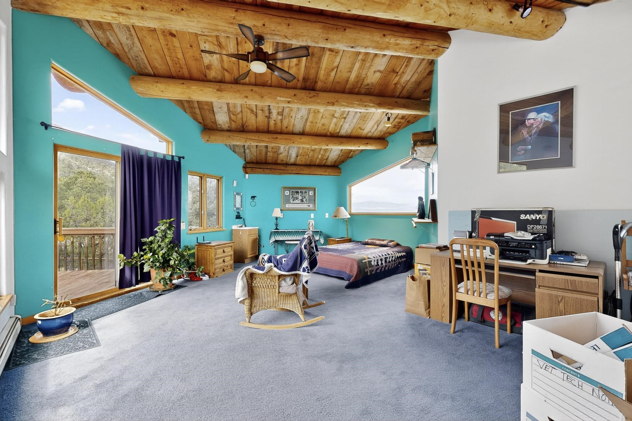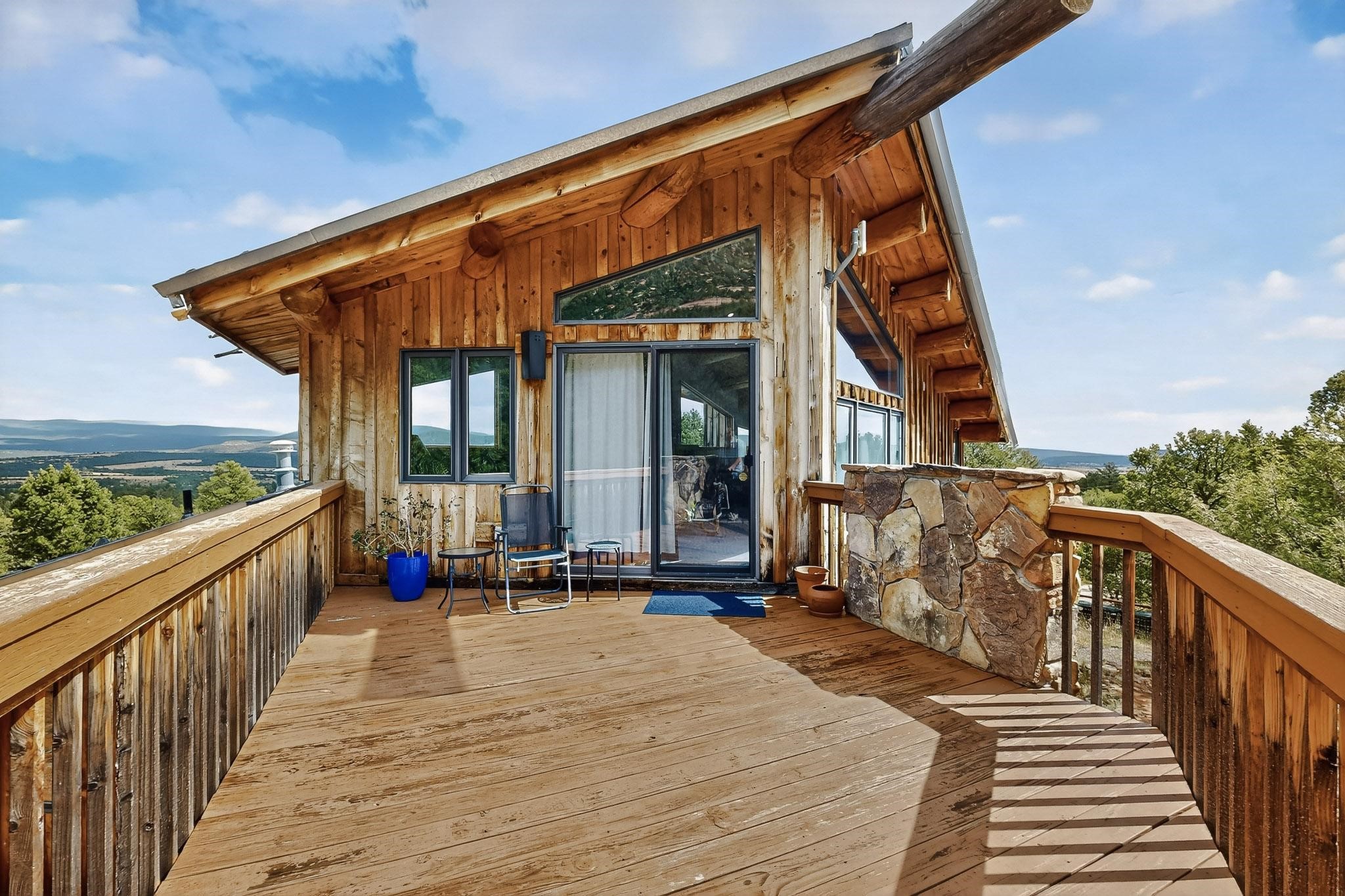 Escape to the beauty of Rowe, New Mexico, with this charming 2-bedroom, 2-bathroom home set on 10 breathtaking acres. Surrounded by stunning mountain views, this property offers the perfect blend of tranquility, space, and Southwestern charm. Inside, you'll find bright, comfortable living spaces designed to take full advantage of the natural light and scenery. The open floor plan creates a warm and inviting atmosphere, ideal for relaxing or entertaining. Step outside to enjoy sweeping views of the surrounding mountains and wide-open skies. Perfect for morning coffee, evening sunsets, or peaceful stargazing. Whether you're looking for a private retreat, a full-time residence, or a place to enjoy the outdoors, this Rowe property delivers endless potential and unmatched serenity on 10 gorgeous acres. Elaborate rain water catchment system with a 6000 gallon capacity, filtered and plumbed to every part of the house. Know your pet is secure as there is a portion of the property securely fenced.