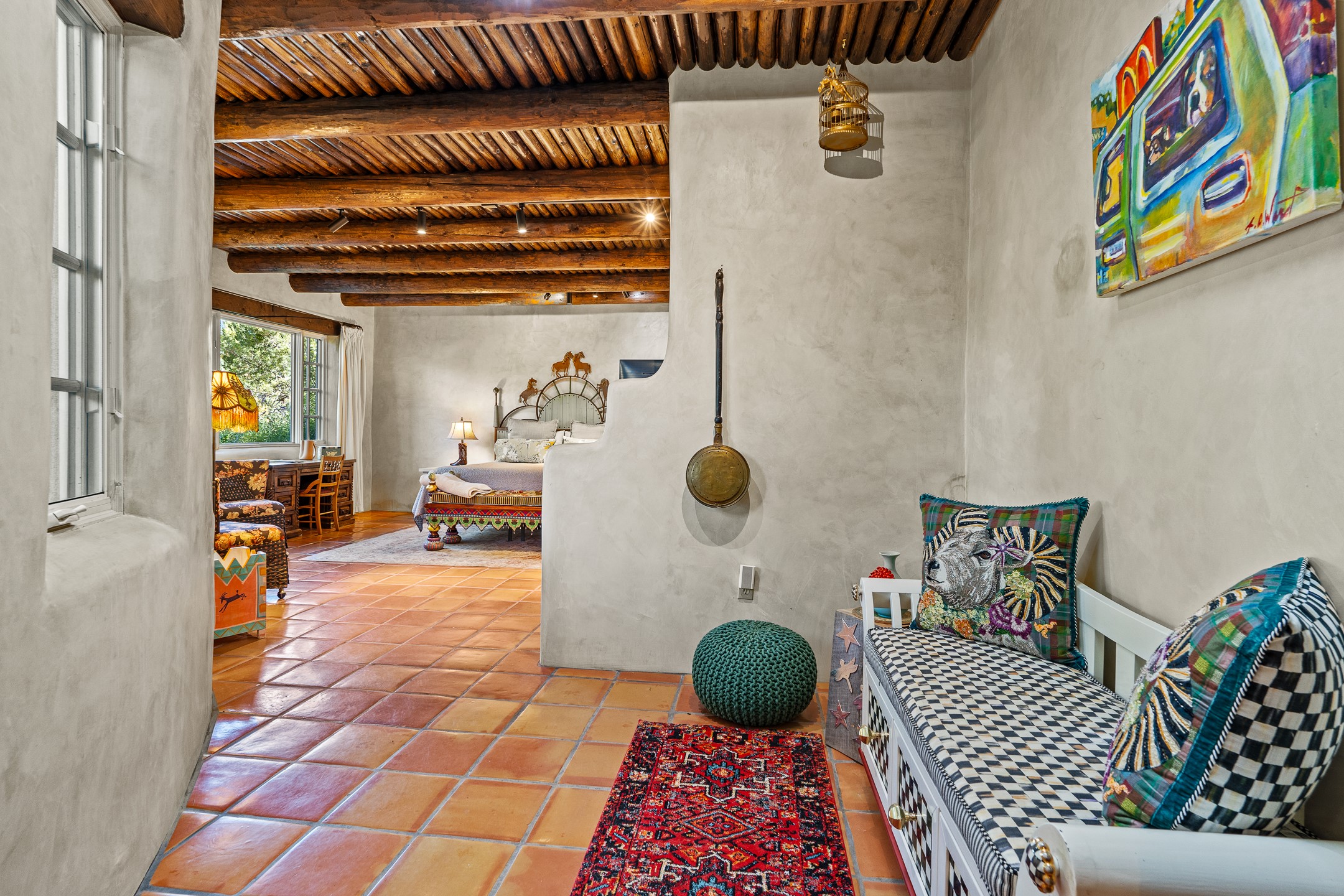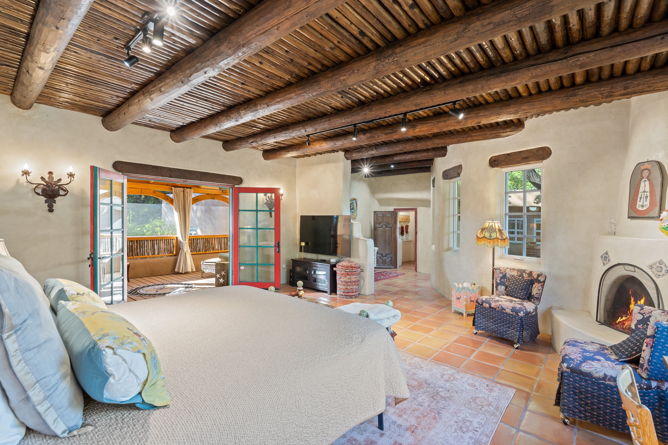 Historic John Young-Hunter Home & Artist's Compound, Taos, New Mexico Private and secluded yet just minutes from town, this rare historic compound is one of Taos' true treasures. Set on 5.17 serene acres with towering shade trees, inviting courtyards, and lush gardens, the property includes a gracious main residence and two guest cottages--a sanctuary for those who value heritage, artistry, and timeless New Mexico beauty. The John Young-Hunter House began in the early 1880's as simple adobe rooms and a log cabin, expanded and lived in over two centuries by a succession of owners, most notably John Young-Hunter, the celebrated Scottish portrait artist who called Taos home for more than fifty years. Part of the legendary circle of artists, writers, and visionaries drawn to Taos beginning in the mid-19th century, Young-Hunter was a close friend of Mabel Dodge and Tony Luhan, who helped him find this two-hundred-year-old adobe soon after his arrival in 1917. Young-Hunter transformed the property with the help of fellow artists: Nicolai Fechin carved decorative doors, lintels, and columns; Leon Gaspard designed and forged the distinctive ironwork and gates; and Henry Mercer, founder of the Moravian Pottery in Pennsylvania, contributed prototype tiles that are still visible today. Young-Hunter himself added painted details, including the Scottish thistle and family coat of arms on the west portal. Fully restored to provide modern amenities while retaining its historic soul, the home offers rich character and artistic provenance rarely found in today's market. The small south side studio, believed to be Young-Hunter's original workspace, has been sensitively modernized. Historic estates of this significance are seldom offered for sale. This is a remarkable opportunity for the discerning buyer seeking a home deeply woven into the artistic legacy of Taos--a cabin built in approximately 1850.
