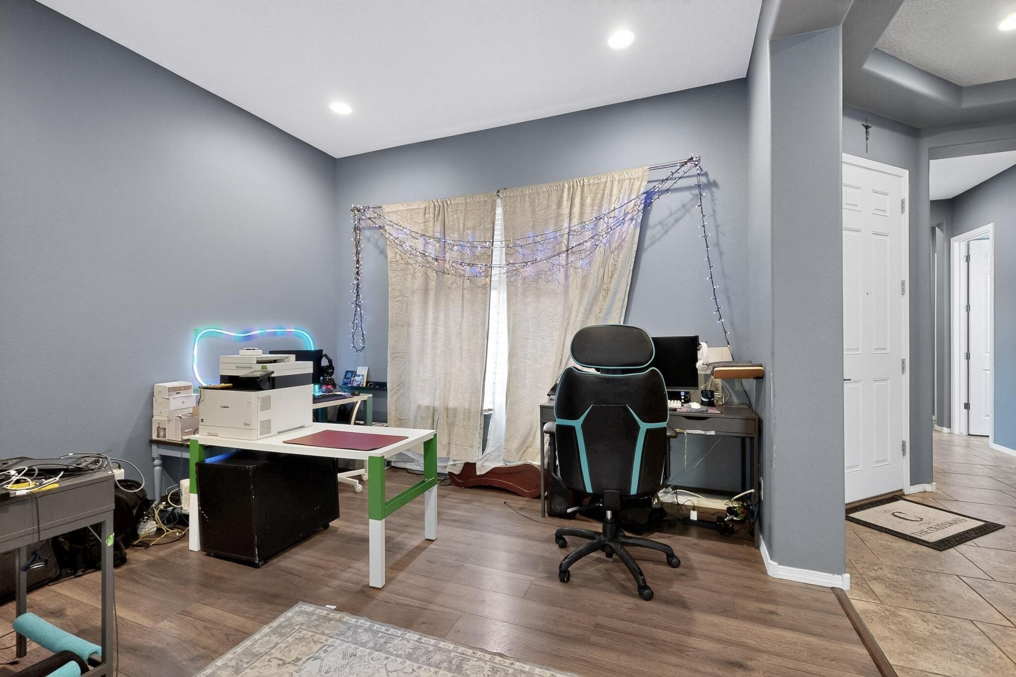 Nestled in the esteemed Loma Colorado community, this stunning single-story residence is an architectural sanctuary, ready for immediate occupancy. An open-plan living space flows effortlessly, anchored by a gourmet kitchen featuring granite countertops and stainless steel appliances & oversized island. Glass doors invite the outdoors in, leading to a sprawling, professionally landscaped backyard. This private retreat boasts custom-installed patios, sophisticated raised brick walls, and a serene water feature, designed for elegant al fresco living. Luxury Vinyl Flooring (2022) graces the master suite, living, and dining areas. The master bath is a spa-like escape. A dedicated flex space, perfect as an office or gym, showcases chic bamboo flooring. A 3-car garage and huge laundry room.