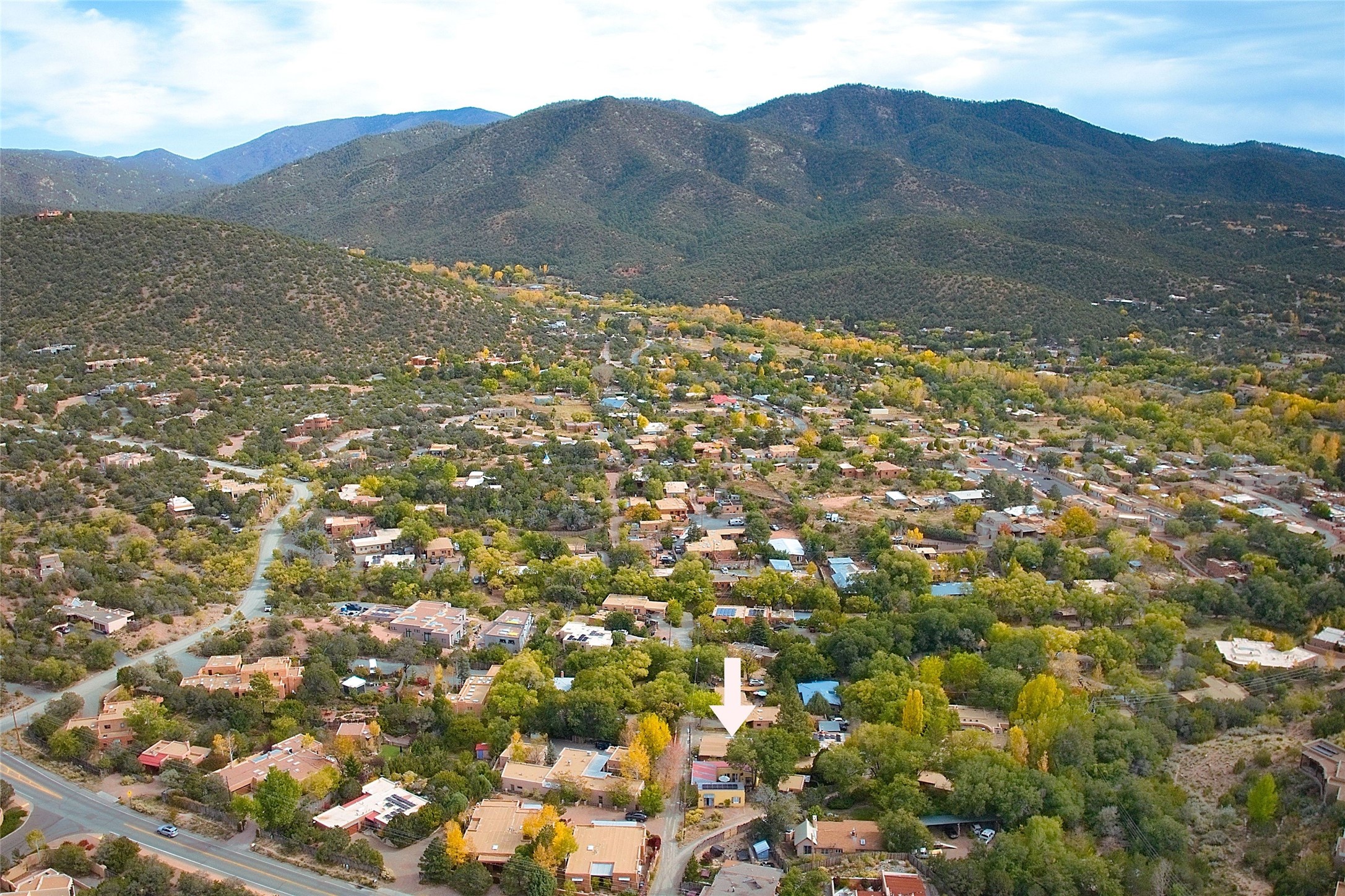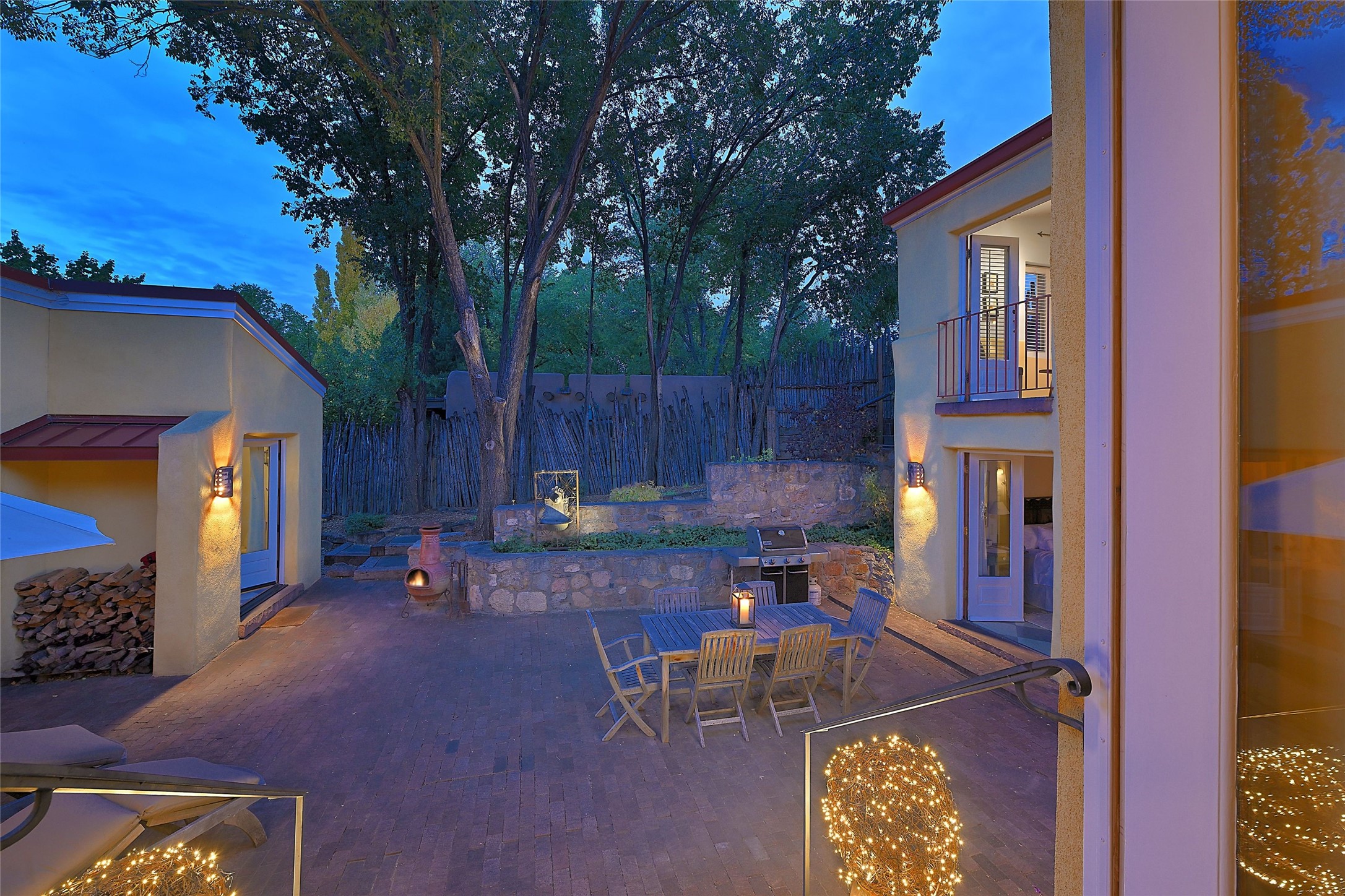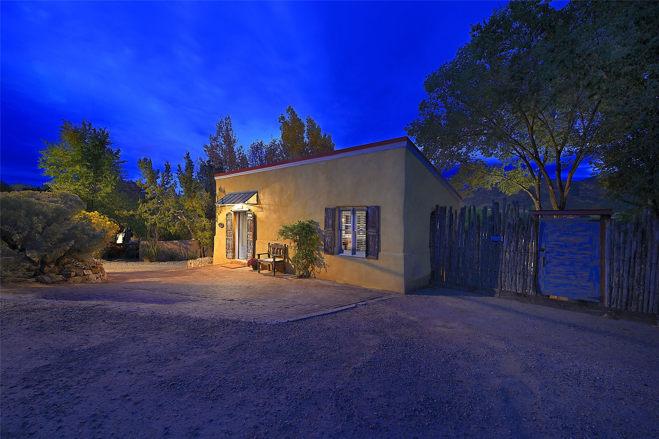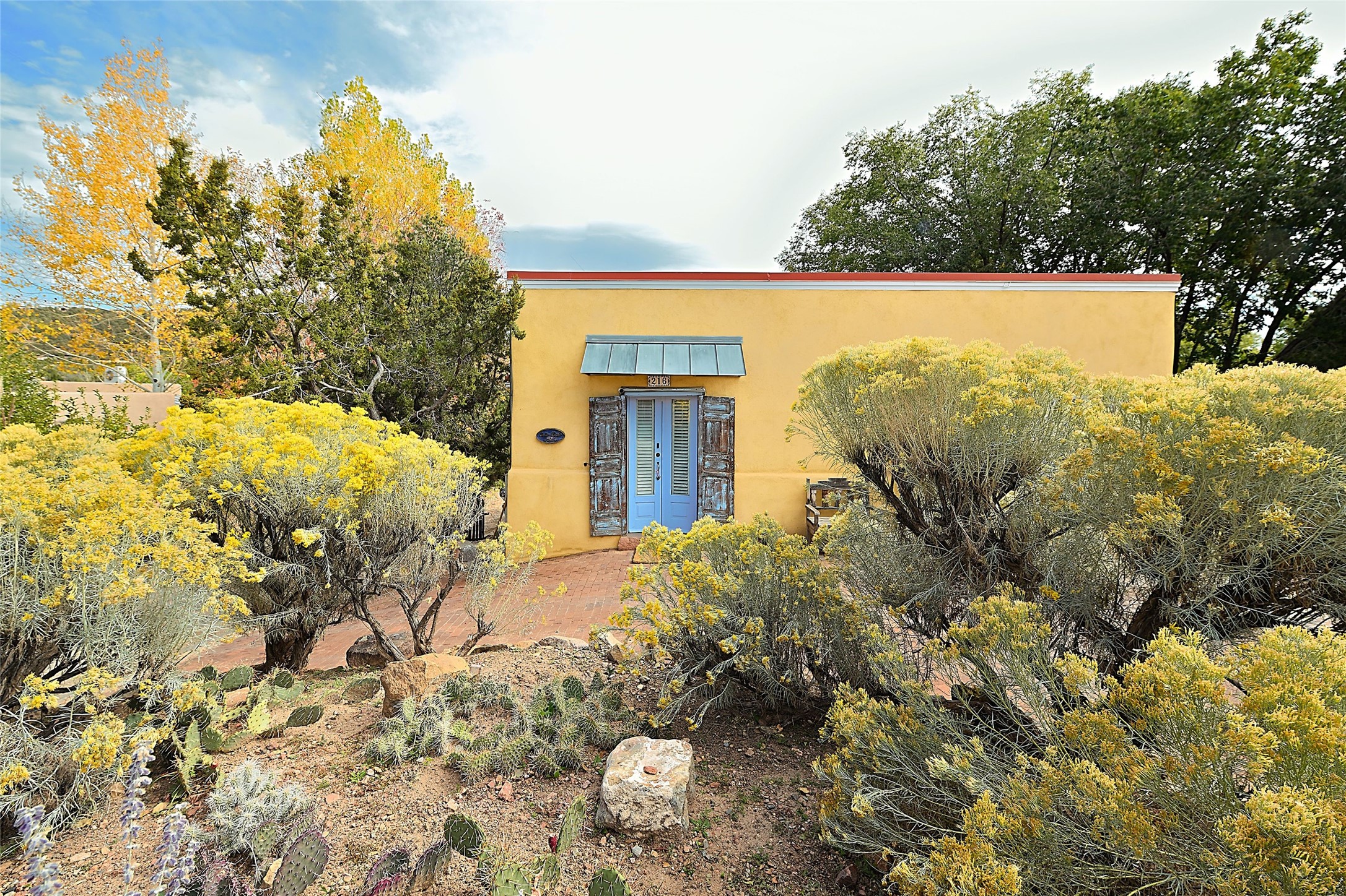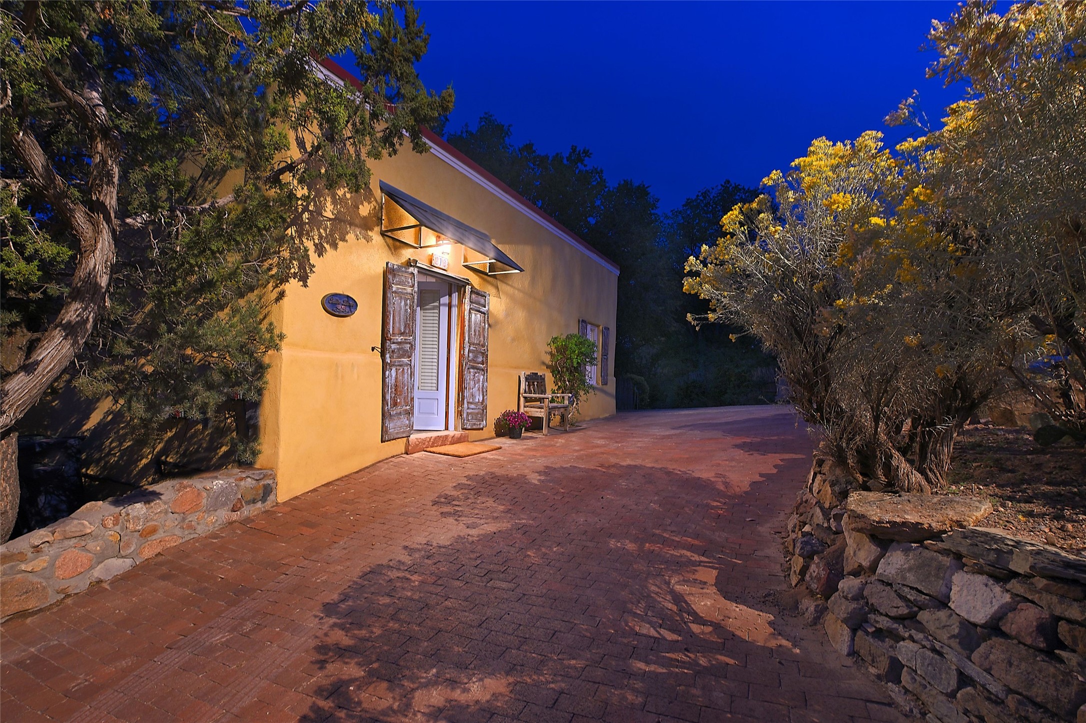 Quiet and charming oasis, located in the heart of Santa Fe's Historic Eastside, and a stone's throw to Canyon Road and the Plaza. Built in 1988 for Santa Fe New Mexican arts critic David Bell, the original two-story structure is carved into an east-facing hillside at the fork of Lorenzo Lane in a verdant neighborhood of historic homes. Unusual for Santa Fe, the yellow stucco exterior gives this delightful home the look of a French country house. Through the quaint, unimposing facade, one enters a surprisingly spacious, yet cozy, three-bedroom home with stunning views of Mount Atalaya and Picacho Peak. French doors open from the living/dining room and all three en-suite bedrooms to a tranquil courtyard surrounded by stone walls, walkways, and irrigated, terraced beds planted with lavender, perennials and shade trees. The primary bedroom was added in 1997 and the attached casita (accessed from the courtyard) was built in 2017 per the design of famed Santa Fe architect Richard Martinez. The property features an abundance of charming features, including: Antique kitchen cabinetry repurposed from a landmark Santa Fe hardware store; 12-foot living/room dining room ceiling with vigas; Diamond-plaster-finished living/dining room, primary bedroom, and casita walls; Painted floors and wood ceiling detailing; Kiva fireplace; French doors into the courtyard from all bedrooms and living/dining room; Landscape lighting and small fountain in courtyard. Modern upgrades include: AC/Heat supplied by mini-splits installed in kitchen and all bedrooms in 2017; Lochinvar, high-efficiency gas furnace installed in 2021 supplies radiant floor heat and instant hot water; Roof-mounted solar panels installed in 2017 that supply 100% of the electricity. The property was previously a popular short-term rental with rave reviews from guests. This is truly the ideal enchanting Santa Fe retreat that is not to be missed!
