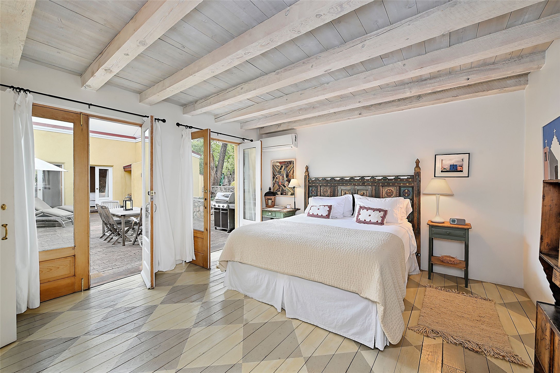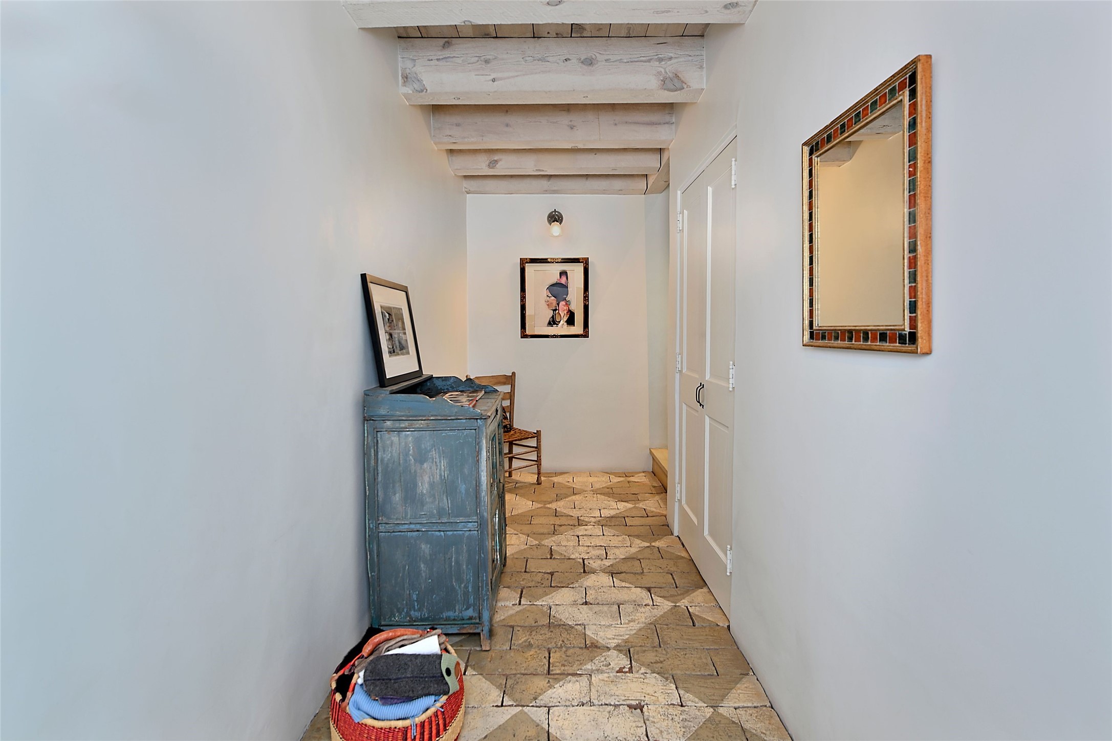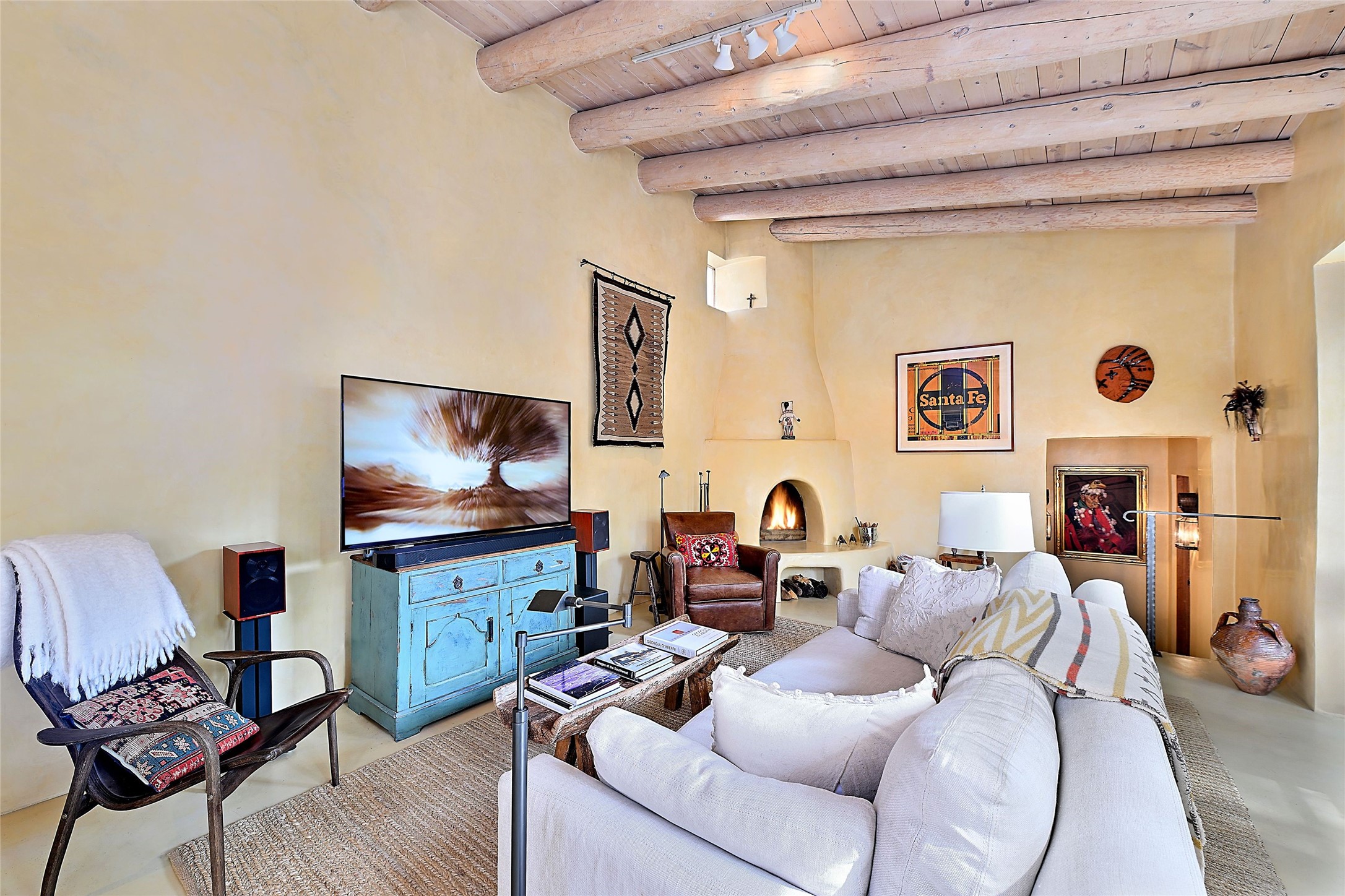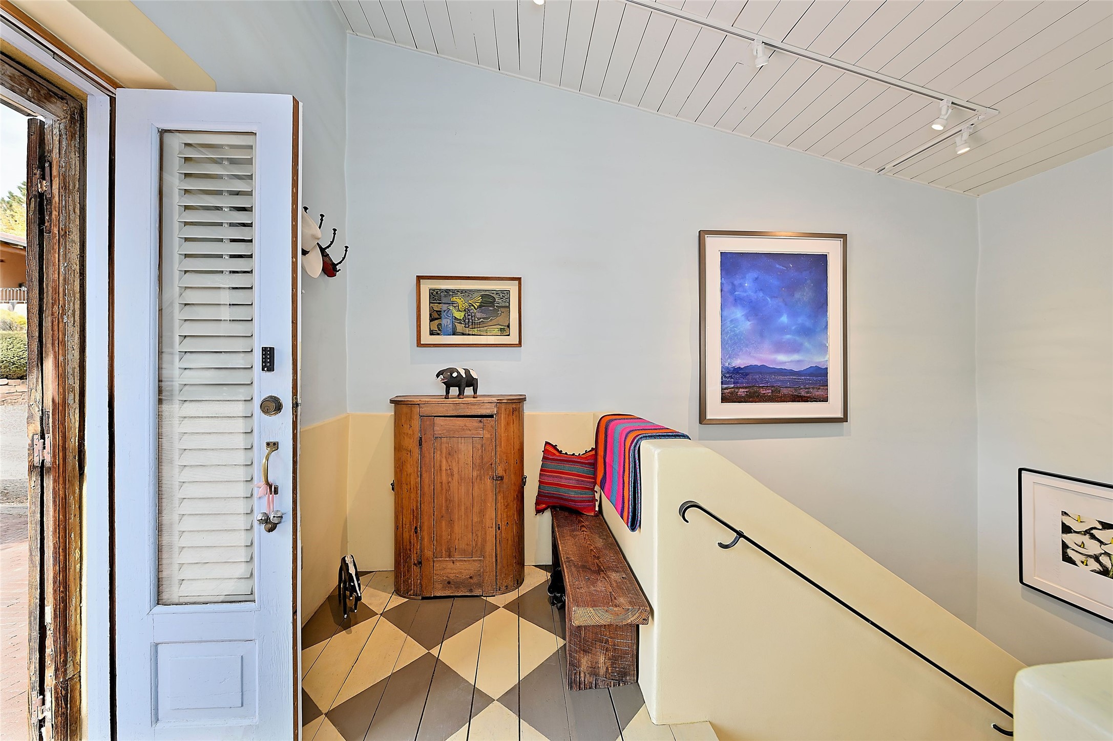 Quiet and charming oasis, located in the heart of Santa Fe's Historic Eastside, and a stone's throw to Canyon Road and the Plaza. Built in 1988 for Santa Fe New Mexican arts critic David Bell, the original two-story structure is carved into an east-facing hillside at the fork of Lorenzo Lane in a verdant neighborhood of historic homes. Unusual for Santa Fe, the yellow stucco exterior gives this delightful home the look of a French country house. Through the quaint, unimposing facade, one enters a surprisingly spacious, yet cozy, three-bedroom home with stunning views of Mount Atalaya and Picacho Peak. French doors open from the living/dining room and all three en-suite bedrooms to a tranquil courtyard surrounded by stone walls, walkways, and irrigated, terraced beds planted with lavender, perennials and shade trees. The primary bedroom was added in 1997 and the attached casita (accessed from the courtyard) was built in 2017 per the design of famed Santa Fe architect Richard Martinez. The property features an abundance of charming features, including: Antique kitchen cabinetry repurposed from a landmark Santa Fe hardware store; 12-foot living/room dining room ceiling with vigas; Diamond-plaster-finished living/dining room, primary bedroom, and casita walls; Painted floors and wood ceiling detailing; Kiva fireplace; French doors into the courtyard from all bedrooms and living/dining room; Landscape lighting and small fountain in courtyard. Modern upgrades include: AC/Heat supplied by mini-splits installed in kitchen and all bedrooms in 2017; Lochinvar, high-efficiency gas furnace installed in 2021 supplies radiant floor heat and instant hot water; Roof-mounted solar panels installed in 2017 that supply 100% of the electricity. The property was previously a popular short-term rental with rave reviews from guests. This is truly the ideal enchanting Santa Fe retreat that is not to be missed!