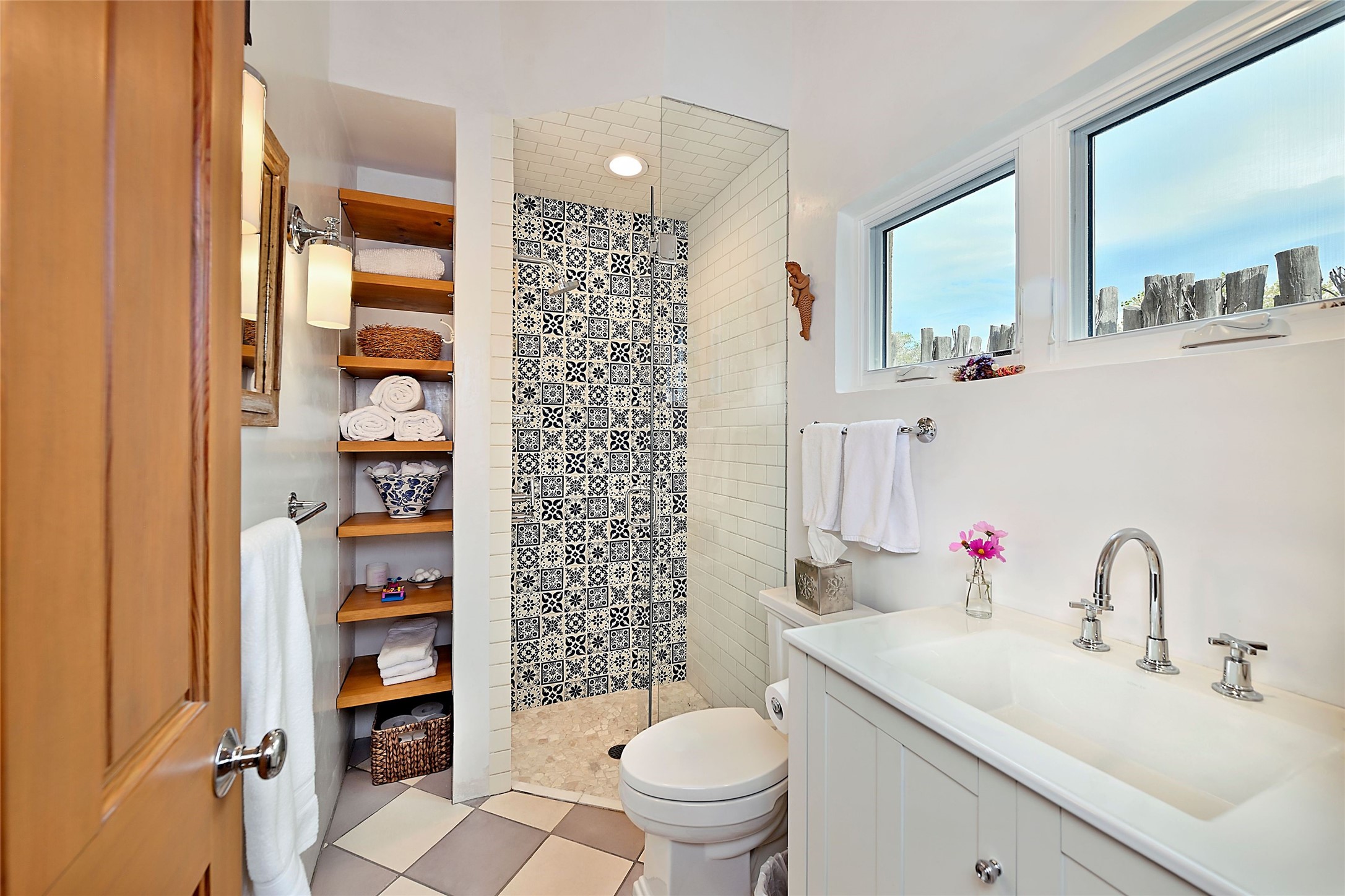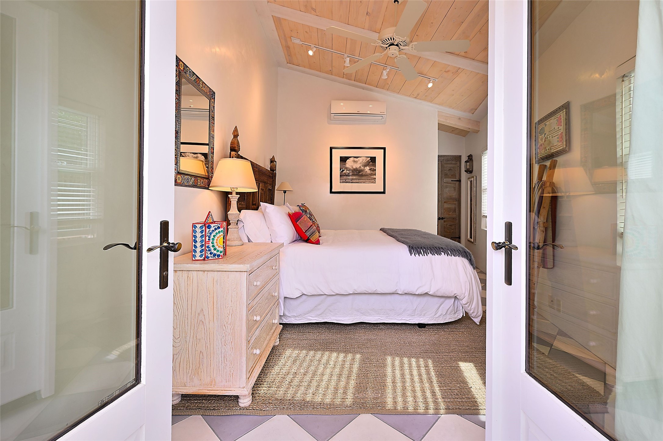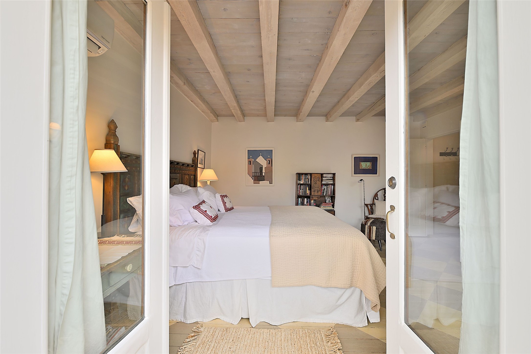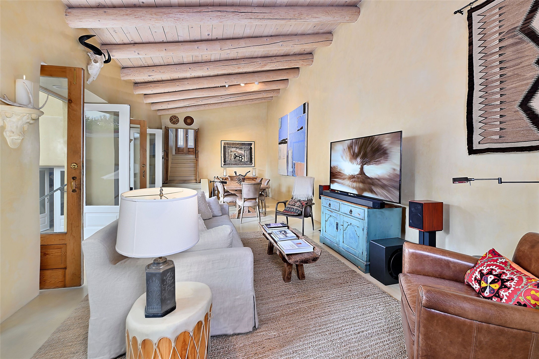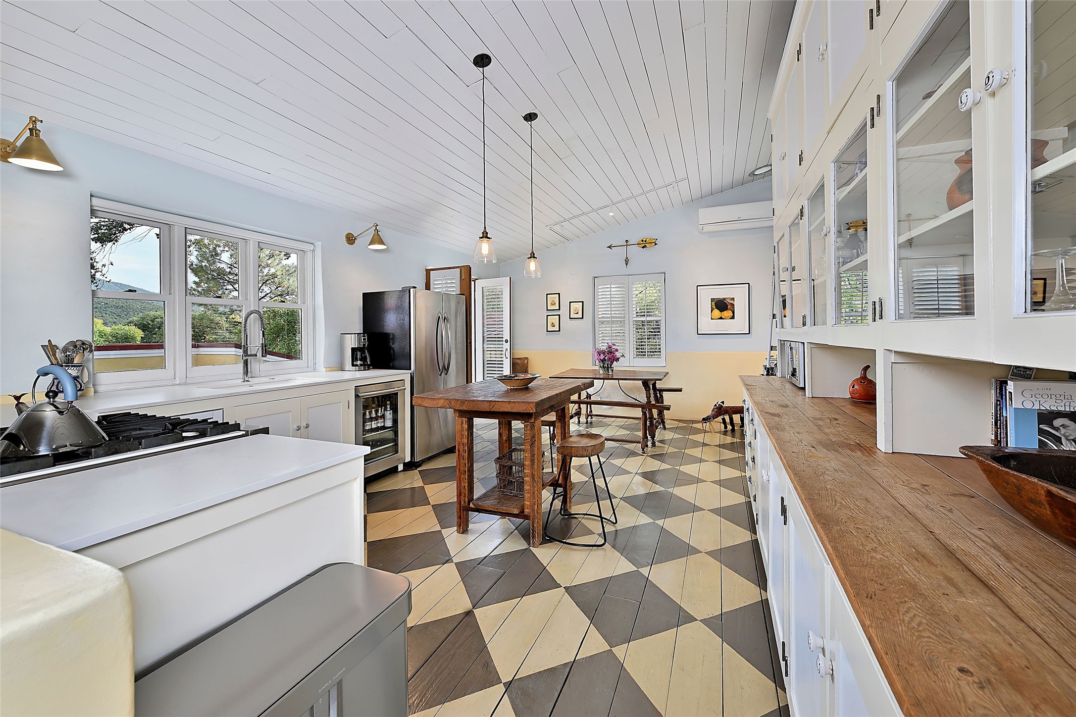 Quiet and charming oasis, located in the heart of Santa Fe's Historic Eastside, and a stone's throw to Canyon Road and the Plaza. Built in 1988 for Santa Fe New Mexican arts critic David Bell, the original two-story structure is carved into an east-facing hillside at the fork of Lorenzo Lane in a verdant neighborhood of historic homes. Unusual for Santa Fe, the yellow stucco exterior gives this delightful home the look of a French country house. Through the quaint, unimposing facade, one enters a surprisingly spacious, yet cozy, three-bedroom home with stunning views of Mount Atalaya and Picacho Peak. French doors open from the living/dining room and all three en-suite bedrooms to a tranquil courtyard surrounded by stone walls, walkways, and irrigated, terraced beds planted with lavender, perennials and shade trees. The primary bedroom was added in 1997 and the attached casita (accessed from the courtyard) was built in 2017 per the design of famed Santa Fe architect Richard Martinez. The property features an abundance of charming features, including: Antique kitchen cabinetry repurposed from a landmark Santa Fe hardware store; 12-foot living/room dining room ceiling with vigas; Diamond-plaster-finished living/dining room, primary bedroom, and casita walls; Painted floors and wood ceiling detailing; Kiva fireplace; French doors into the courtyard from all bedrooms and living/dining room; Landscape lighting and small fountain in courtyard. Modern upgrades include: AC/Heat supplied by mini-splits installed in kitchen and all bedrooms in 2017; Lochinvar, high-efficiency gas furnace installed in 2021 supplies radiant floor heat and instant hot water; Roof-mounted solar panels installed in 2017 that supply 100% of the electricity. The property was previously a popular short-term rental with rave reviews from guests. This is truly the ideal enchanting Santa Fe retreat that is not to be missed!
