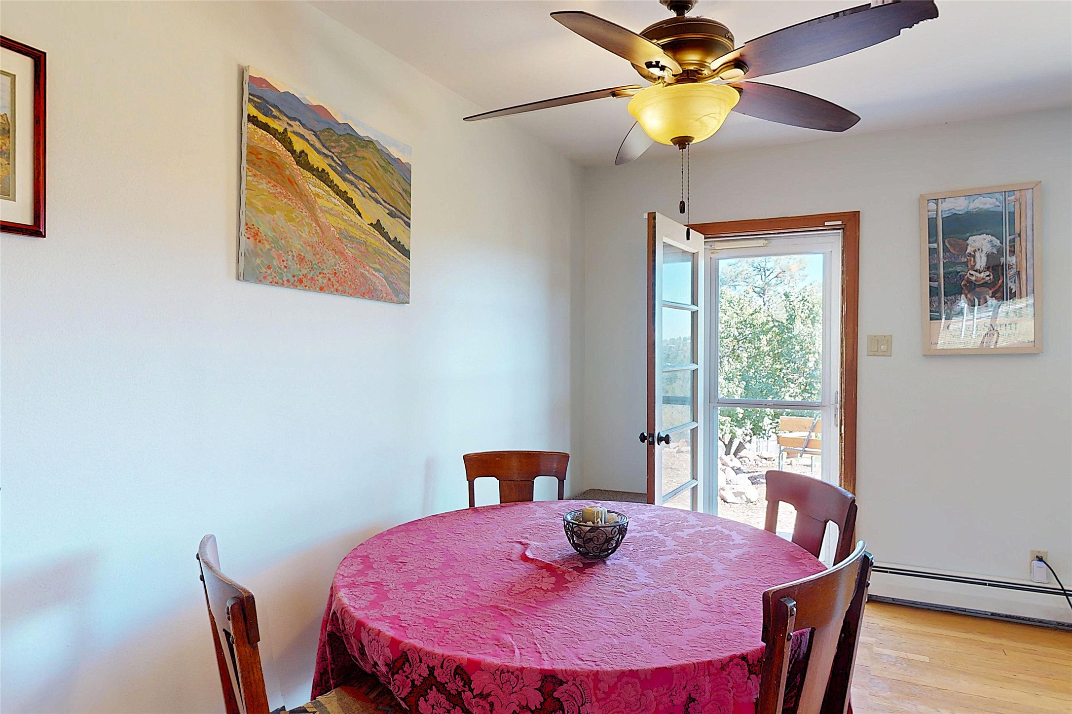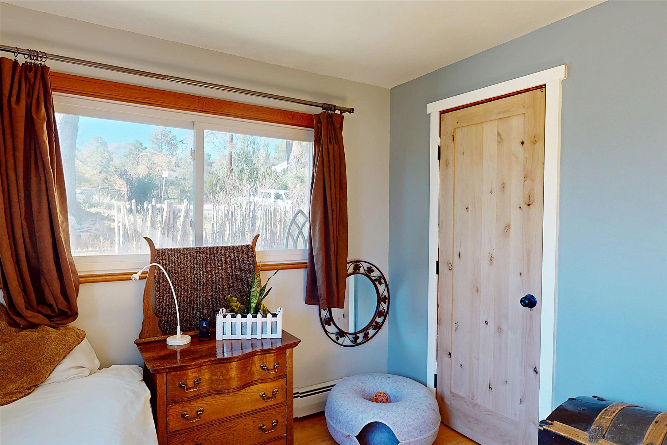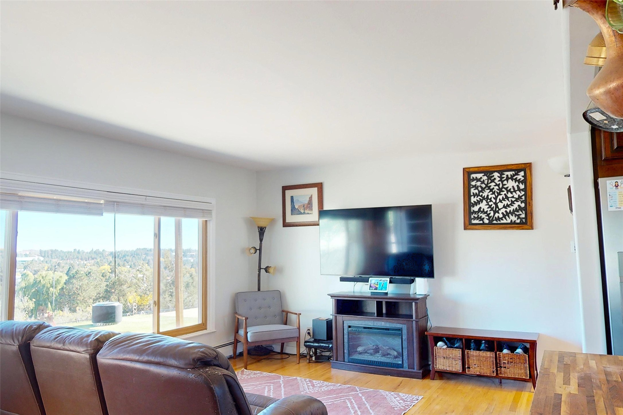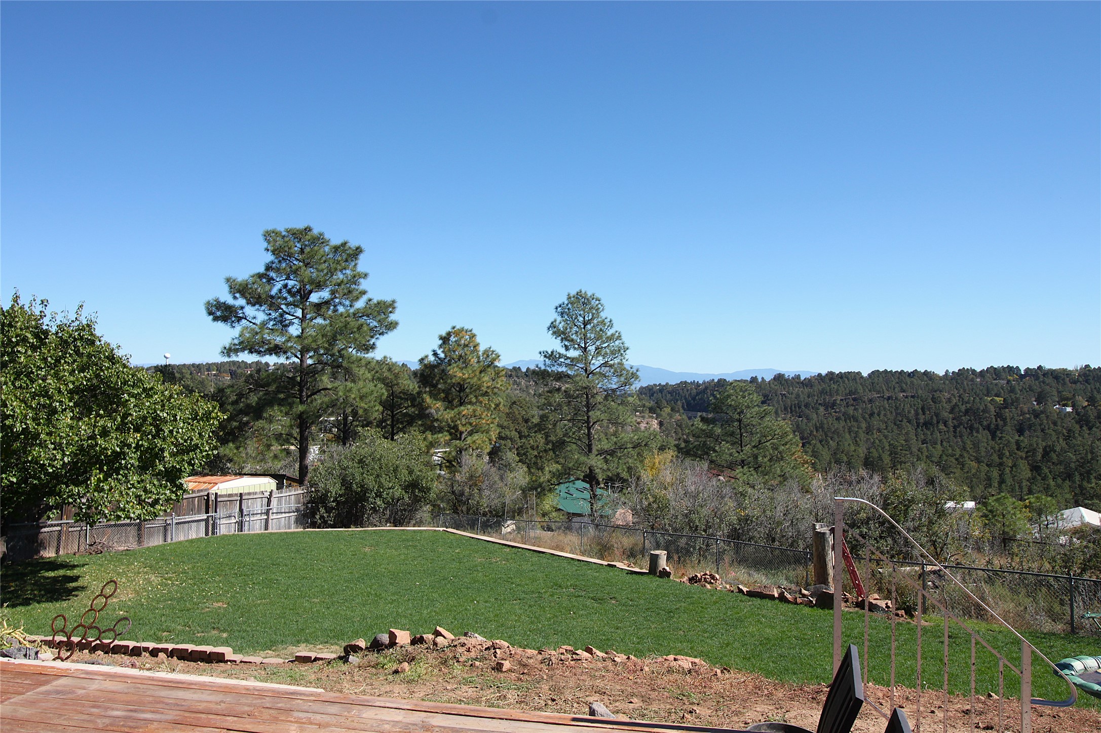 Charming Single-Story with Views and Spacious Backyard! This delightful 3-bedroom, 1-bath home combines comfort, functionality, and scenic beauty. Located near the end of a quiet street, it offers peaceful surroundings and sweeping views of Los Alamos, the mountains, and the mesas. Inside, the open floor plan seamlessly connects the living and dining areas, creating a bright, welcoming space perfect for everyday living or entertaining. The updated kitchen features rich wood cabinetry, walnut butcherblock countertops, modern appliances, and abundant storage--including a pantry and an extra freezer conveniently located just off the kitchen near the laundry. The track lighting in the kitchen provides ambient lighting while undercounter lights brighten work areas and pendent lights provide additional style. Large windows fill the home with natural light and frame stunning views of the surrounding landscape, while beautiful hardwood floors add warmth and character throughout the home. Outside, the expansive lot offers endless opportunities for outdoor living, gardening, and play. The spacious backyard and wooden deck provide the perfect spots to relax, dine al fresco, or take in the breathtaking New Mexico sunrises. A sprinkler and drip system with rain delay keeps the landscaping easy to maintain, and a 30-amp circuit offers power for an RV. With easy access to hiking trails, schools, LANL, and LAMC, this home offers the ideal blend of Los Alamos tranquility and everyday practicality. Schedule your showing today!