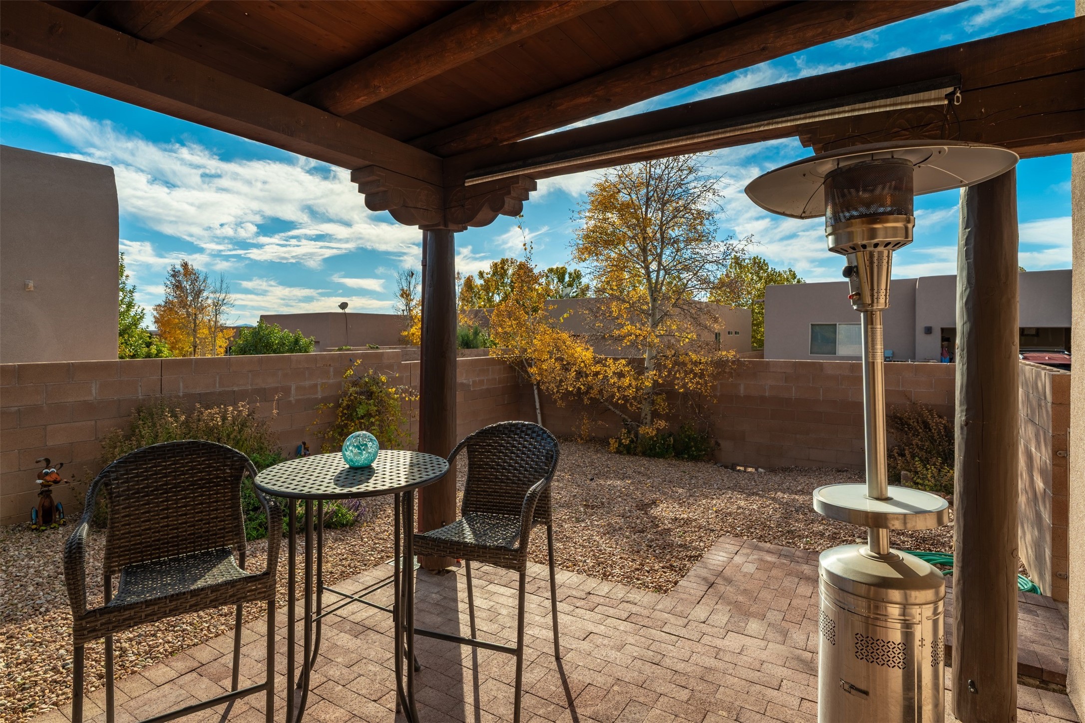 Delightful 2br 2ba one level home in Rancho Viejo just steps from hiking and stunning views of the Sangres. This darling 1024 square foot casita has a new roof, new carpet in bedrooms and new paint. Brick patio with covered portal for outdoor year-round living and Xeriscaped yard. 2 car direct-entry garage. If you're looking for low-maintenance and high-comfort, this move-in ready space has your name on it!