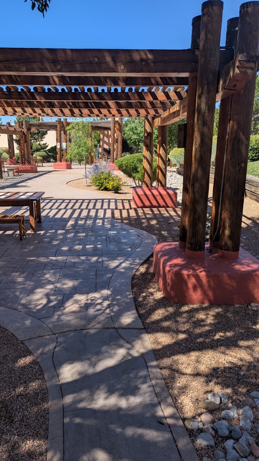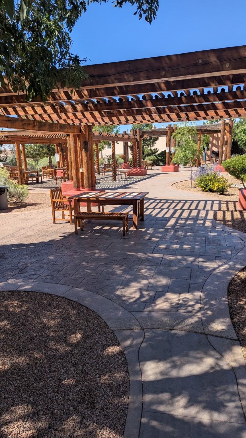 DOS SANTOS Gated Community with single vehicle access through entrance. Southern sky views from Living/Kitchen and Balcony. And for 'Dog Lovers', there is a dog-path on the west side of the complex. And for people that enjoy entertaining outdoors in warmer weather, there are BBQ grills throughout, along with seasonal swimming pool and hot tub. The amenities are inclusive of a clubhouse, and fitness center. And through current monthly HOA fees of $321, these amenities along with exterior building/Roof & community areas & road maintenance provide you with no responsibility for yard-care or exterior updates, except through monthly payments of the Association Fee. There is close proximity to the Railrunner at the Zia Road/St. Francis location. I25 is relatively close south of Dos Santos. And the Railyard can be accessed by the Railrunner, or by vehicle.