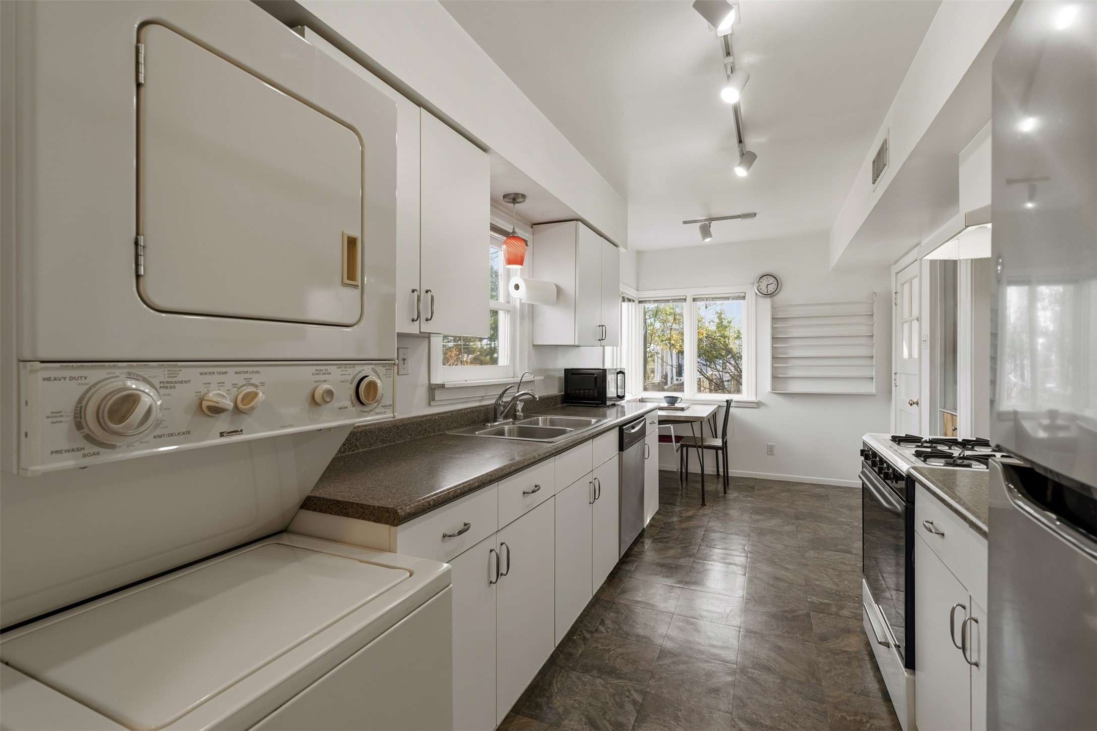 Charming North Community Condo with Expansive Yard & GreenhouseSet on a spacious corner lot in the quiet North Community neighborhood, this two-story condo offers privacy, character, and exceptional outdoor space--just 5 minutes from Los Alamos National Lab (LANL).Upstairs, you'll find three generously sized bedrooms with hardwood floors and large windows that fill the space with natural light. Two bedrooms are connected by a convenient walk-through closet, and the full bath features a clean, classic design with a pedestal sink and tub/shower combo.The main level offers a bright galley kitchen with white cabinetry, chrome hardware, and all appliances--including washer and dryer. The adjacent dining area opens to an enclosed back porch with a storage closet, while the large living room features original hardwood floors, track lighting, and access to a unique greenhouse with built-in workbench.Outdoors, the home offers a mix of privacy and open space with established landscaping, a treehouse platform, a covered patio, and a fully fenced backyard--perfect for gardening, entertaining, or simply relaxing.Located steps from Urban Park and close to hiking trails, excellent schools, and the amenities of downtown Los Alamos. Schedule your showing today!