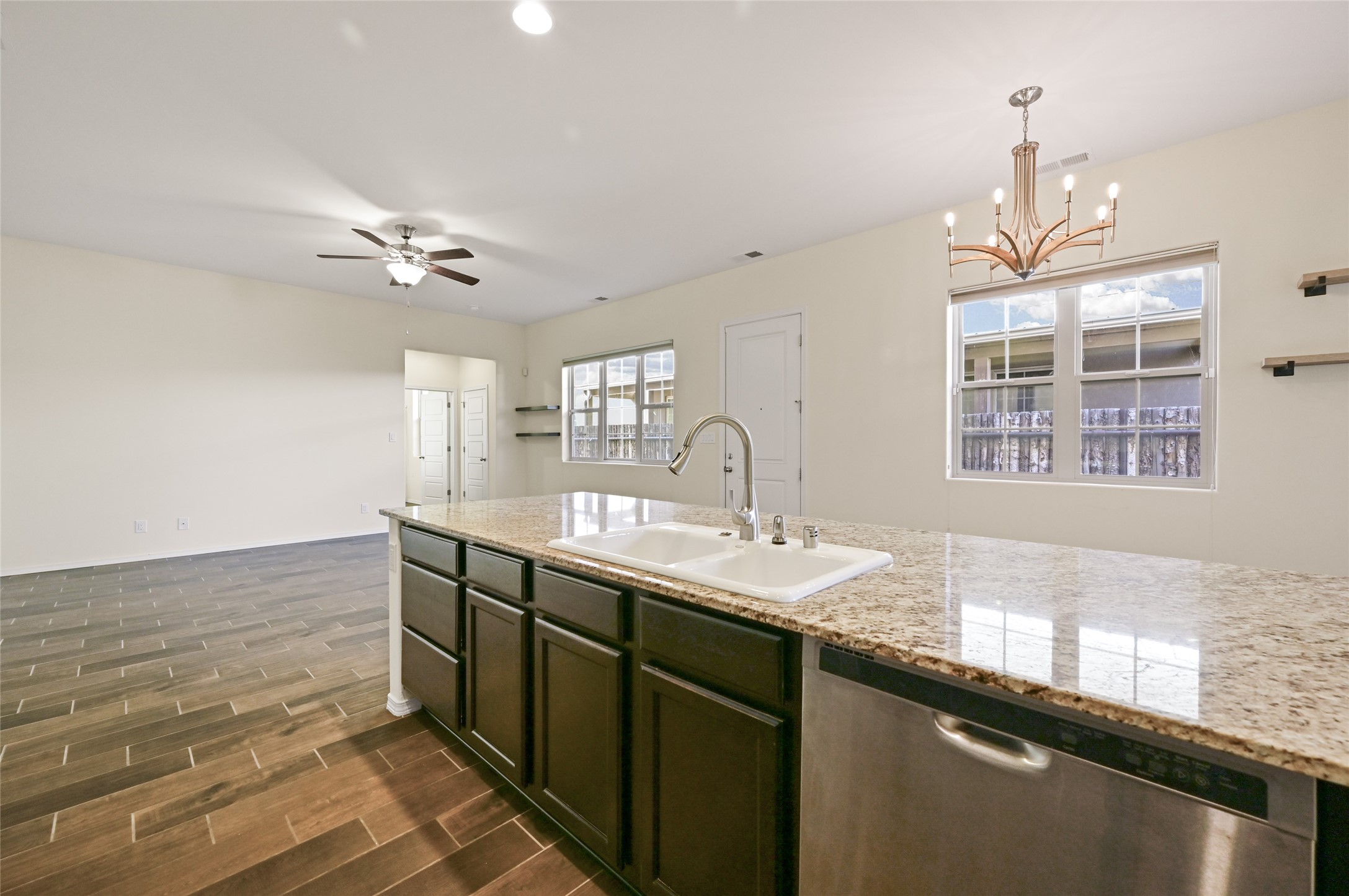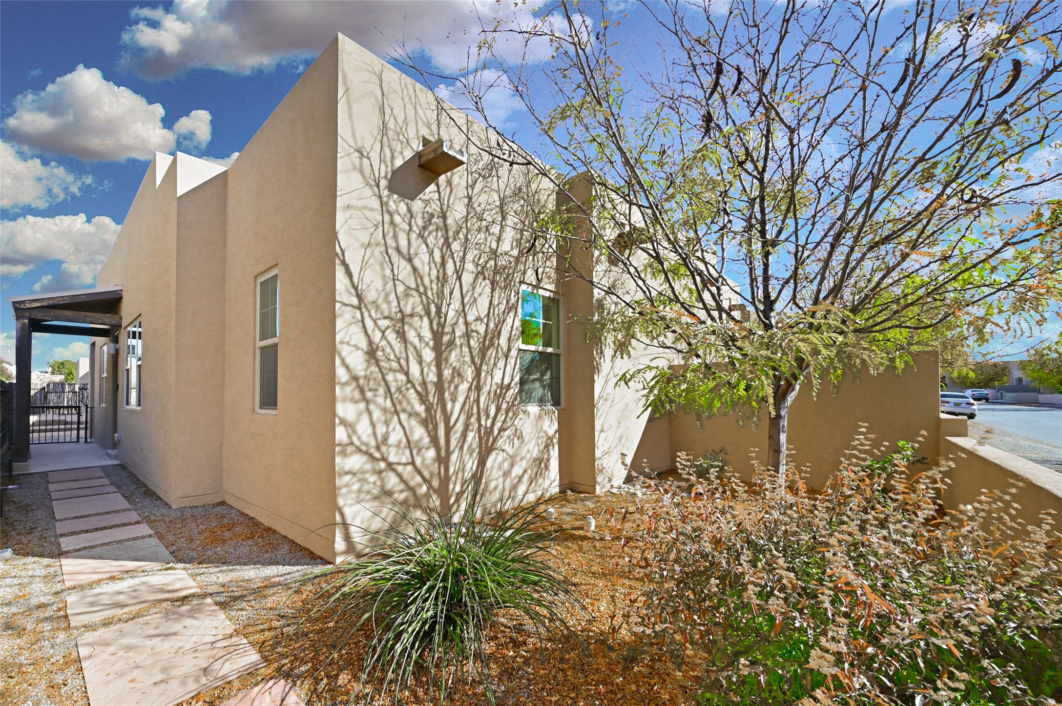 This beautifully maintained pristine home has it all: high ceilings, single-level, solar panels, energy & water effecient design, fenced yard, and high end touches all in the sought-after neighborhood of Oshara Village. This thoughtfully designed attached property has a split floor plan that offers privacy and versatility. Each wing features a bedroom and bath separated by the light-filled living room with soaring ceilings and gorgeous kitchen next to the large dining area. The primary bedroom opens directly to the charming patio through sliding glass doors, creating an inviting indoor-outdoor connection. Ideal for guests, a home office, or housemates the flexible second bedroom adds to the home's versatility. Enjoy close proximity to scenic trails, Pantry Dos, and the Santa Fe Community College. Energy-efficient and low-maintenance, the home includes two owned solar panels with a transferable warranty, Whirlpool Energy Star appliances, and a detached one-car garage. Recent updates include matching tile flooring in both bedrooms, newer shower & kitchen sink fixtures, and expanded flagstone patio perfect for outdoor living. Community parking available.