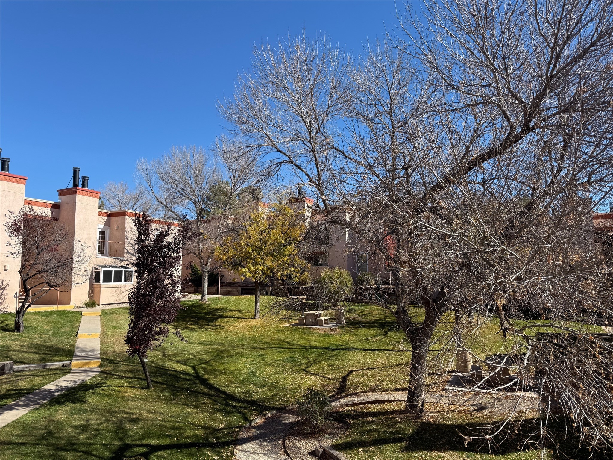 Discover comfort and convenience in this beautifully appointed 2-bedroom, 2-bath condo located on the second floor of the desirable Zia Vista community. The living area features a charming wood-burning fireplace and opens to a private balcony--perfect for relaxing. The primary suite offers a peaceful retreat with an en-suite bath and custom California Closets. The second bedroom also includes its own walk-in closet, providing ample storage. A dedicated utility room with washer and dryer adds everyday convenience. Residents of Zia Vista enjoy a full array of amenities, including a heated swimming pool, clubhouse, tennis court, on-site laundry facilities, and well-maintained outdoor common areas. Thoughtful touches like window shutters and tiled countertops in the kitchen and baths add character and style. Ideally located near shopping and just minutes from downtown Santa Fe, this condo combines lifestyle and location in one exceptional package.