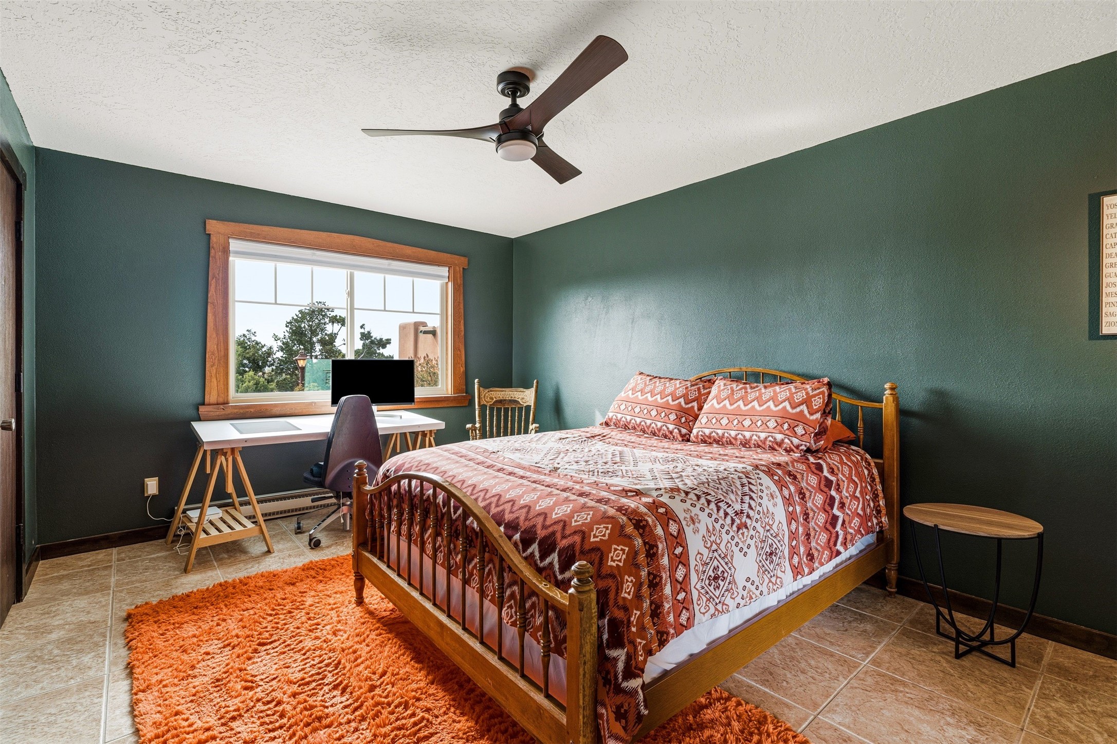 Discover this thoughtfully designed 3-bedroom, 2-bath home on five acres in Sunlit Hills, offering the perfect blend of rural tranquility and everyday convenience. Enjoy views of the Jemez Mountains and nearby foothills, just 10 minutes from town.The home's L-shaped layout centers around a courtyard and two large covered patios, ideal for outdoor dining and relaxation. Inside, you'll find brick and tile floors, maple cabinetry, custom built-ins, and generous closet space throughout.The private primary suite features a fireplace and peaceful views, while a pellet stove in the living room adds warmth and charm. A bonus room offers flexibility for an office, studio, or extra storage.Perfect for homesteading, the property includes a large chicken coop, fully fenced and deer-proof garden area, a spacious storage shed, and ample space for horses. Eco-friendly amenities include a fully owned solar panel array and EV charging station.With its heated two-car garage, self-sufficient design, and proven short-term rental history, this home offers comfort, versatility, and stunning natural beauty--all within easy reach of town.